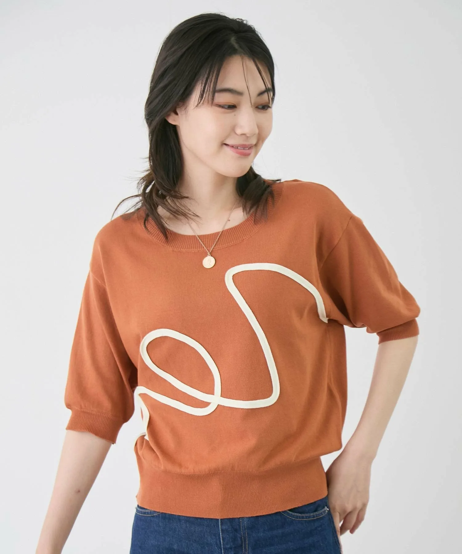 Волнообразный узор, созданный с помощью вязаной ленты из того же материала, добавляет визуальный акцент этому изделию.