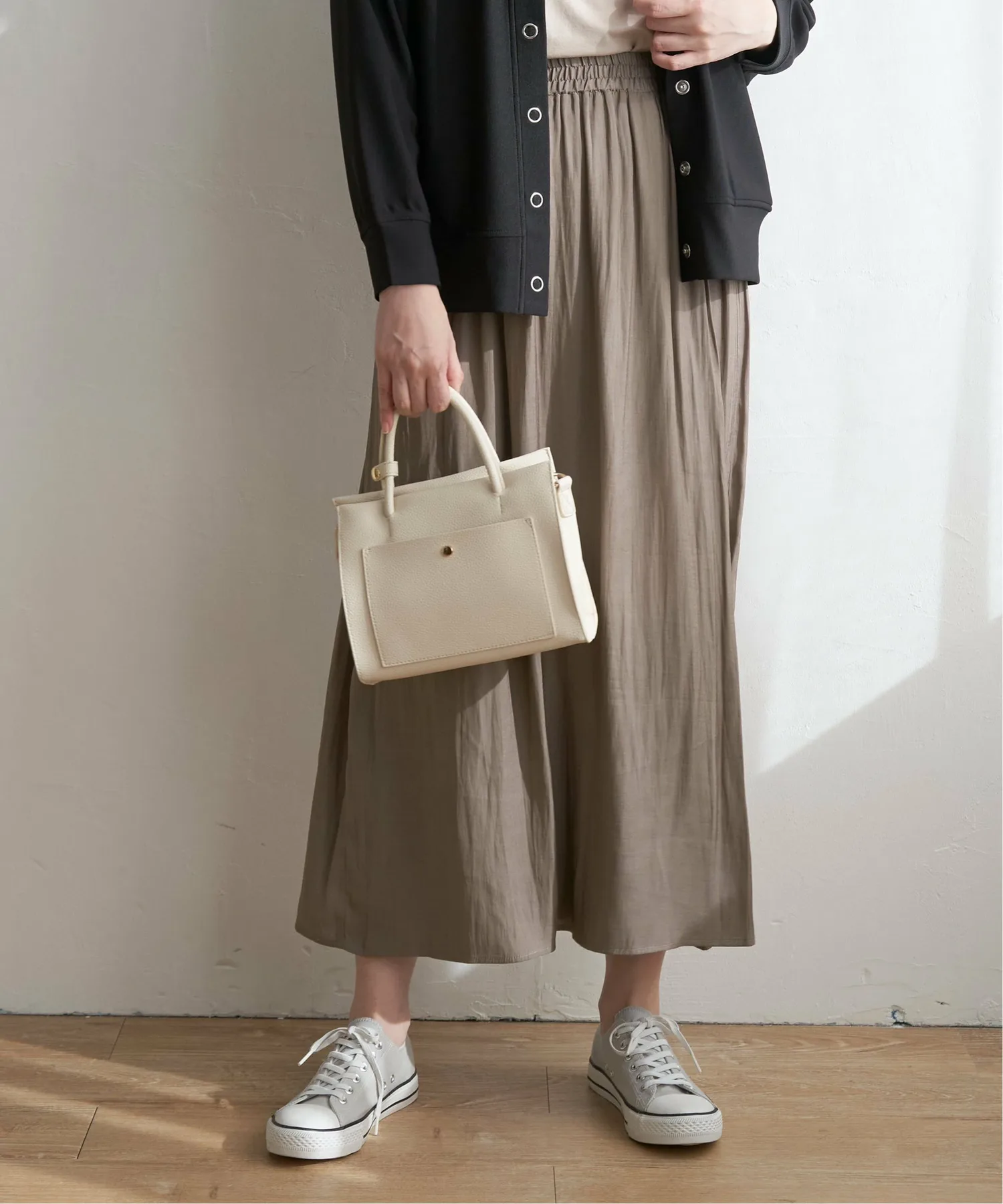 Эти брюки имеют эластичный пояс, благодаря которому их легко надевать, но спереди они выглядят как юбка, поэтому их можно носить и в более повседневном стиле.