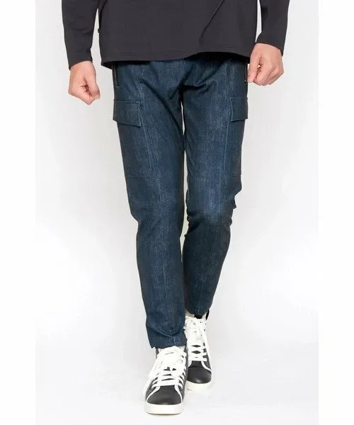 Брюки-карго из высокопрочного трикотажа с принтом, имитирующим деним.