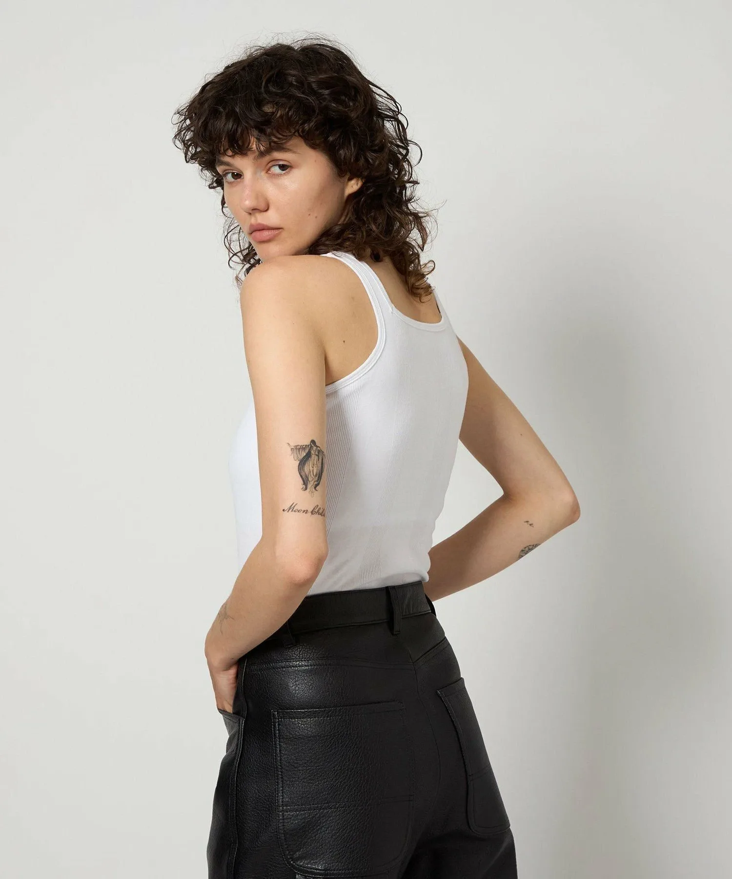 Изготовлена из фирменной ткани «в рубчик» , дизайн с глубокими, зауженными проймами создает спортивный, но элегантный образ, формируя чистый, здоровый и зрелый стиль.