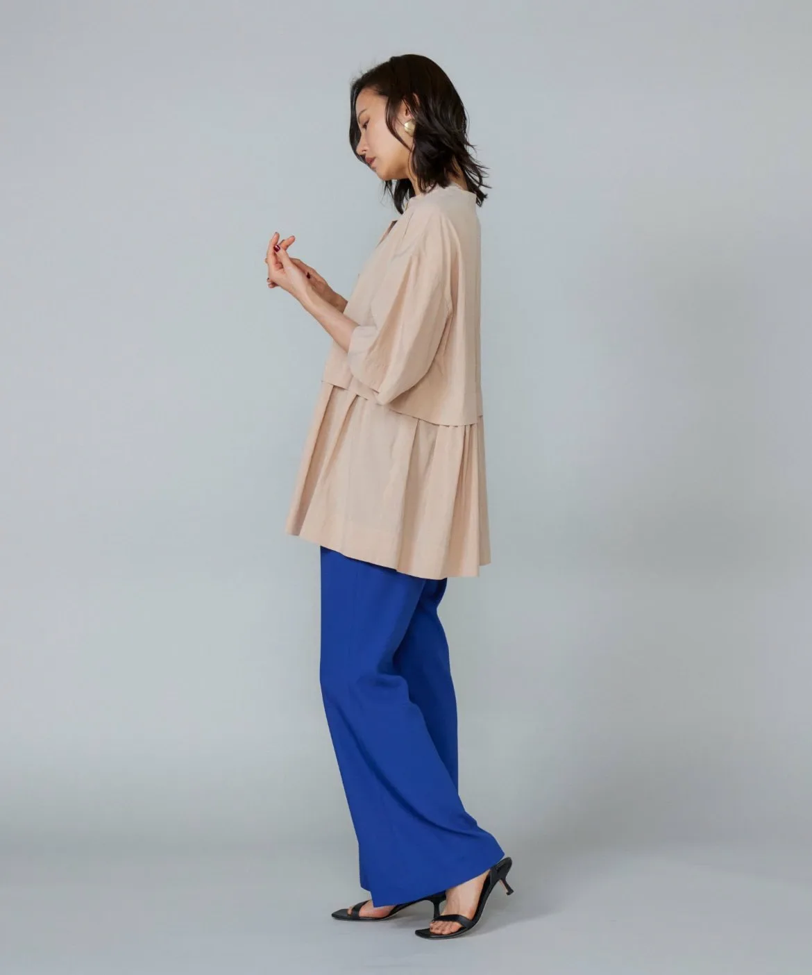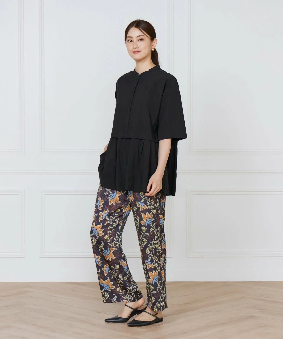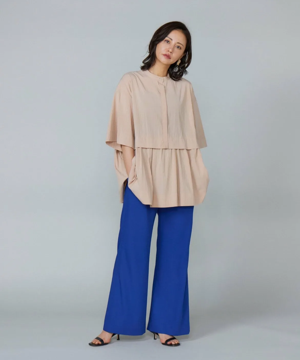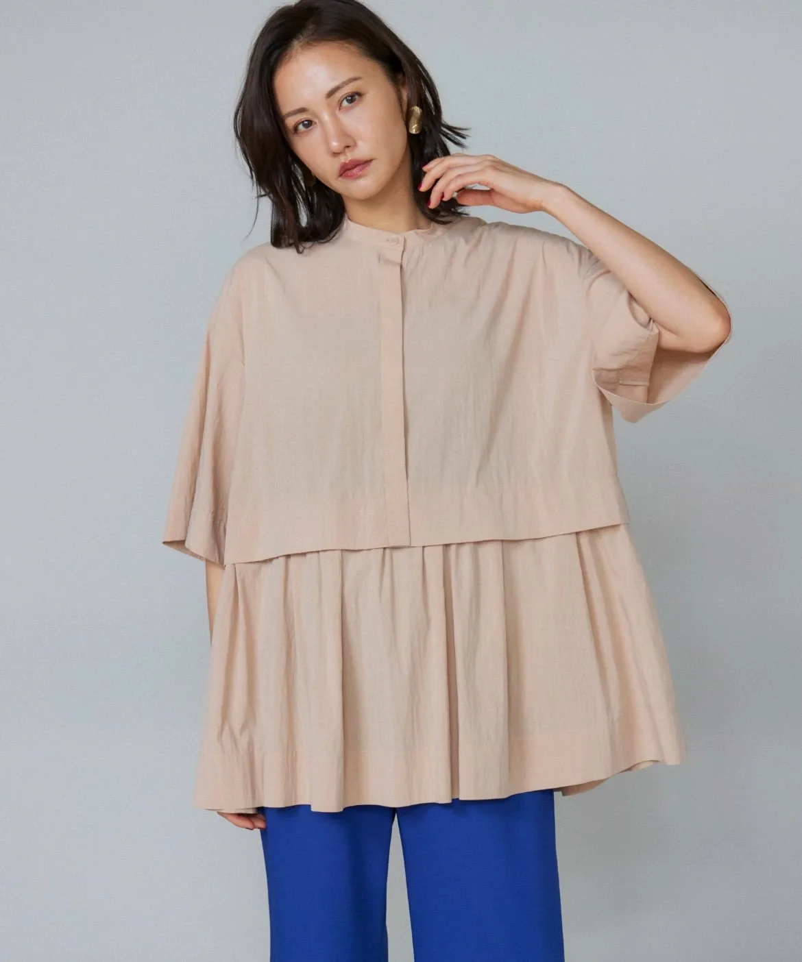 Эта блузка имеет многоярусный дизайн, создающий роскошный вид. Свободные плечи и широкие рукава создают ощущение расслабленности. Изящный воротник-стойка и минималистичный перед с потайной планкой обеспечивают аккуратный завершенный вид. Современный вид и неприхотливая в уходе, немнущаяся конструкция делают ее отличным выбором для легкого и комфортного материала.