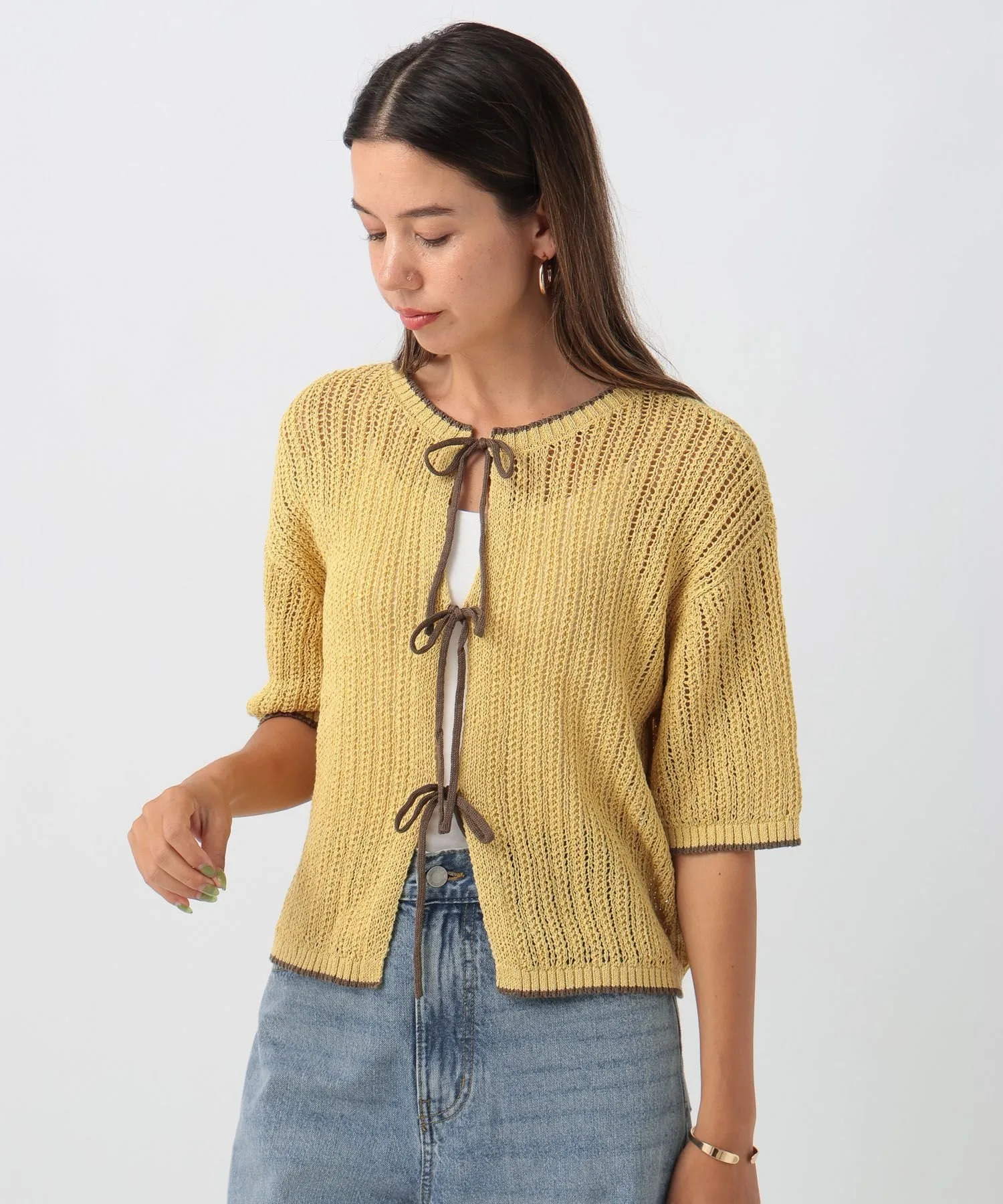 Мы рекомендуем женственный и повседневный образ с джинсами или широкими брюками, украшенными лентами.