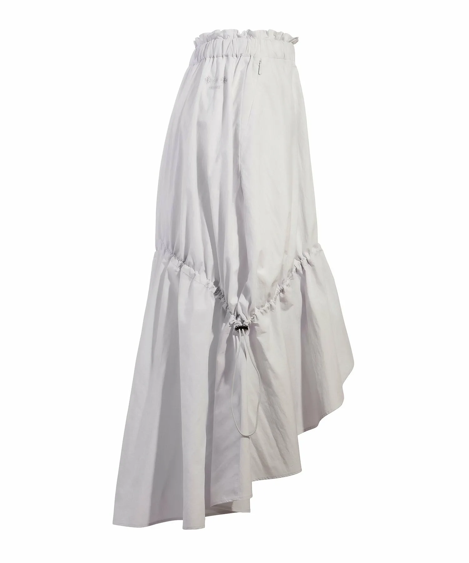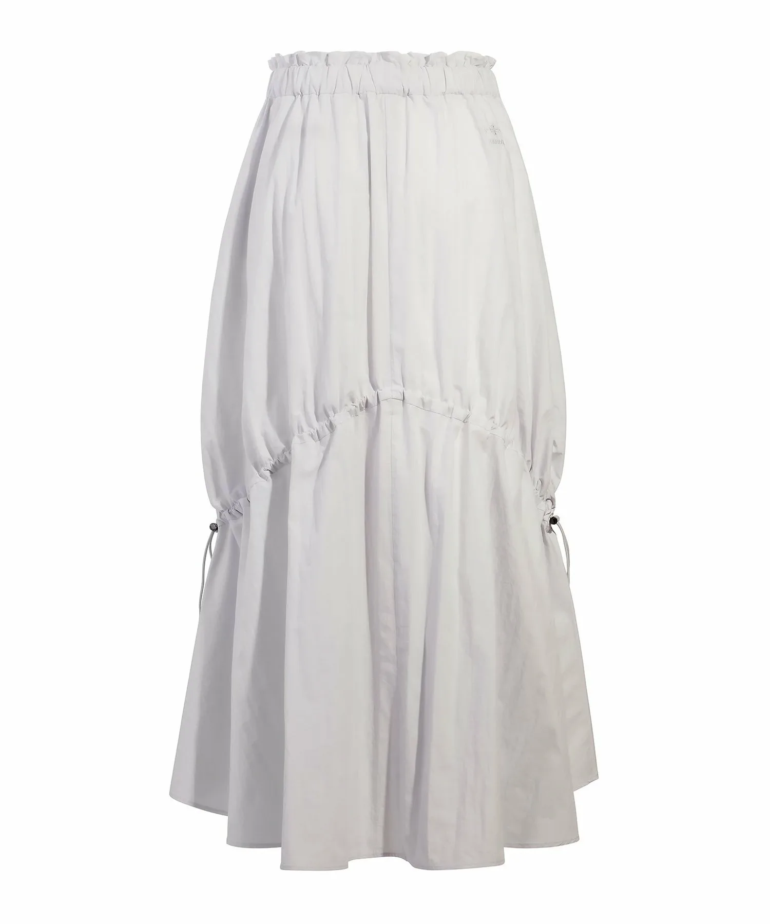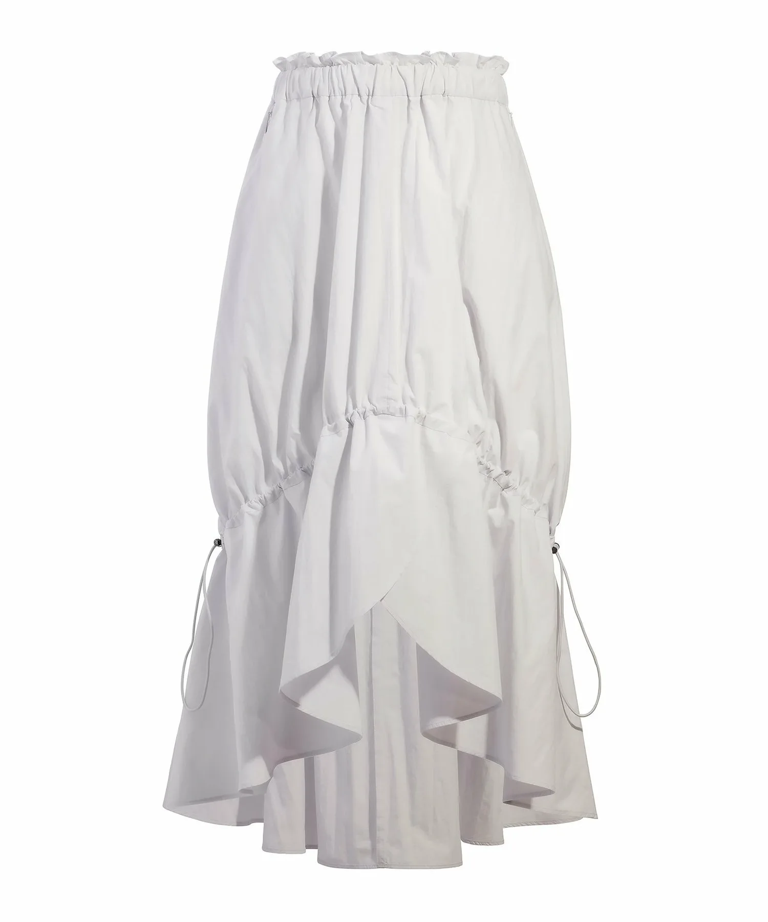Эта длинная юбка имеет регулируемые боковые шнурки для создания женственного, но в то же время непринужденного образа. Приподнятый крой спереди добавляет стилю непринужденности. Она изготовлена из плотной ткани, напоминающей пишущую машинку, сочетающей в себе естественную текстуру хлопка с блеском нейлона. Ручная обработка создает естественный мятый вид. Ограничитель шнурка имеет акцент никелевого цвета. Эта элегантная вещь отличается динамичным дизайном, который одновременно изящен и не слишком приторный.