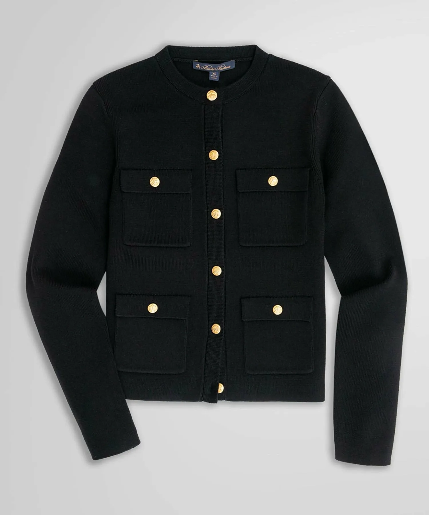 Вязаный жакет с четкой цельновязаной конструкцией ощущается как легкая верхняя одежда и может носиться много лет, что делает его идеальным как для формальной, так и для повседневной носки.