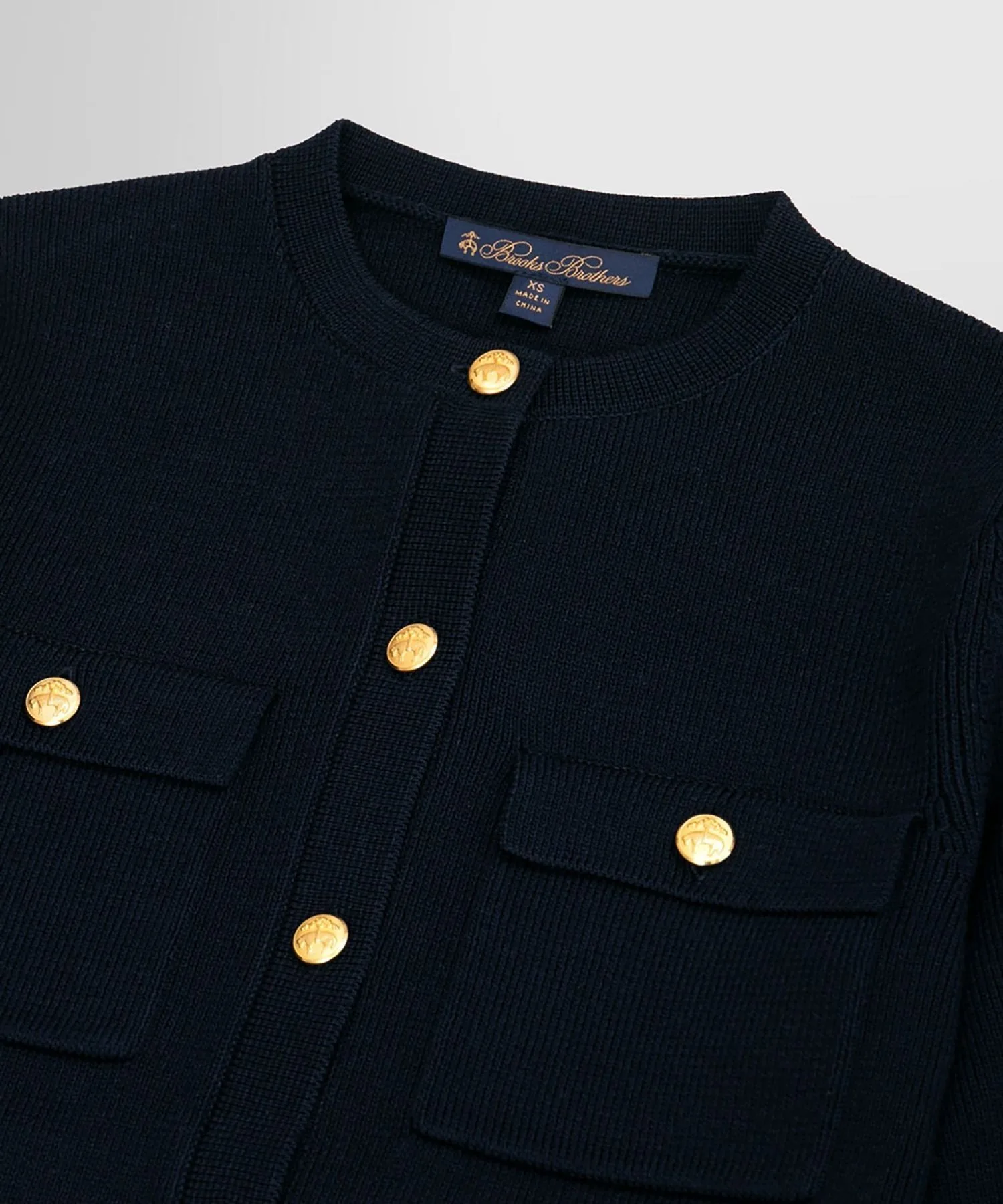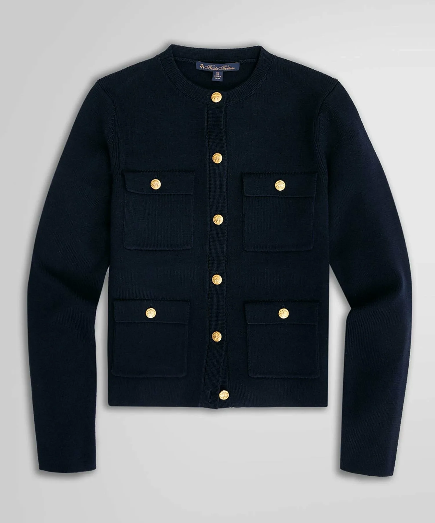 Вязаный жакет с четкой цельновязаной конструкцией ощущается как легкая верхняя одежда и может носиться много лет, что делает его идеальным как для формальной, так и для повседневной носки.