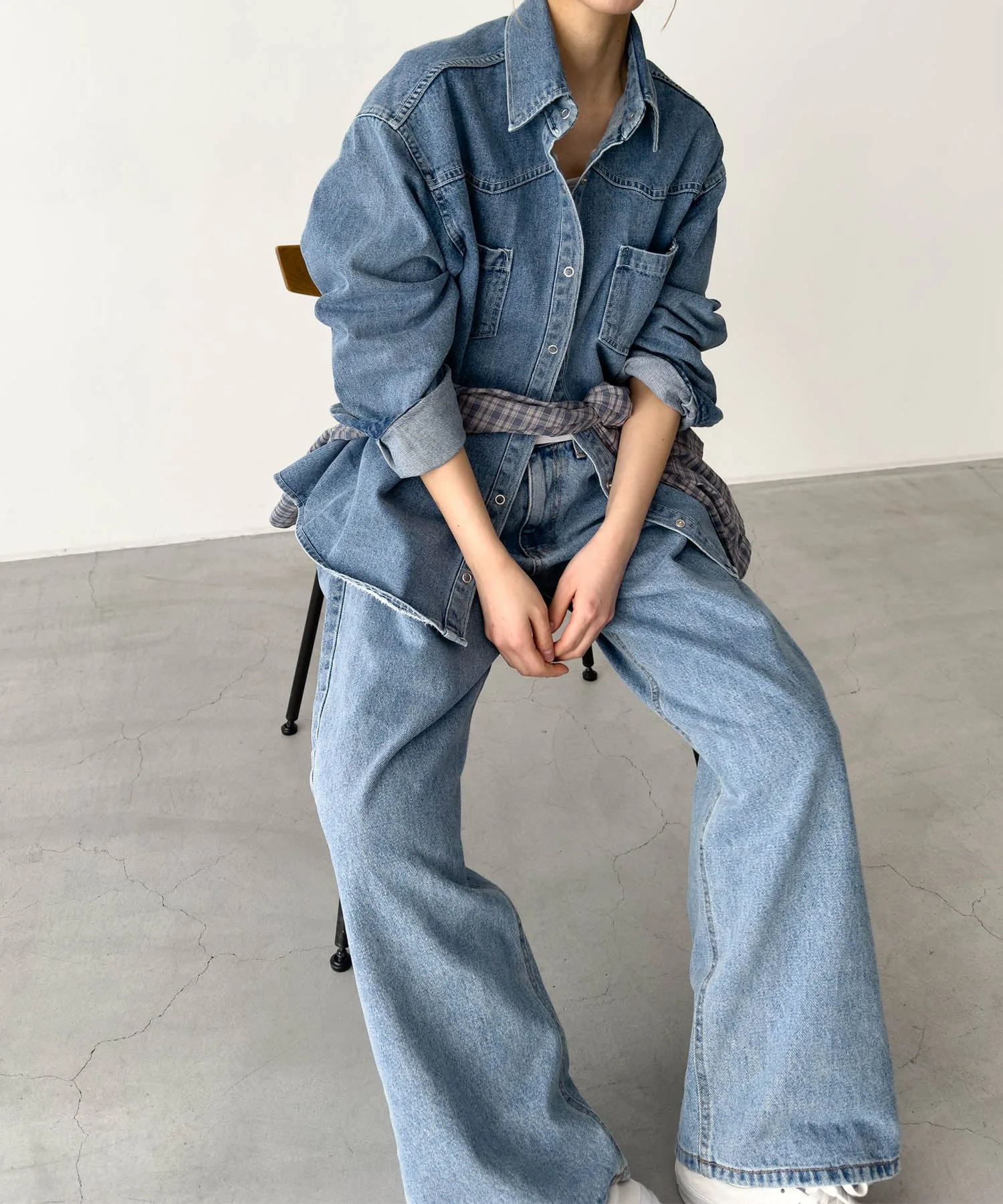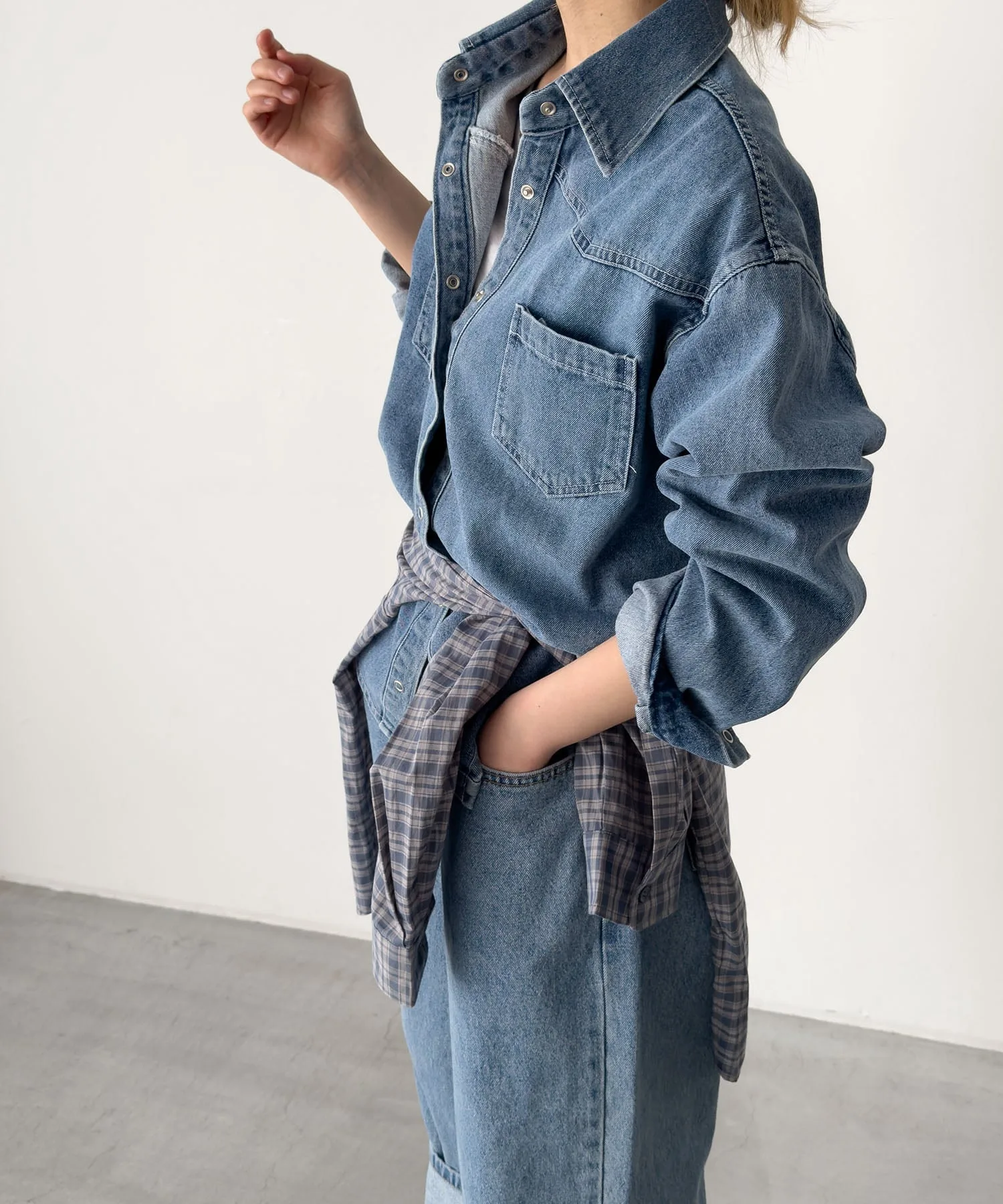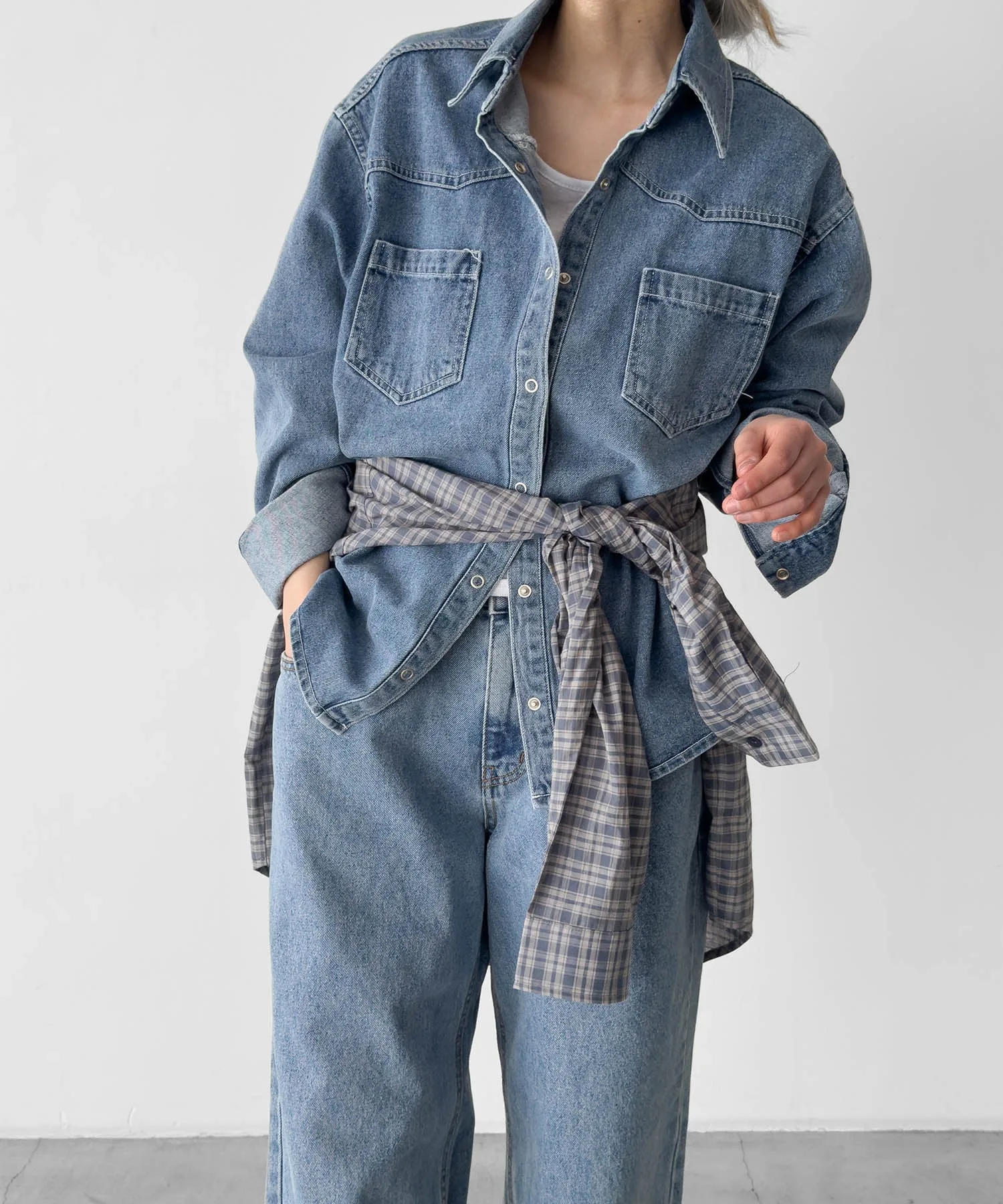 Джинсовая рубашка в стиле вестерн с привлекательной винтажной текстурой.