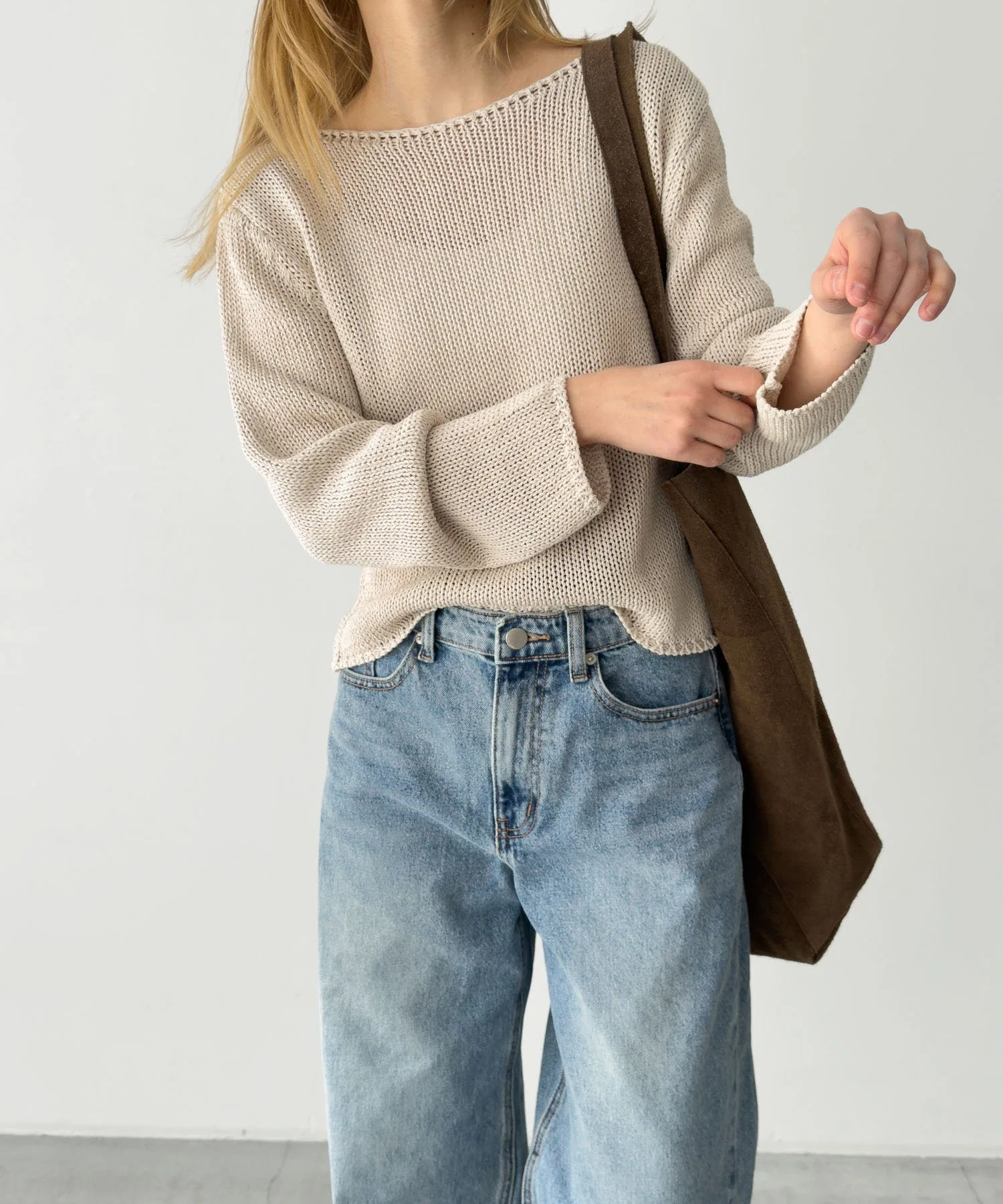 Этот вязаный свитер с вырезом-лодочкой выглядит легким и удобным в ношении в любое время года.