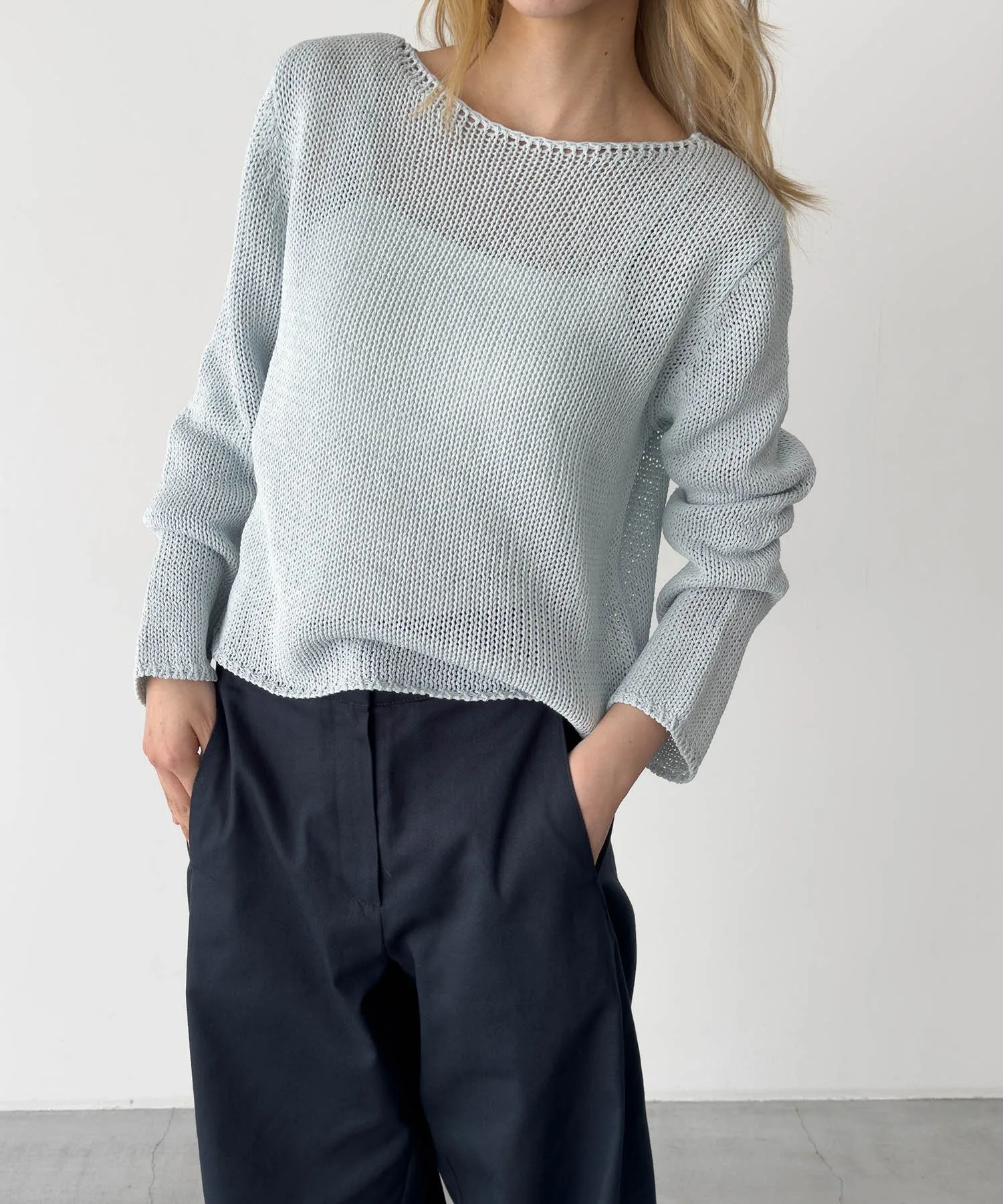 Этот вязаный свитер с вырезом-лодочкой выглядит легким и удобным в ношении в любое время года.