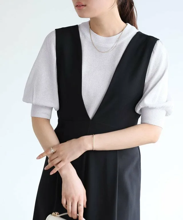 Объёмный дизайн рукавов создаёт простой, но женственный образ. Ещё одна замечательная особенность – он естественно закрывает верхнюю часть рук. Лёгкий трикотажный материал делает его подходящим для использования в качестве нижнего слоя под юбками-свитерами и платьями-майками.