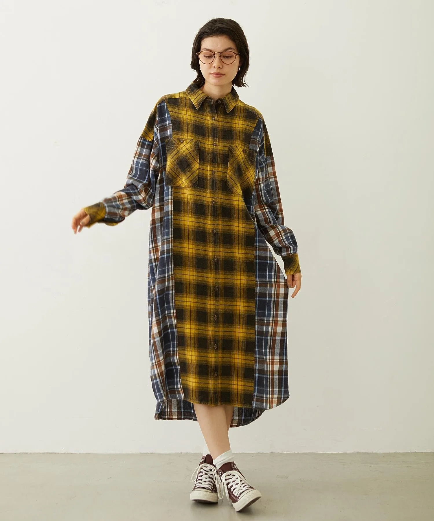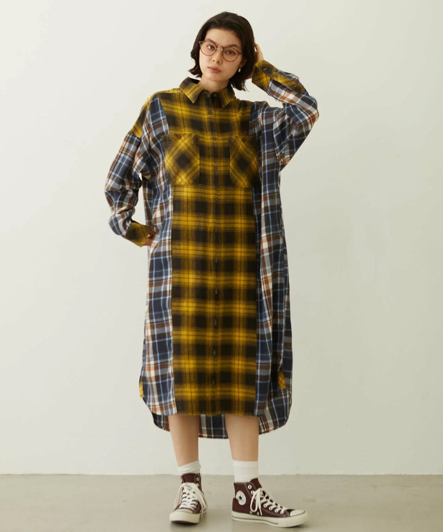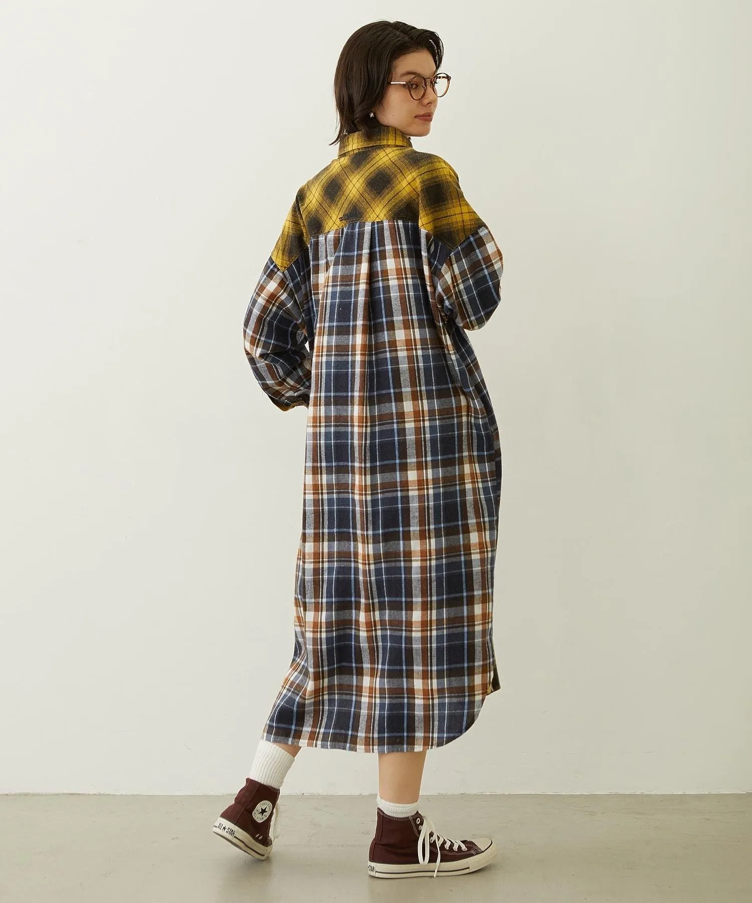 Переосмысленное клетчатое платье-рубашка в стиле «многофункциональная смена стиля»