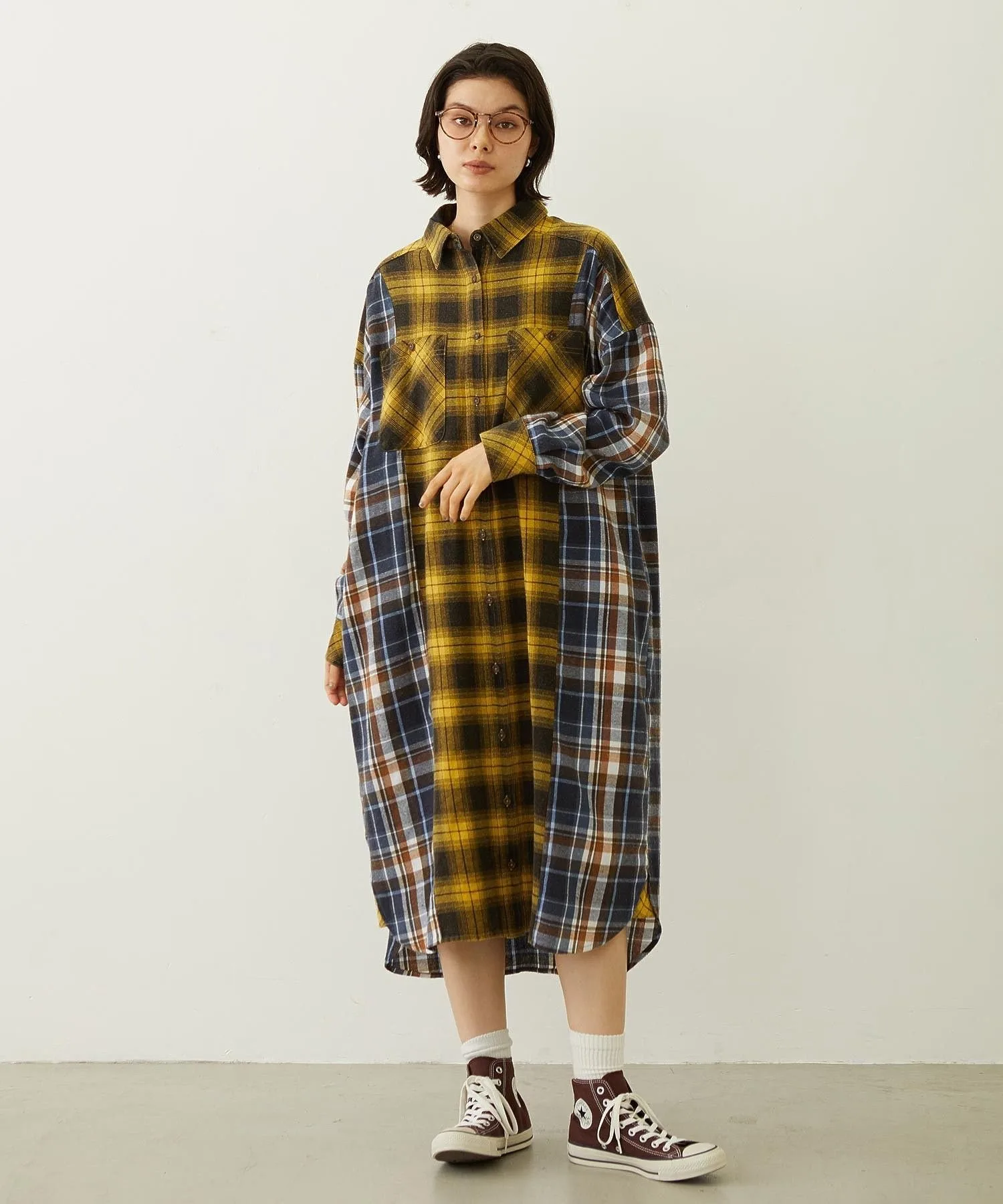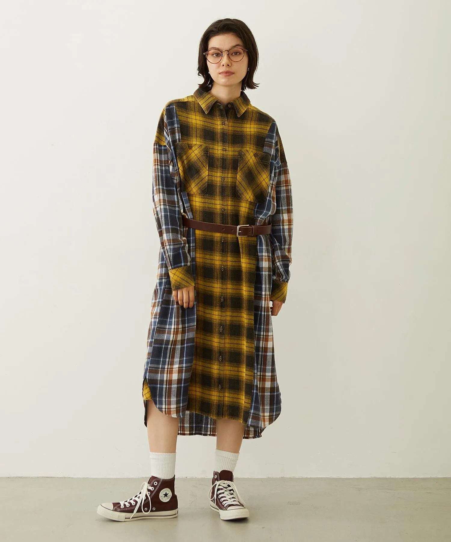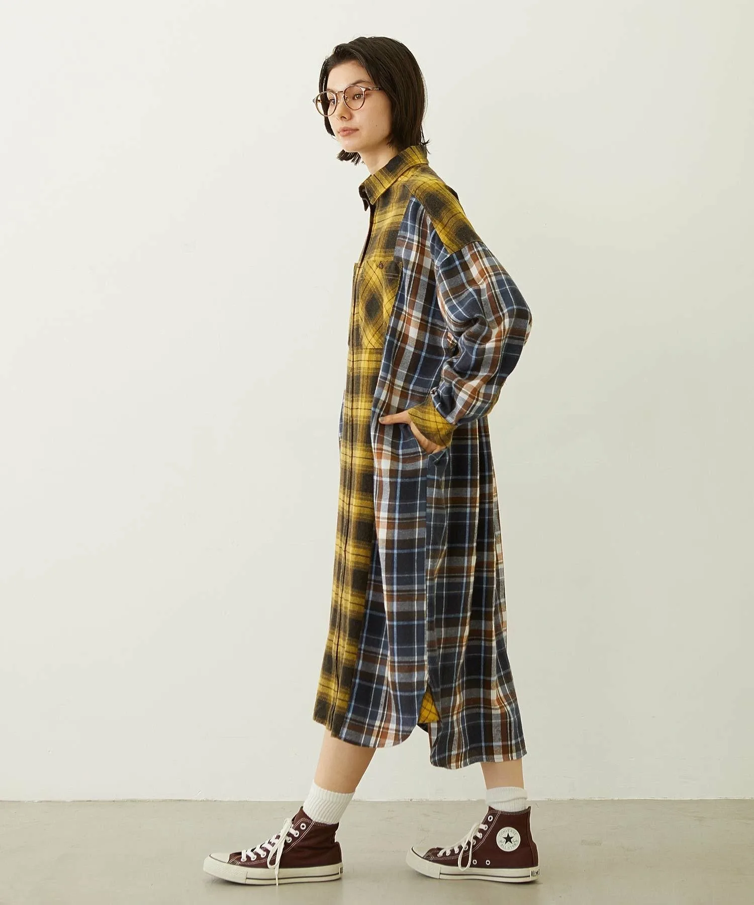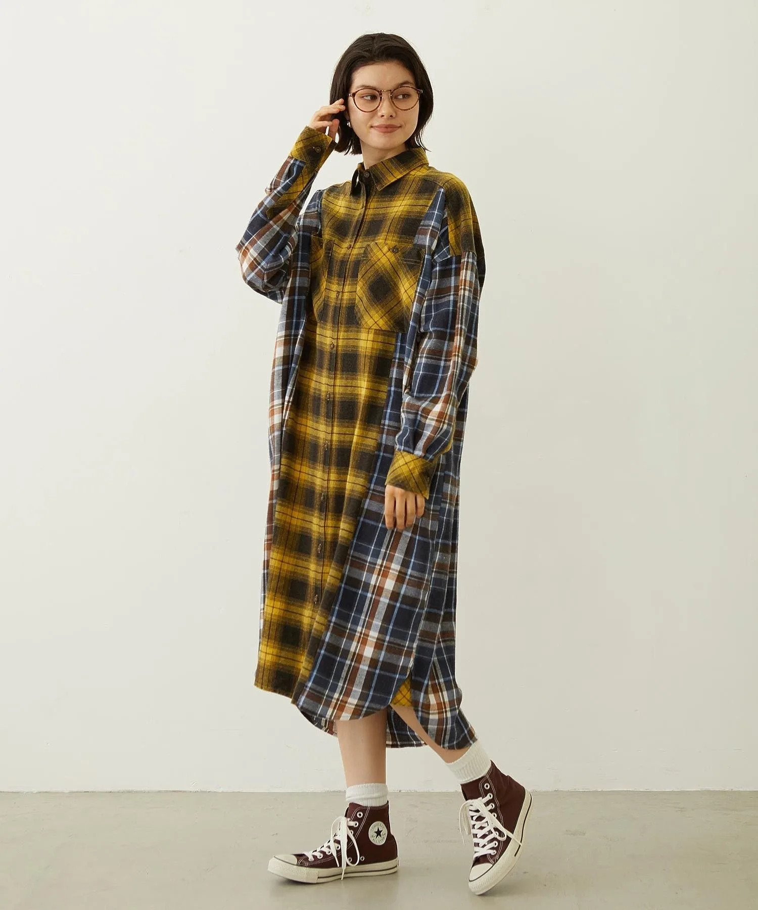 Переосмысленное клетчатое платье-рубашка в стиле «многофункциональная смена стиля»