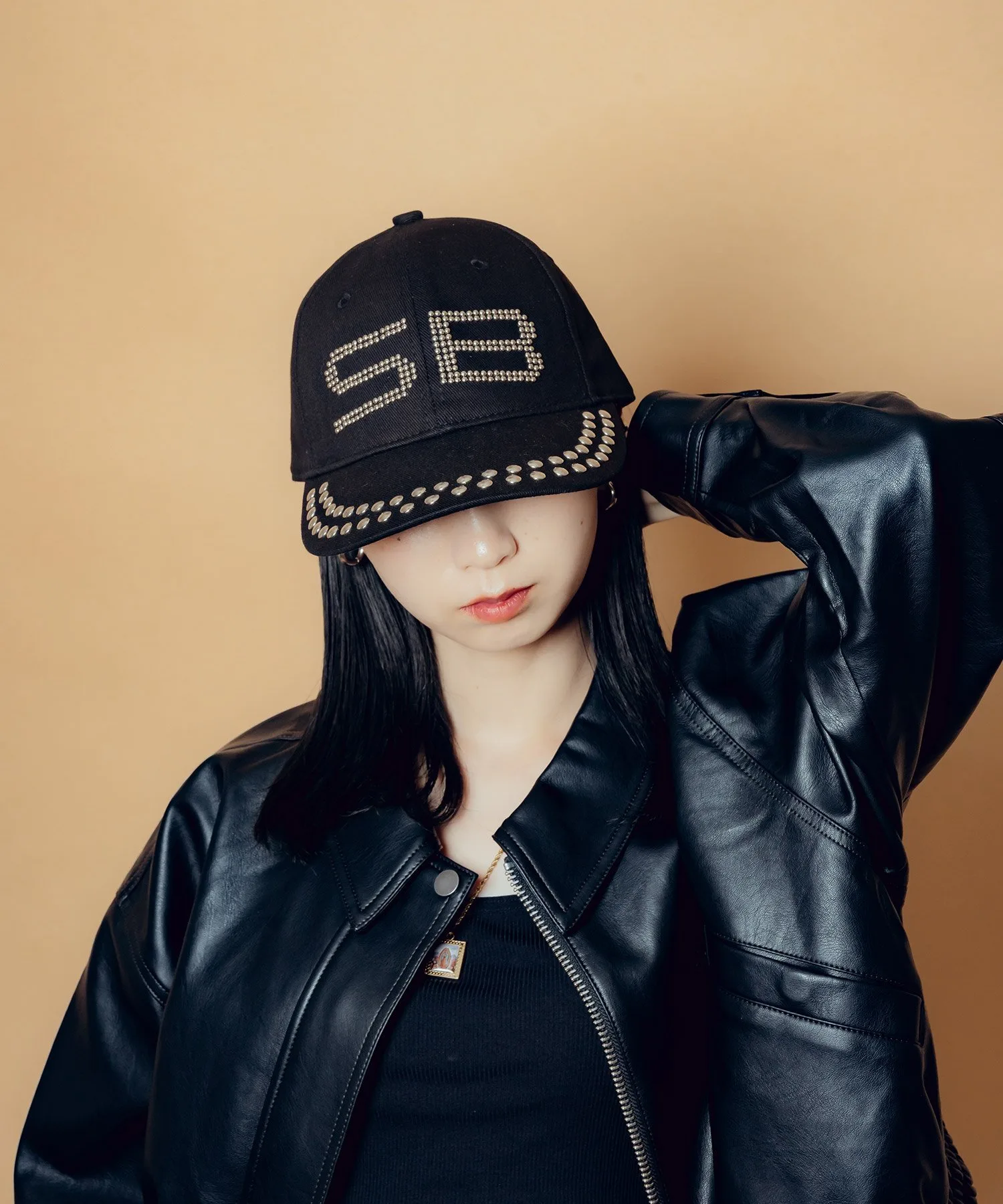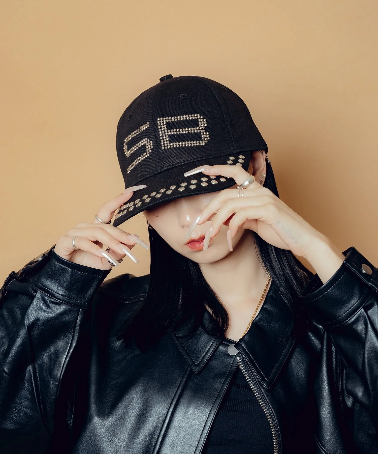 Эффектная кепка с вручную пришитыми заклепками