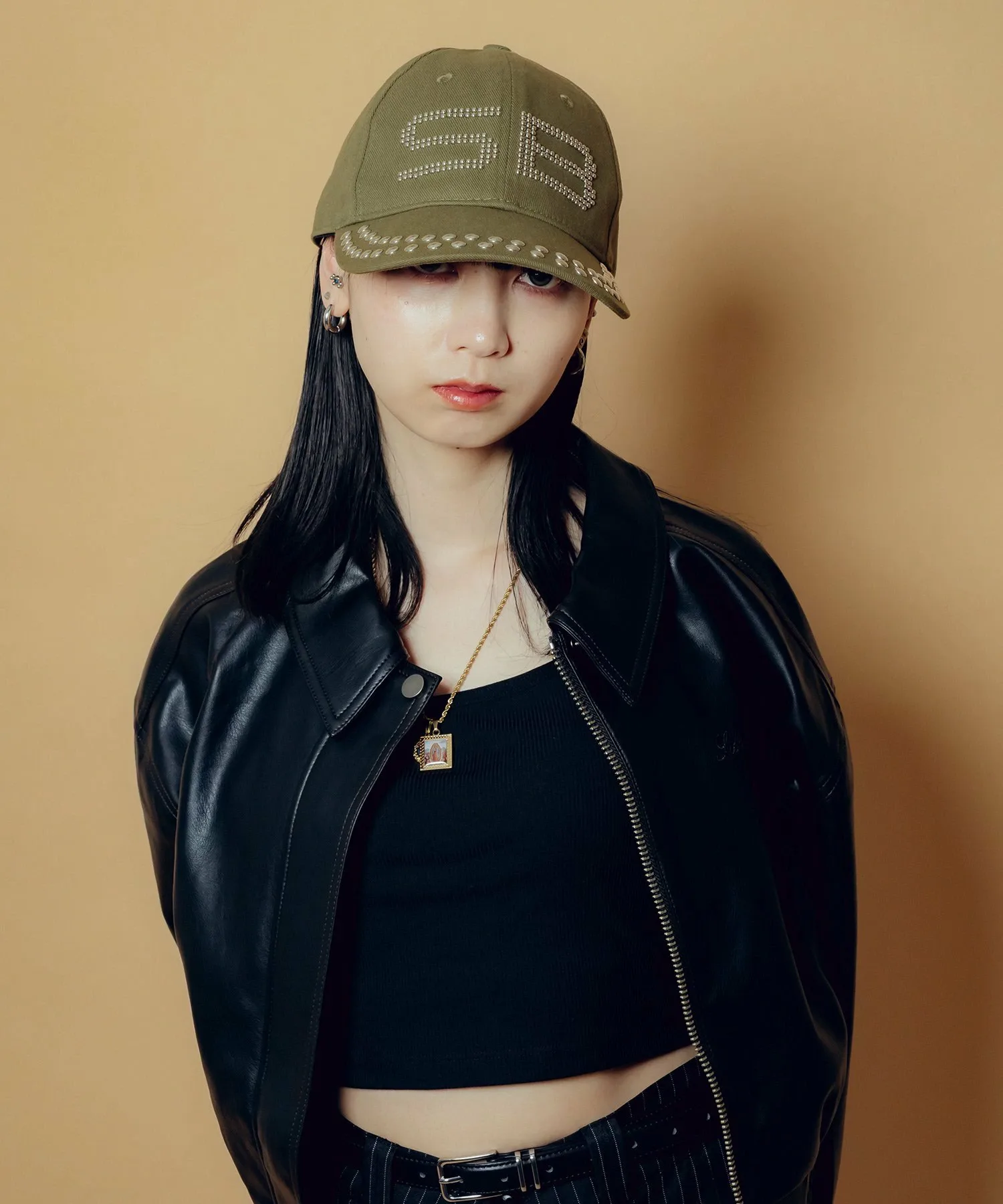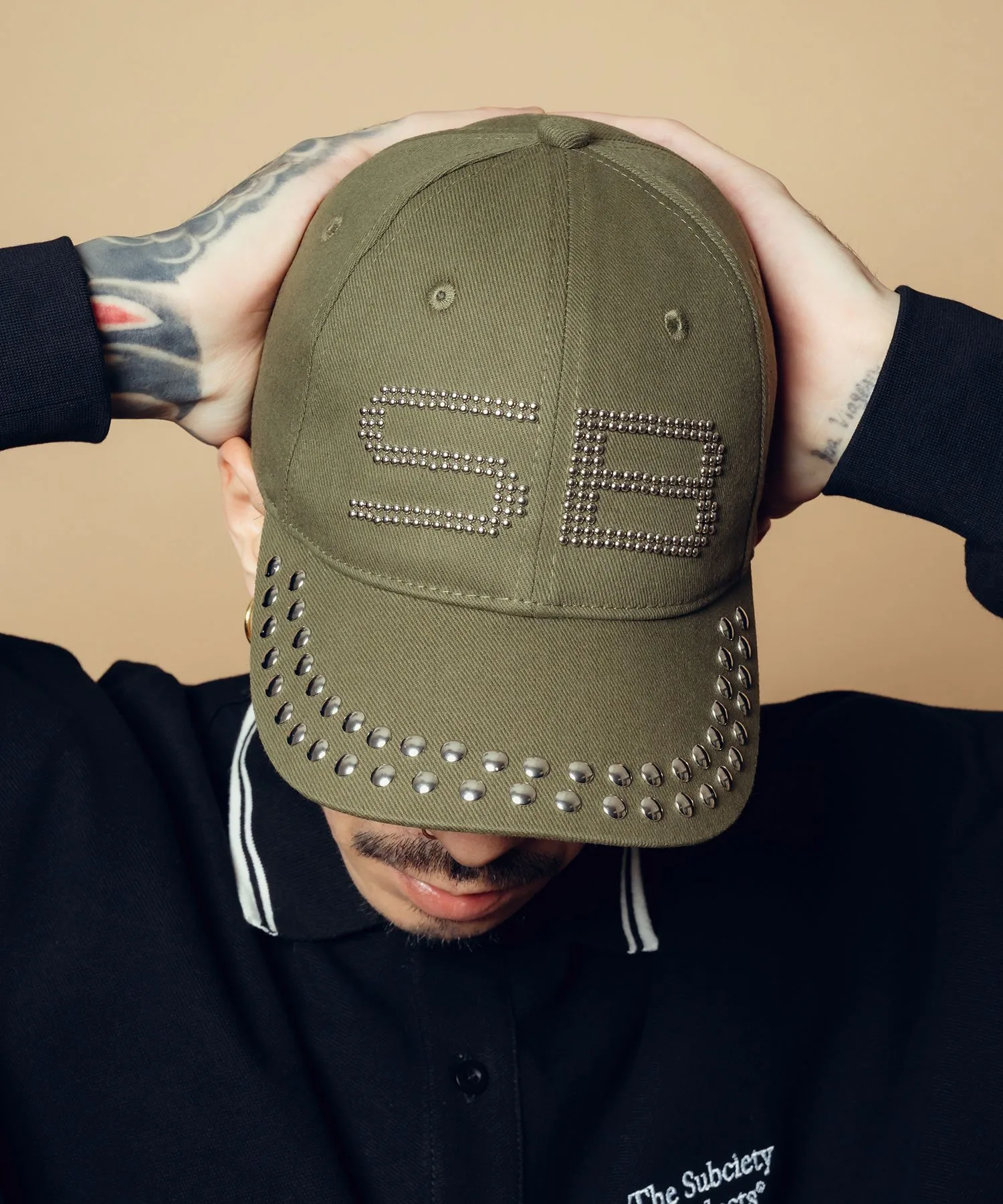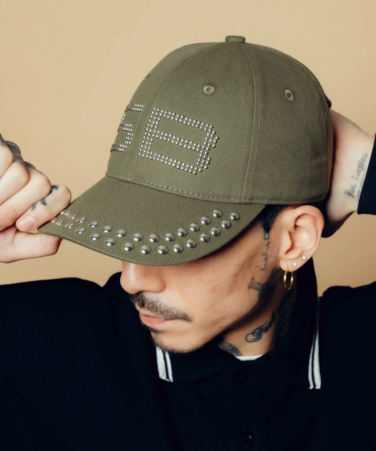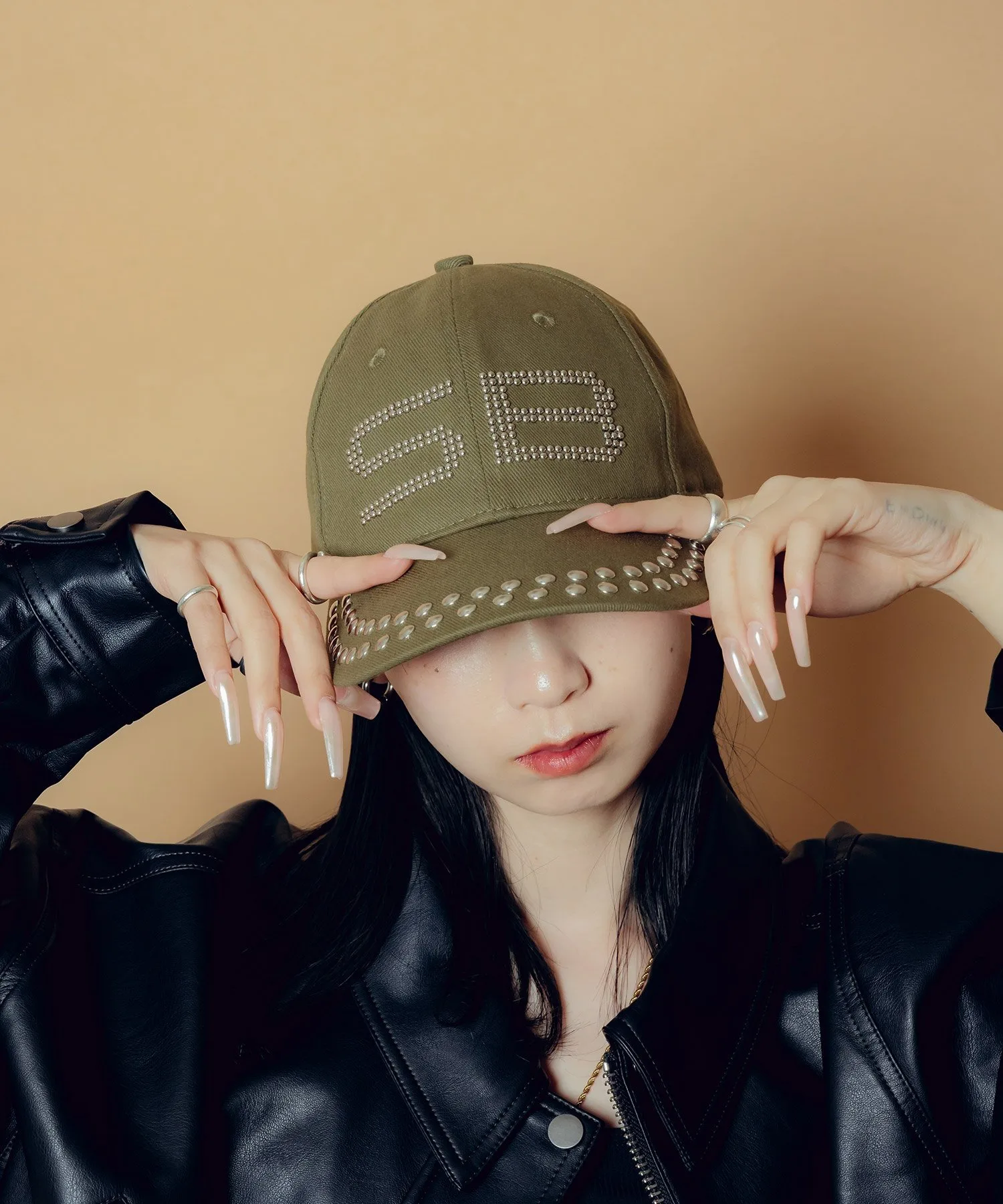 Эффектная кепка с вручную пришитыми заклепками