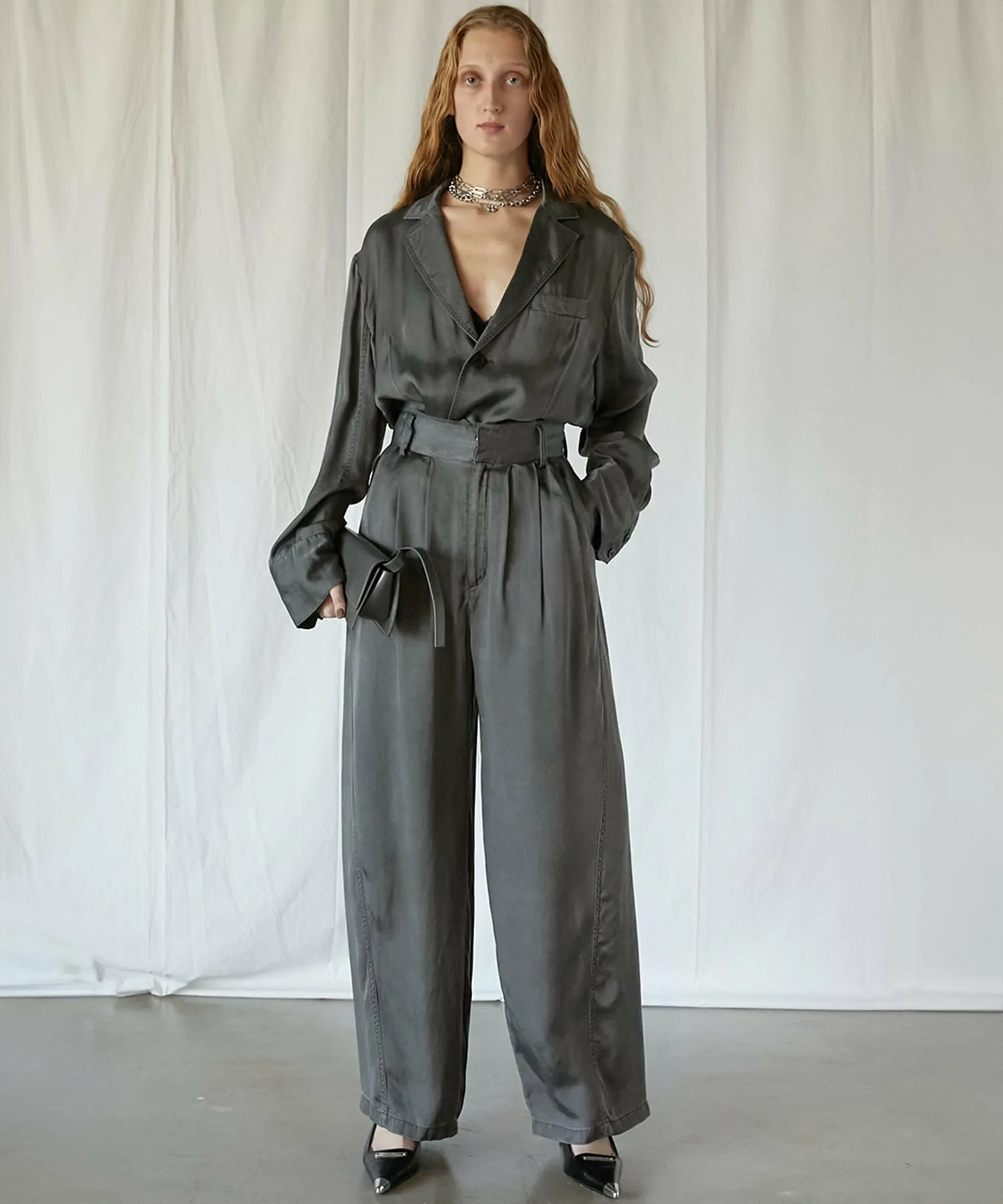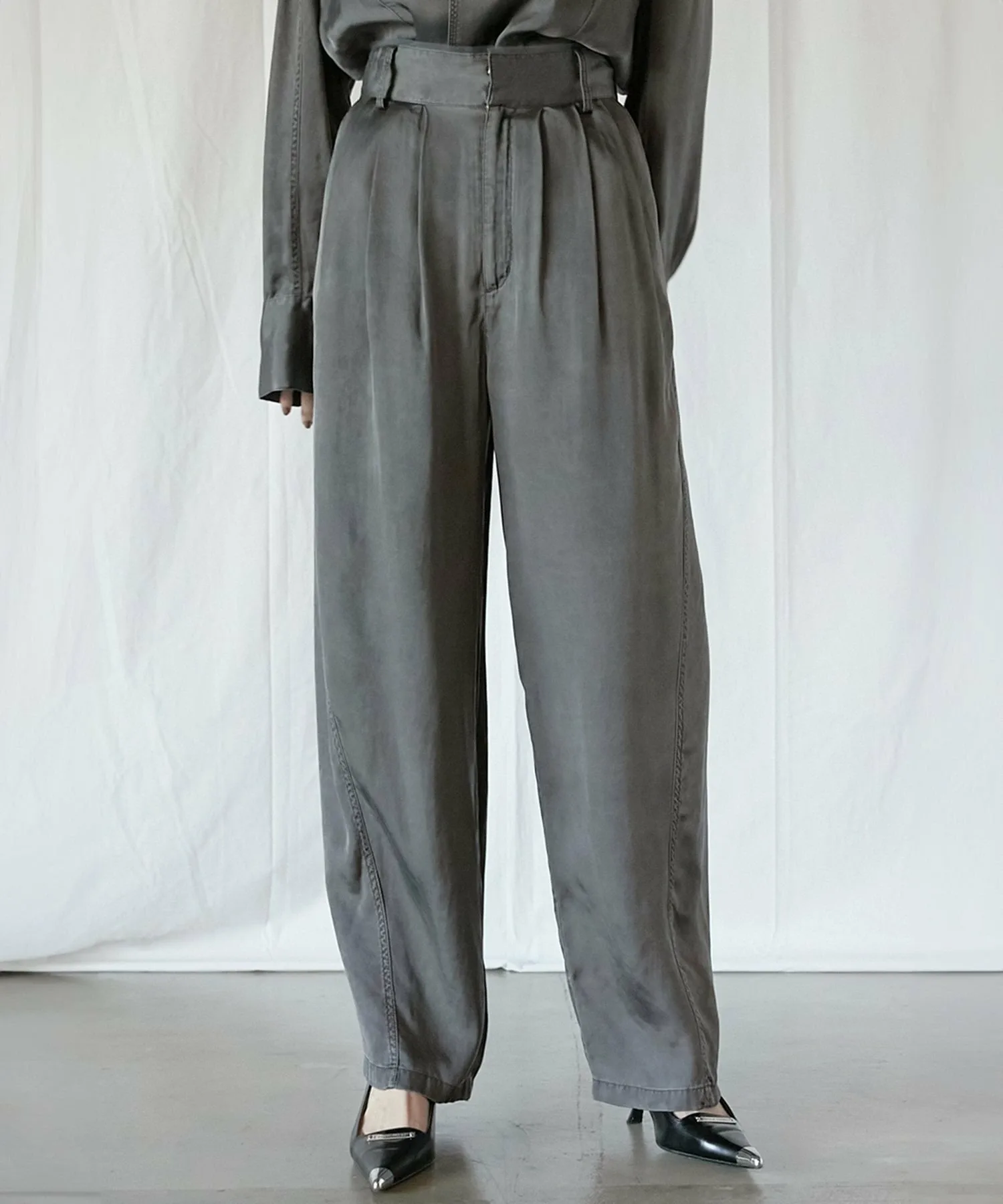 Изготовлено из купры/вискозы. Уникальная эластичность, гладкость и фибриллированная текстура купры делают её чрезвычайно комфортной в ношении. *Обратите внимание* Этот продукт изготовлен из натуральных материалов. Цвет может выцветать из-за влаги, такой как пот и трение. Пожалуйста, будьте осторожны, чтобы не перенести цвет на другую одежду, обувь, сумки и т. д.