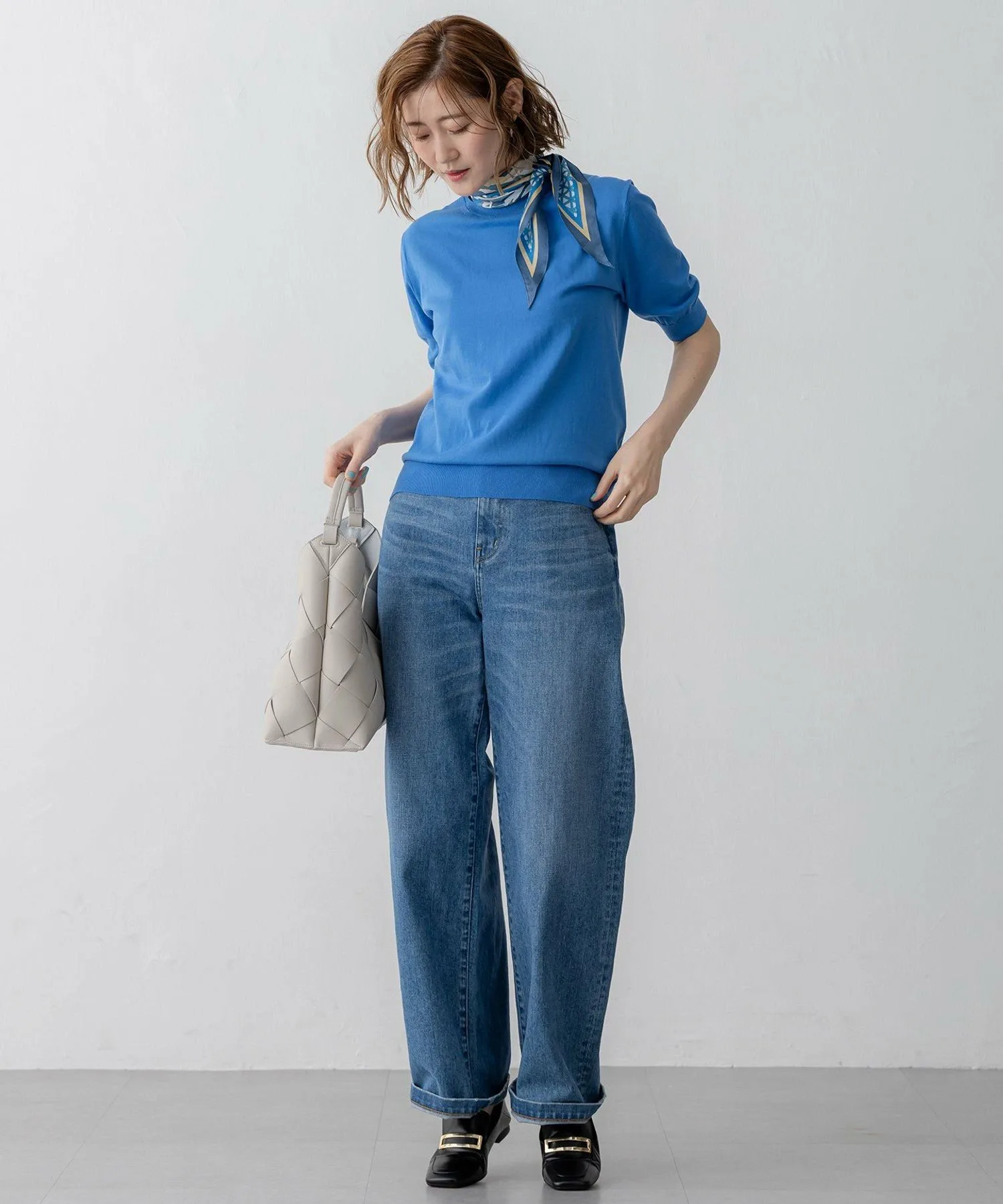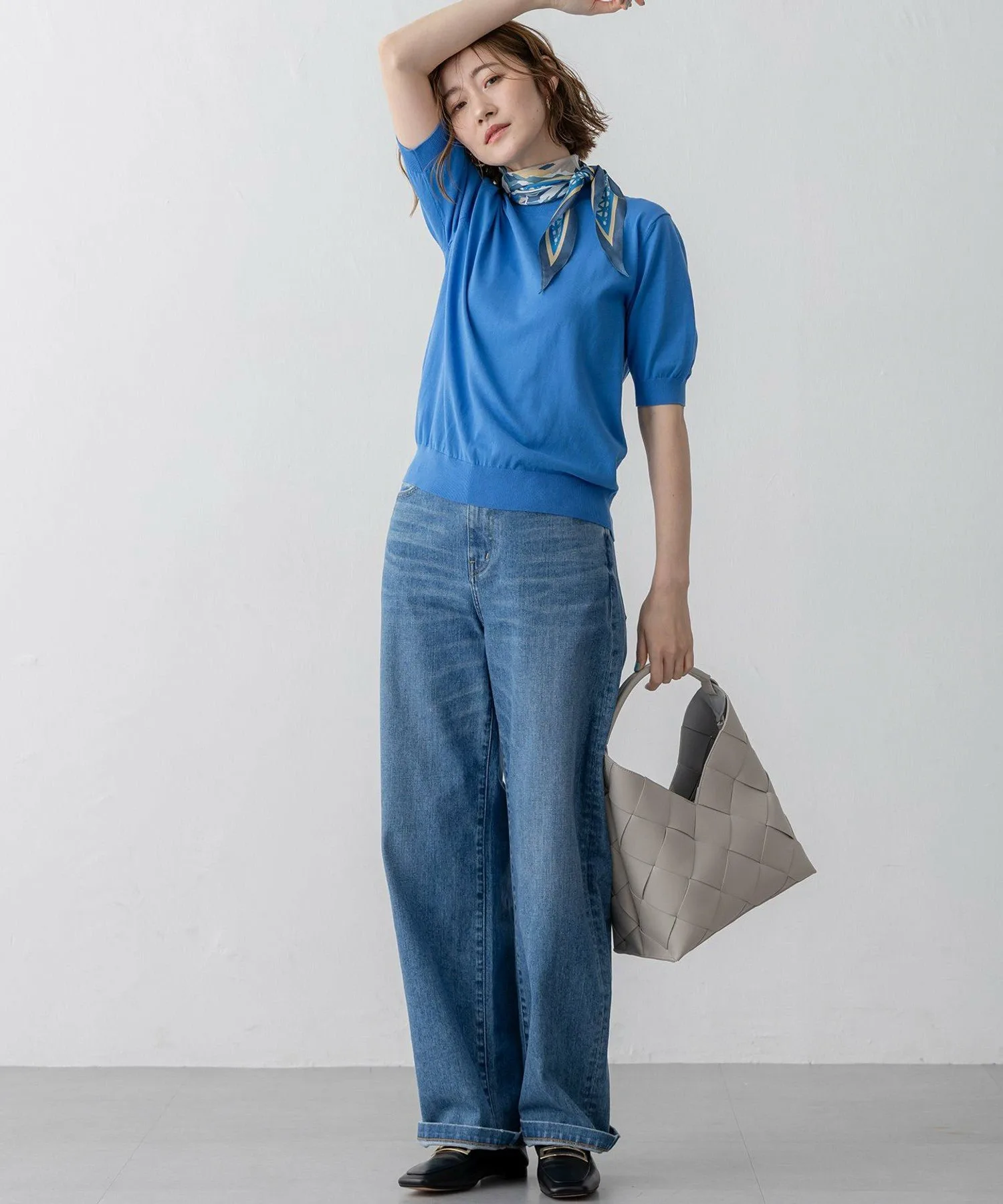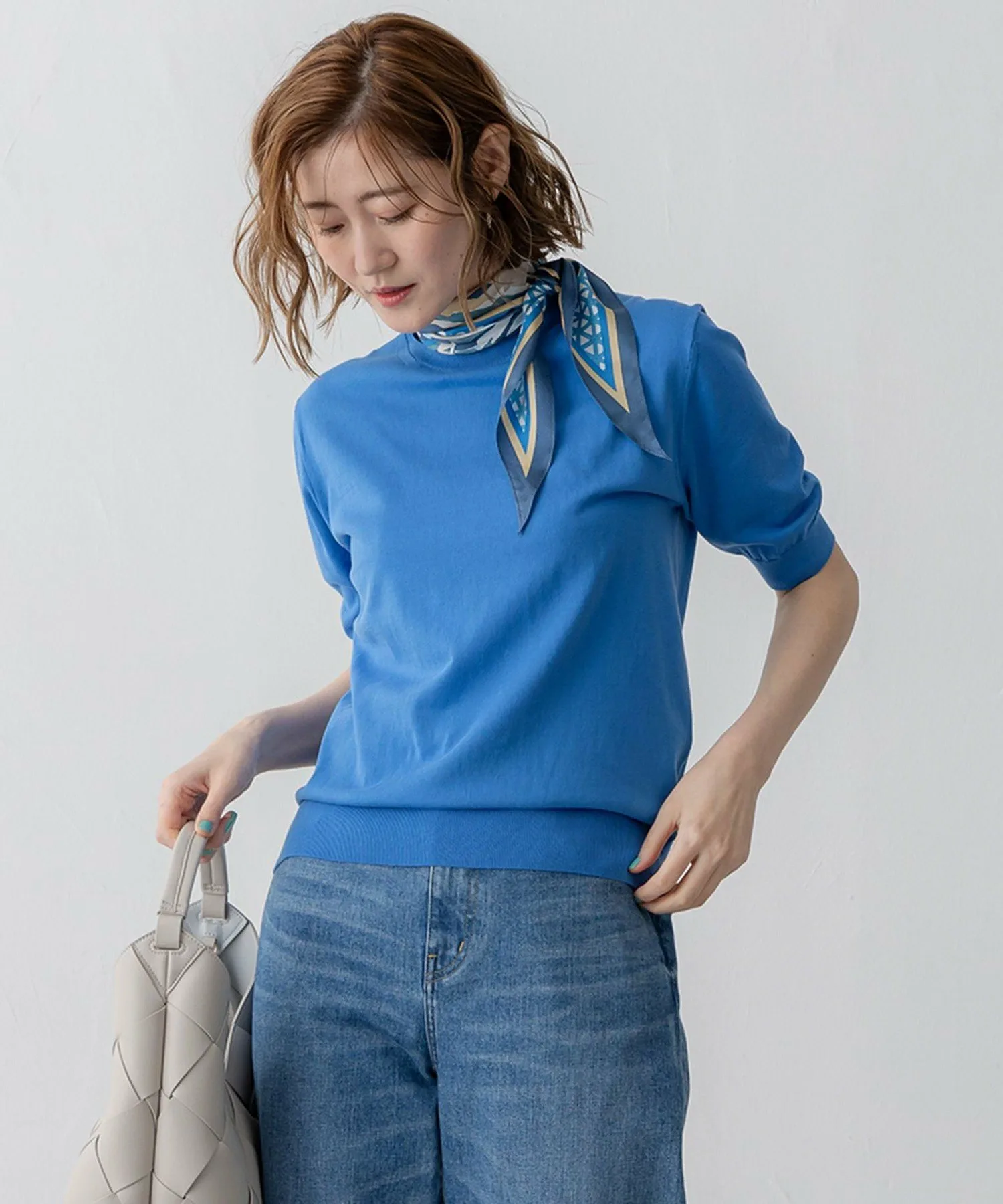 Простой вязаный пуловер с воротником-стойкой. Он обеспечивает оптимальную защиту шеи в зависимости от погоды. С рукавами выше локтя, это универсальная вещь, которую можно носить как самостоятельно, так и в середине лета. Сочетайте его с кардиганом из того же материала для классического образа. Доступен в четырех цветах: базовый белый (#001), насыщенный желтый (#040), освежающий синий (#070) и изысканный темно-синий (#075).