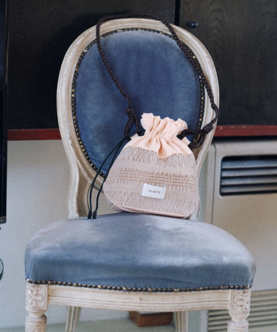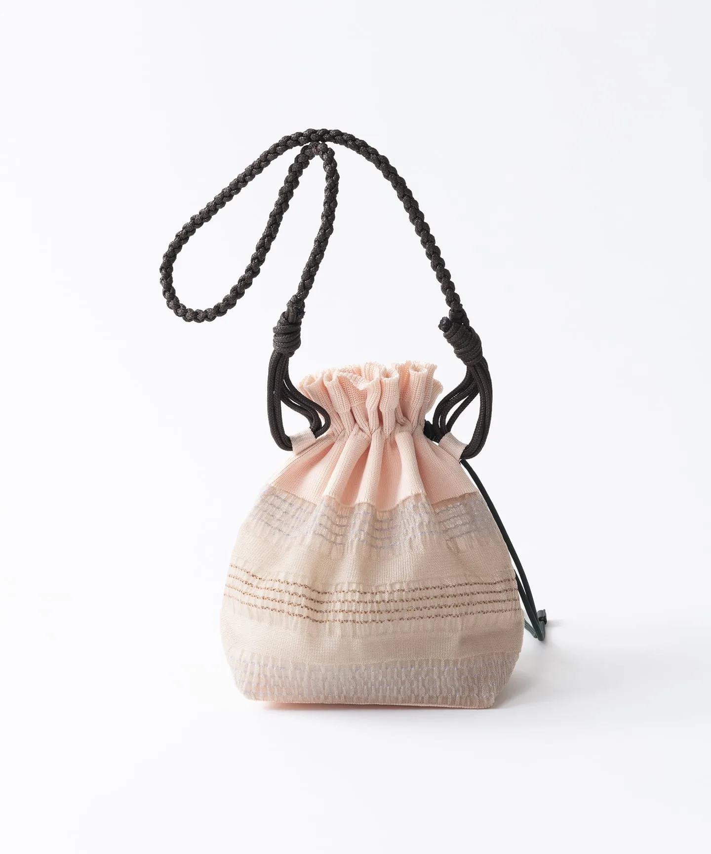 Вязаная сумка-клатч с узором по краю, выполненным из хлопчатобумажной нити. Яркие цвета хлопчатобумажной нити и фактурная структура придают ей выразительность, создавая стильный образ. Ручка выполнена из оригинального материала ручной вязки. Затягивающийся шнурок делает сумку стильной и удобной в использовании.