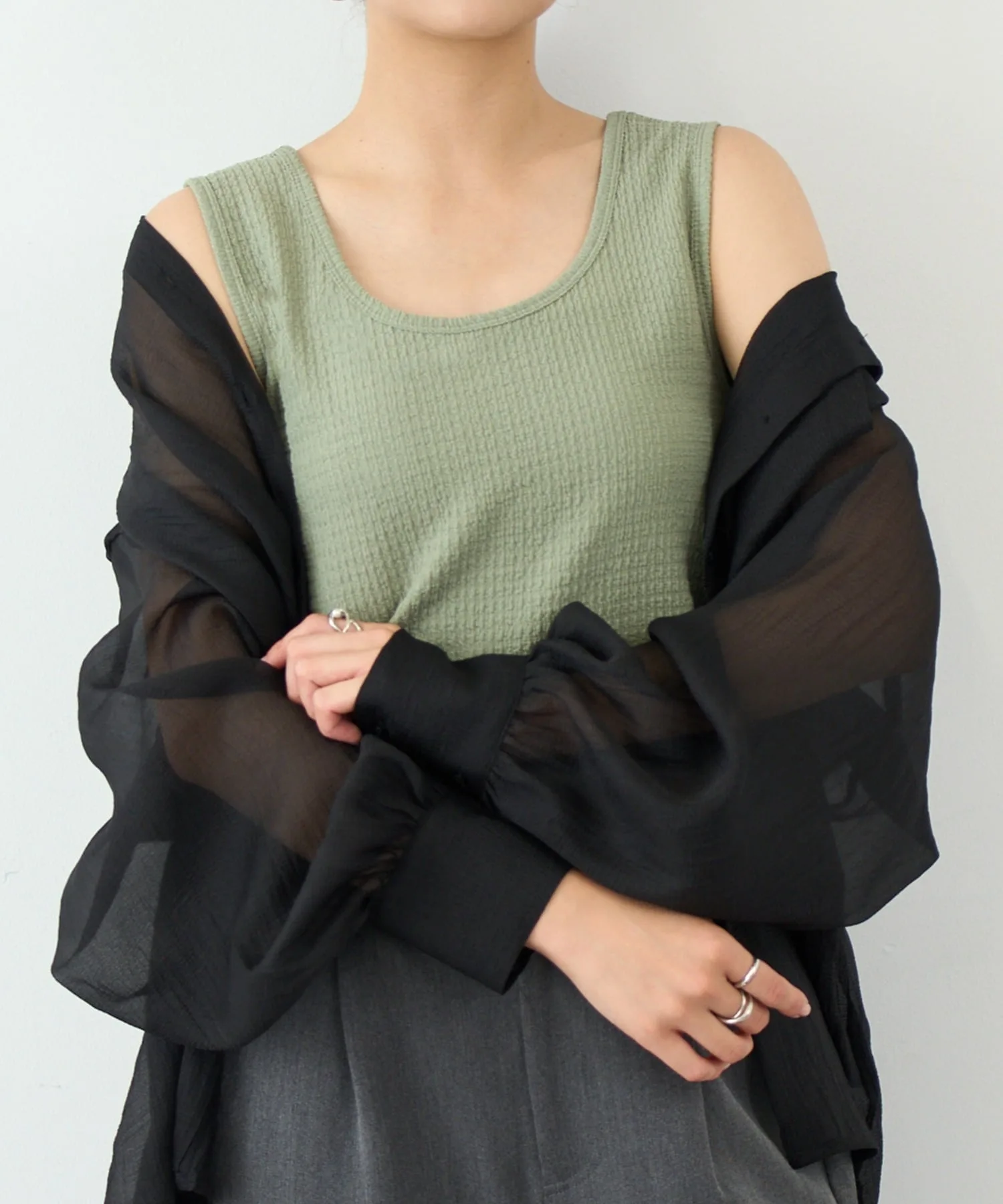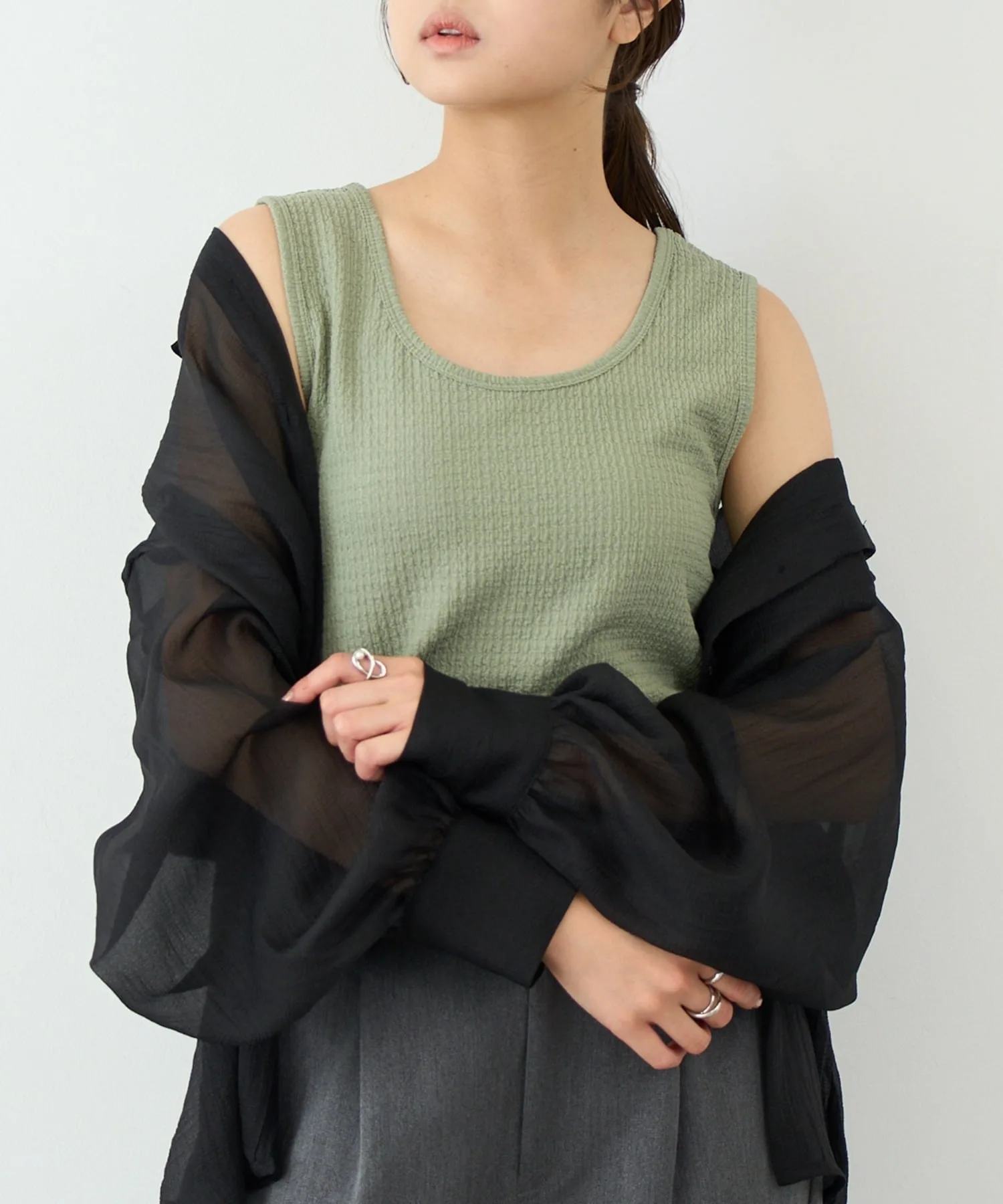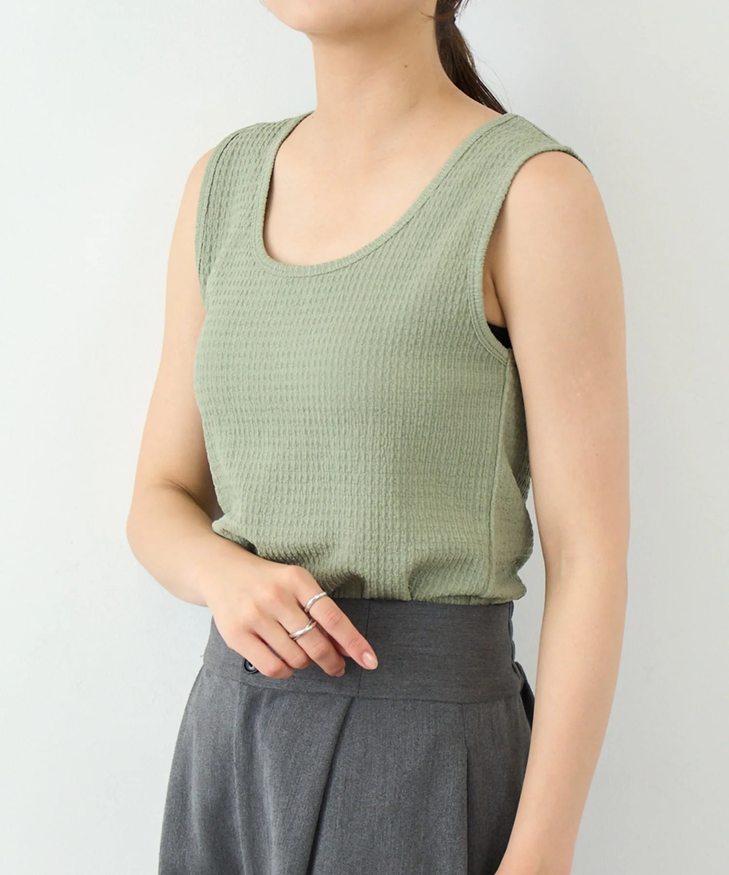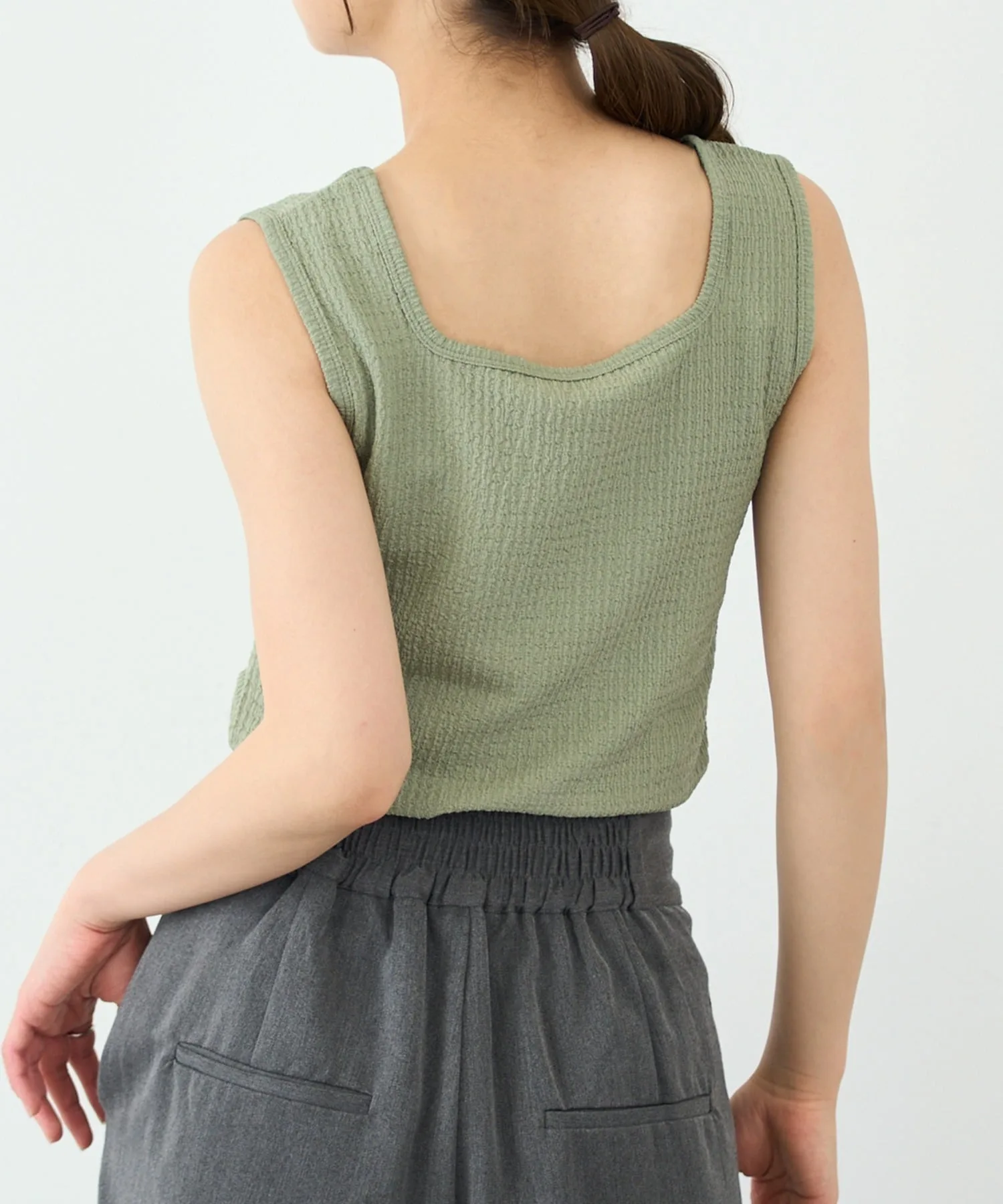 Преимущества・Двусторонний дизайн с круглым и квадратным вырезом позволяет сочетать ее с любым нарядом.・Эластичный материал обладает превосходной эластичностью, что делает ее удобной в ношении.・Хорошо сидит, но не стесняет движений, обеспечивая отличную свободу движений.・Приятная на ощупь, не вызывает дискомфорта даже при длительном ношении.・Не ощущается как нижнее белье и может носиться самостоятельно, расширяя диапазон сочетаний одежды.