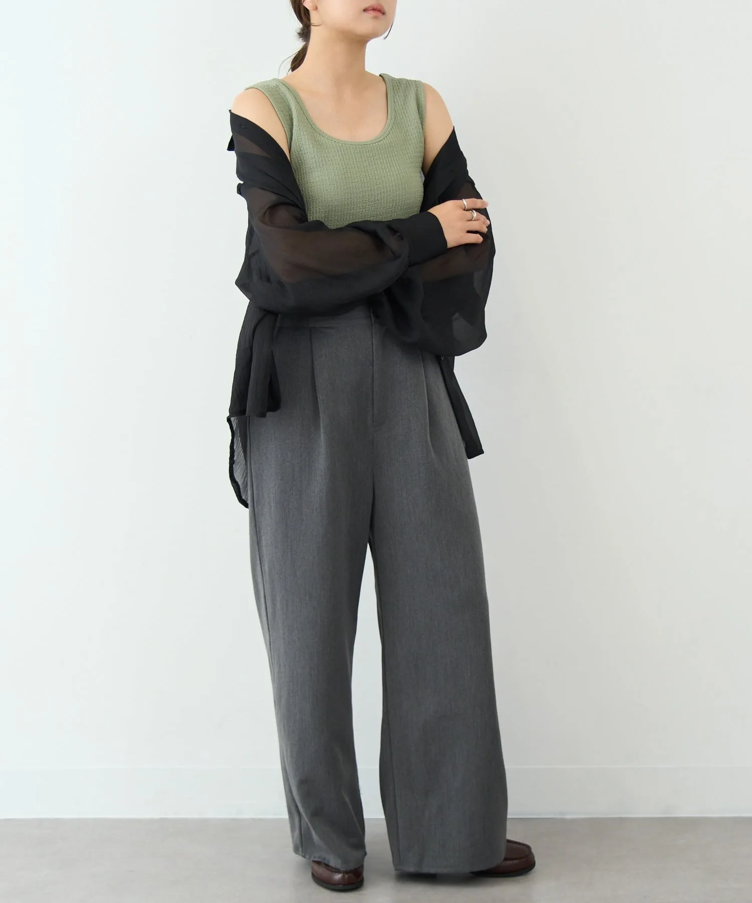 Сочетайте・Сочетайте с джинсами для создания здорового образа и демонстрации частички кожи.・Сочетайте с джинсами или простыми брюками для создания повседневного стиля♪・Сочетайте с кардиганом ранней осенью для более длительного ношения.・Также легко сочетается со спортивными кроссовками и сандалиями.