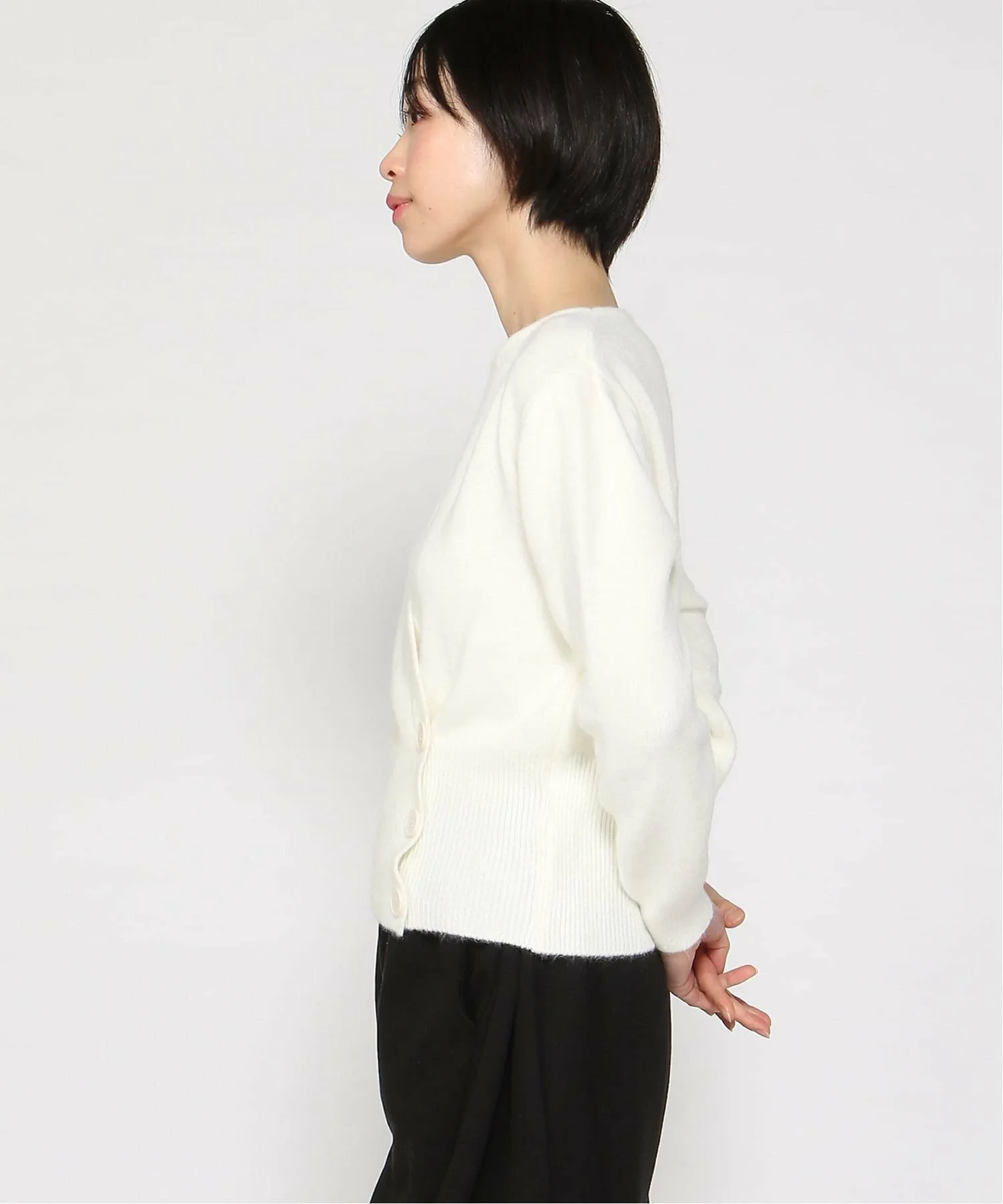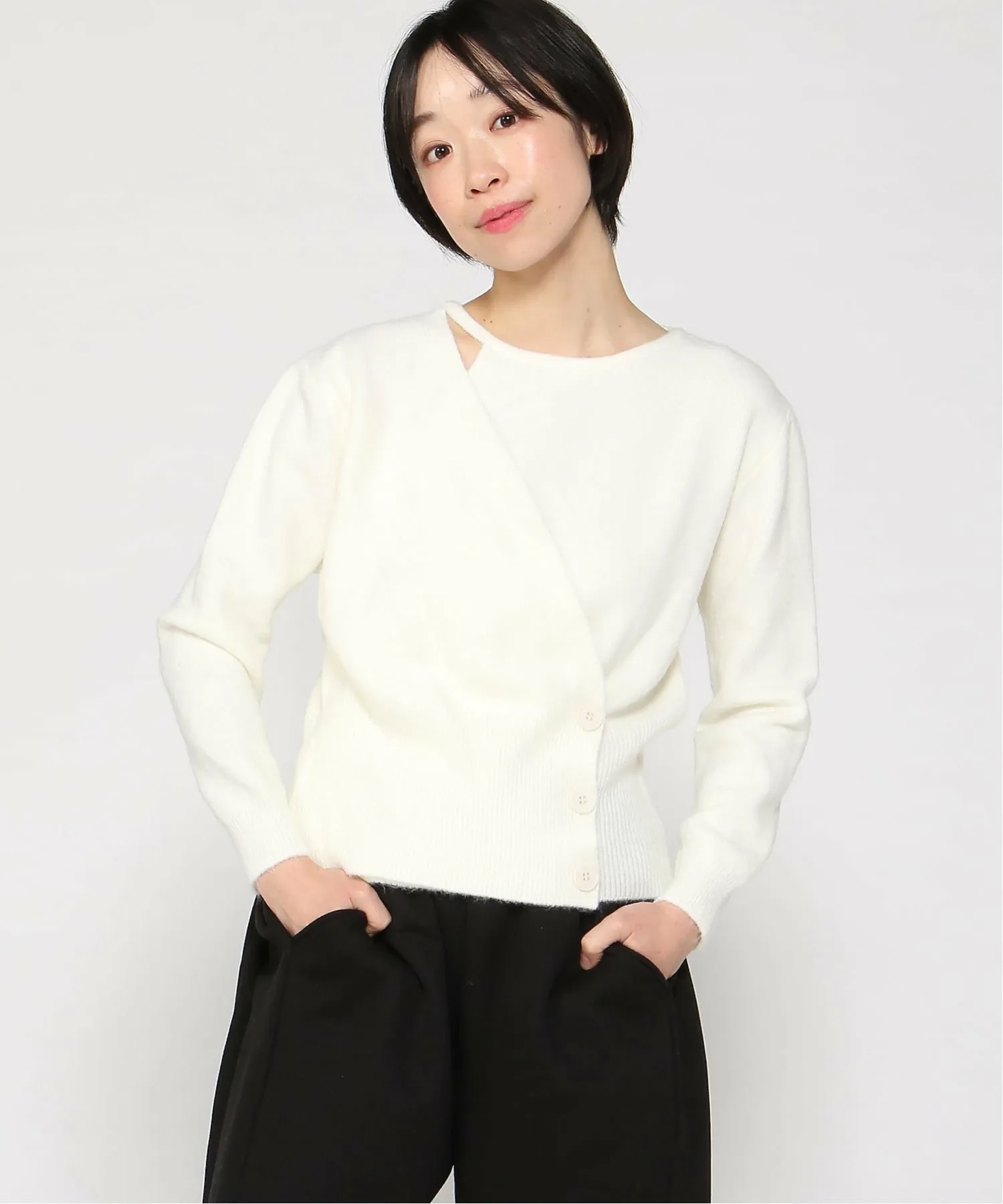 Этот трикотажный свитер с длинными рукавами имеет асимметричный дизайн, который создает шикарный образ даже в сочетании с простым нарядом.