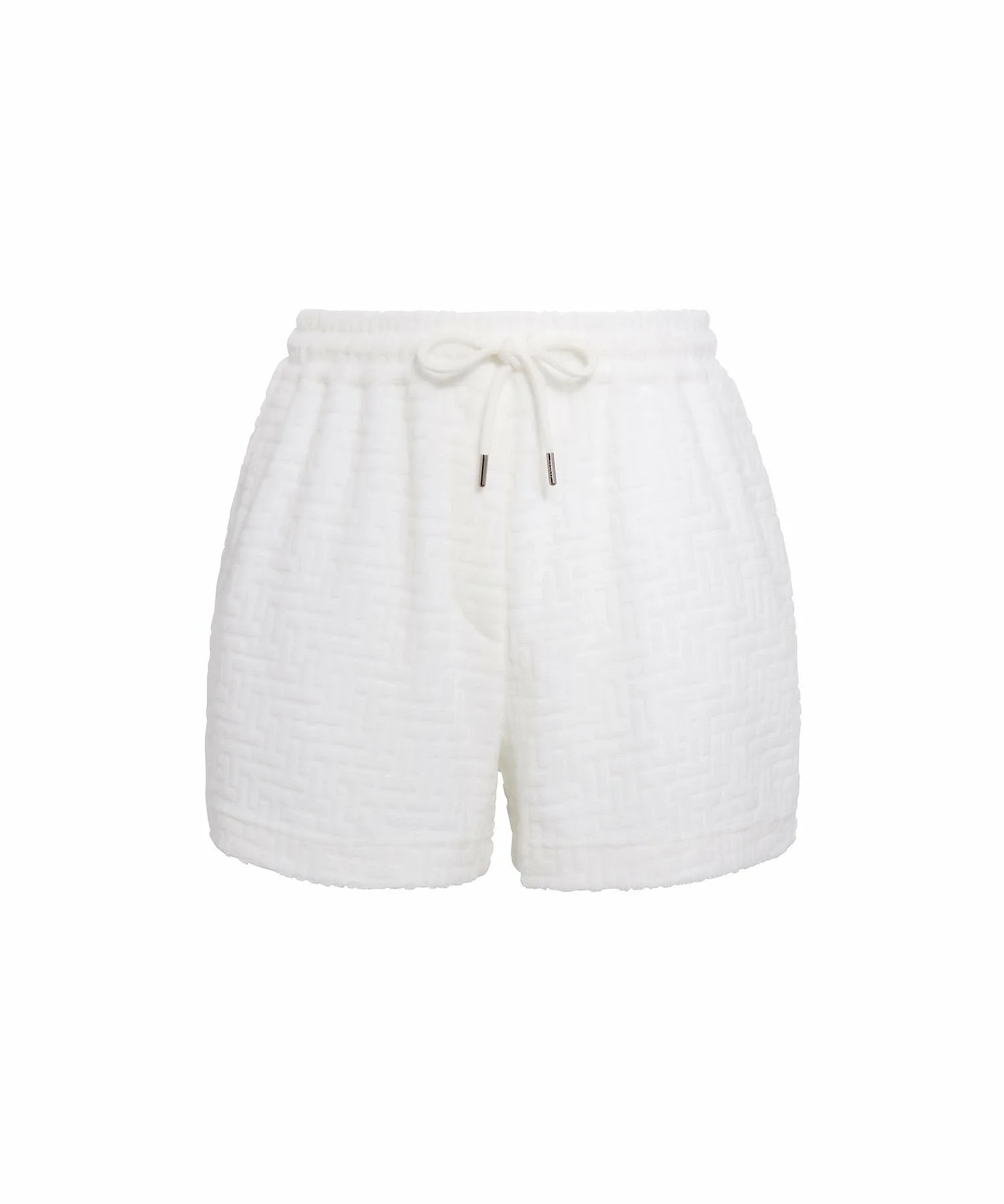 Повседневные короткие шорты из ворса с эффектным трехмерным жаккардовым монограммным узором.