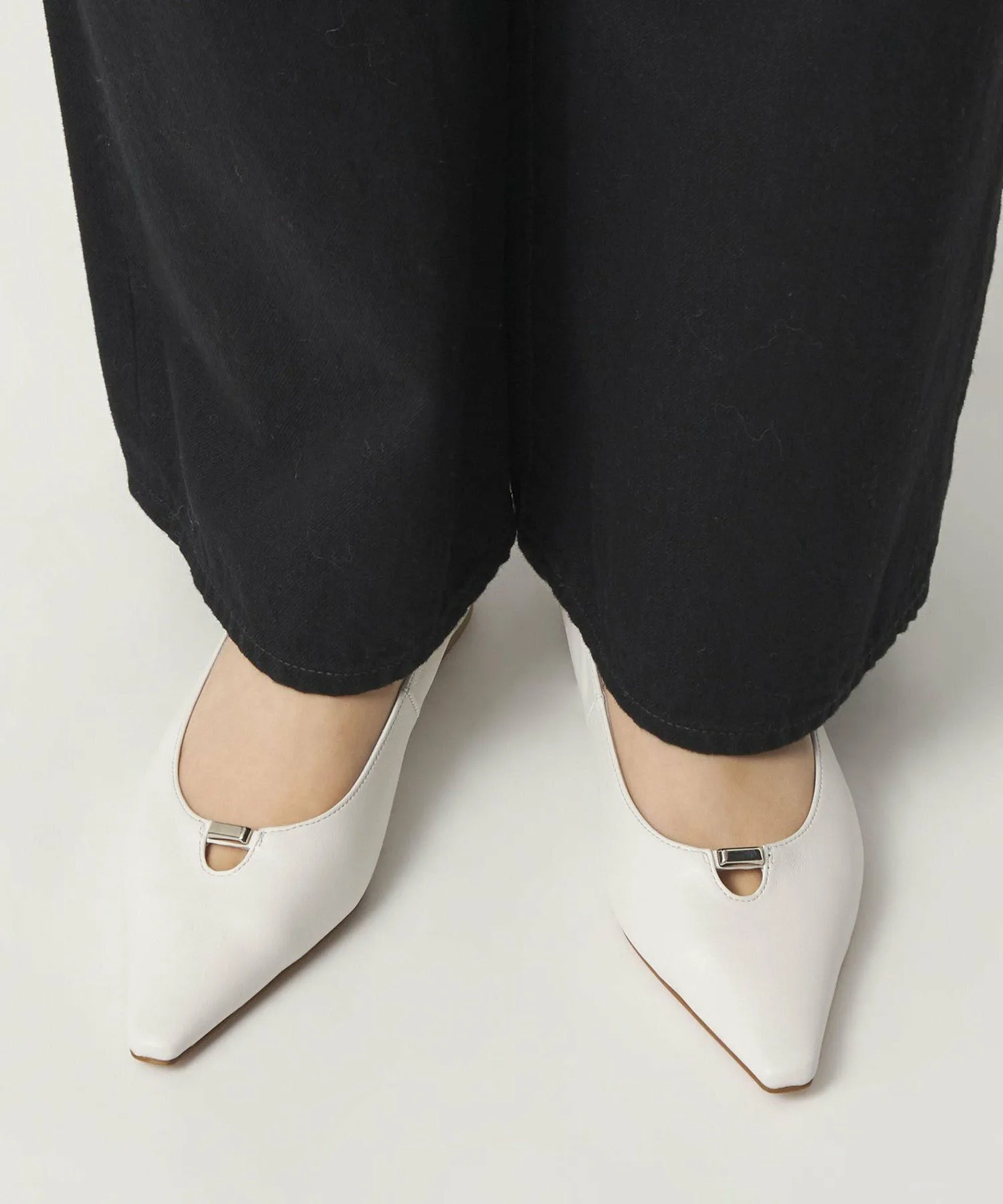 Тонкий носок и небольшие прямоугольные металлические акценты на верхней части создают стильный образ.
