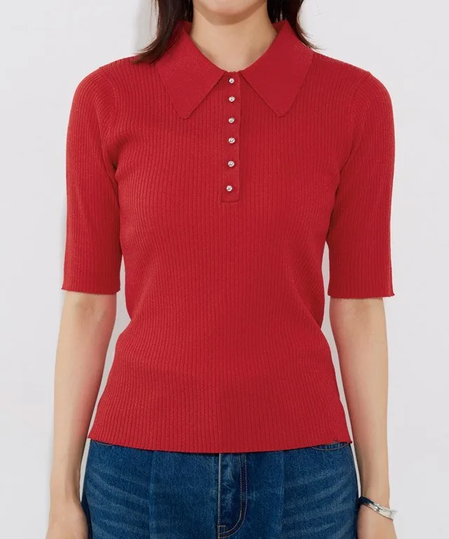 Жемчужные и декоративные пуговицы добавляют стильный акцент вашему образу, придавая ему модный вид. Доступны два варианта на выбор в зависимости от вашего предпочтения. Дизайн рубашки-поло — это тренд. Простой силуэт позволяет легко сочетать ее с брюками или юбками, что делает ее идеальной для повседневной носки. Длинные рукава три четверти деликатно закрывают руки.