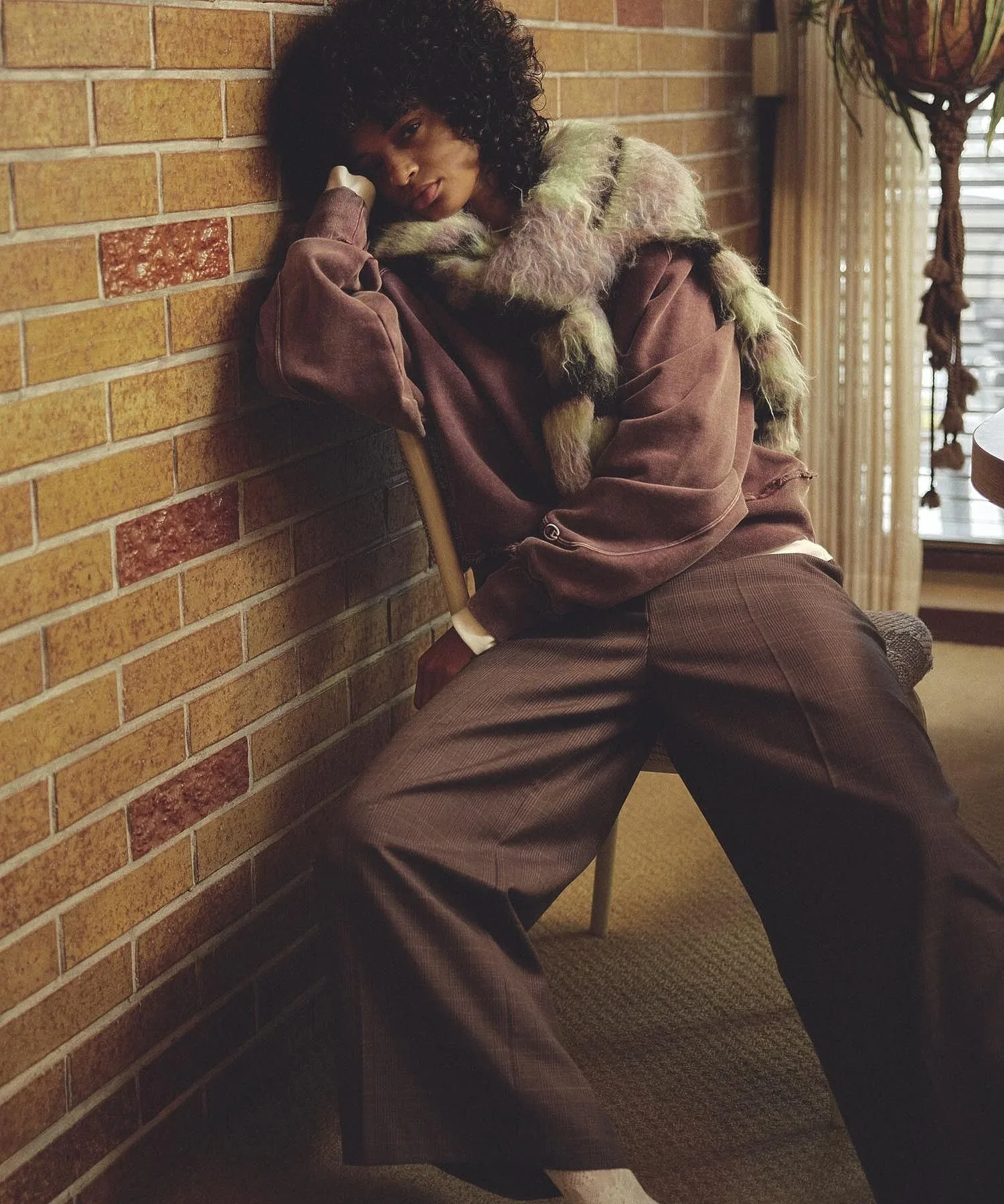 Детали с бахромой на рукавах и подоле добавляют тонкий акцент, создавая повседневный, но в то же время изысканный образ.