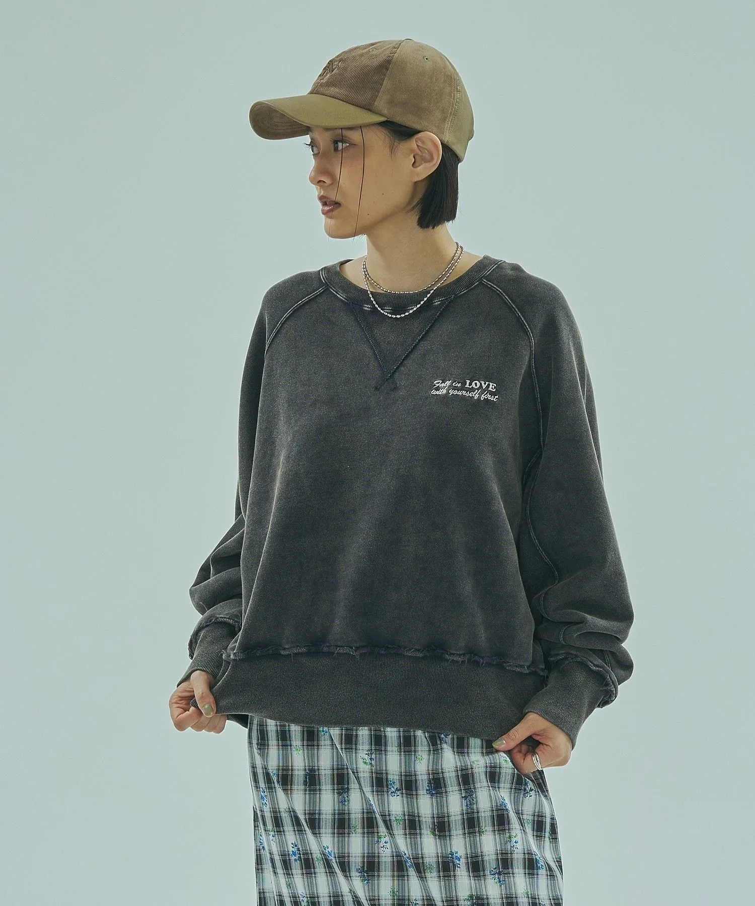 ・На груди вышита позитивная надпись «Влюбись в себя с первого взгляда»