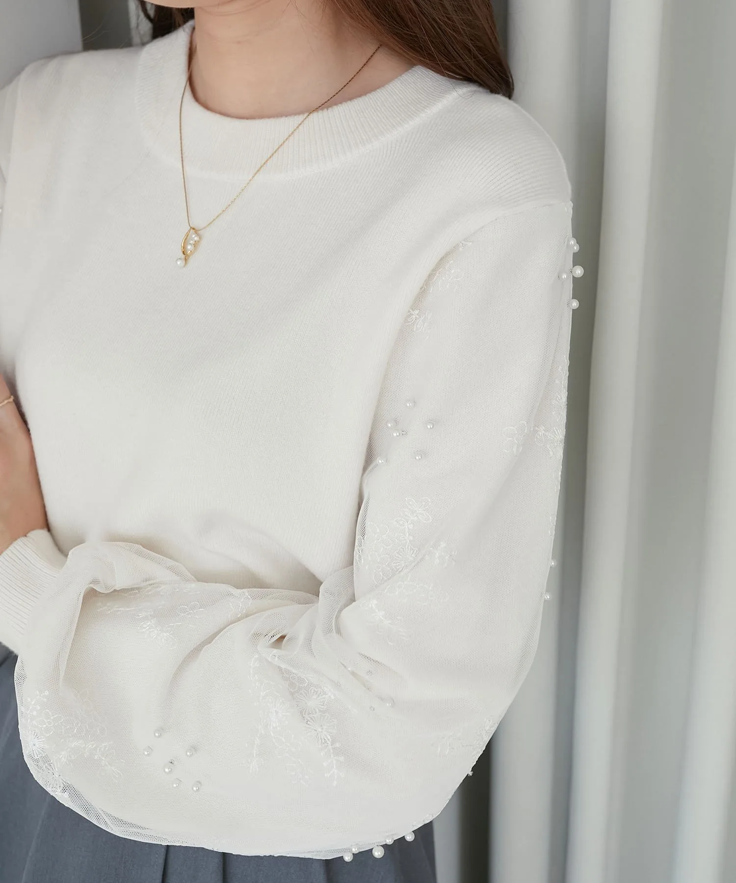 Тюлевая вышивка и жемчужная вязка для женственного образа