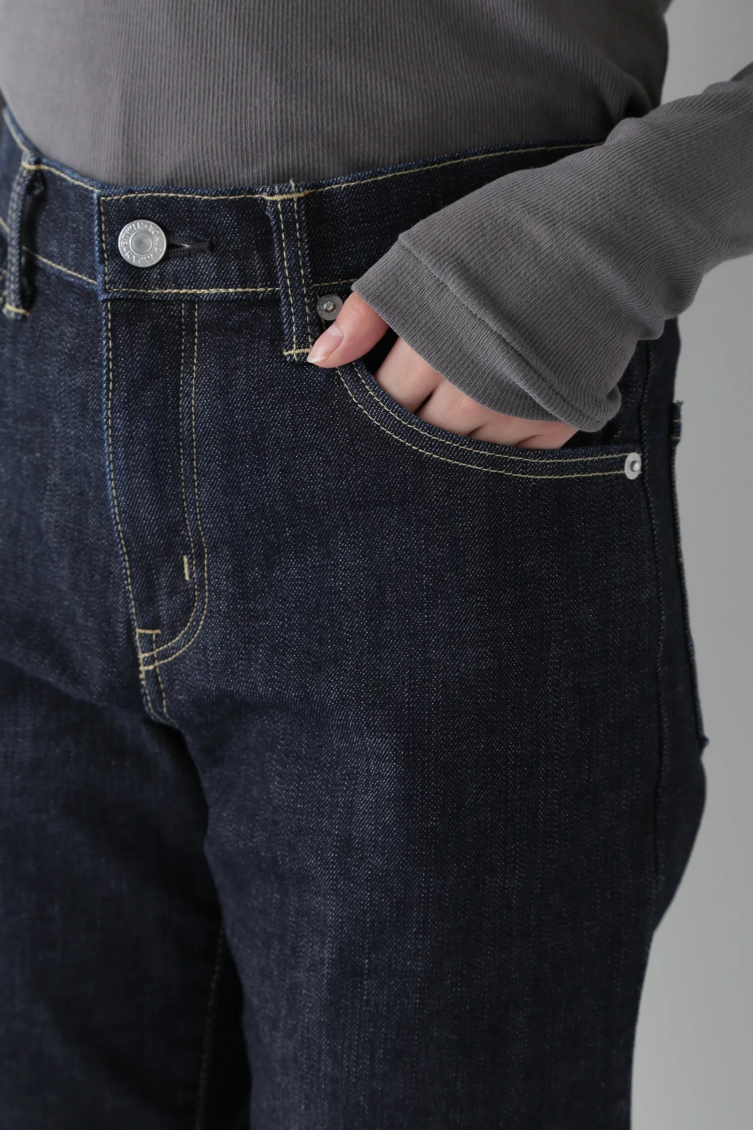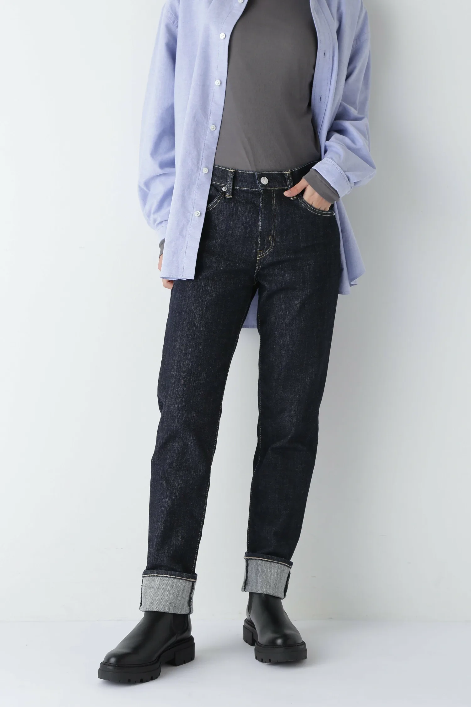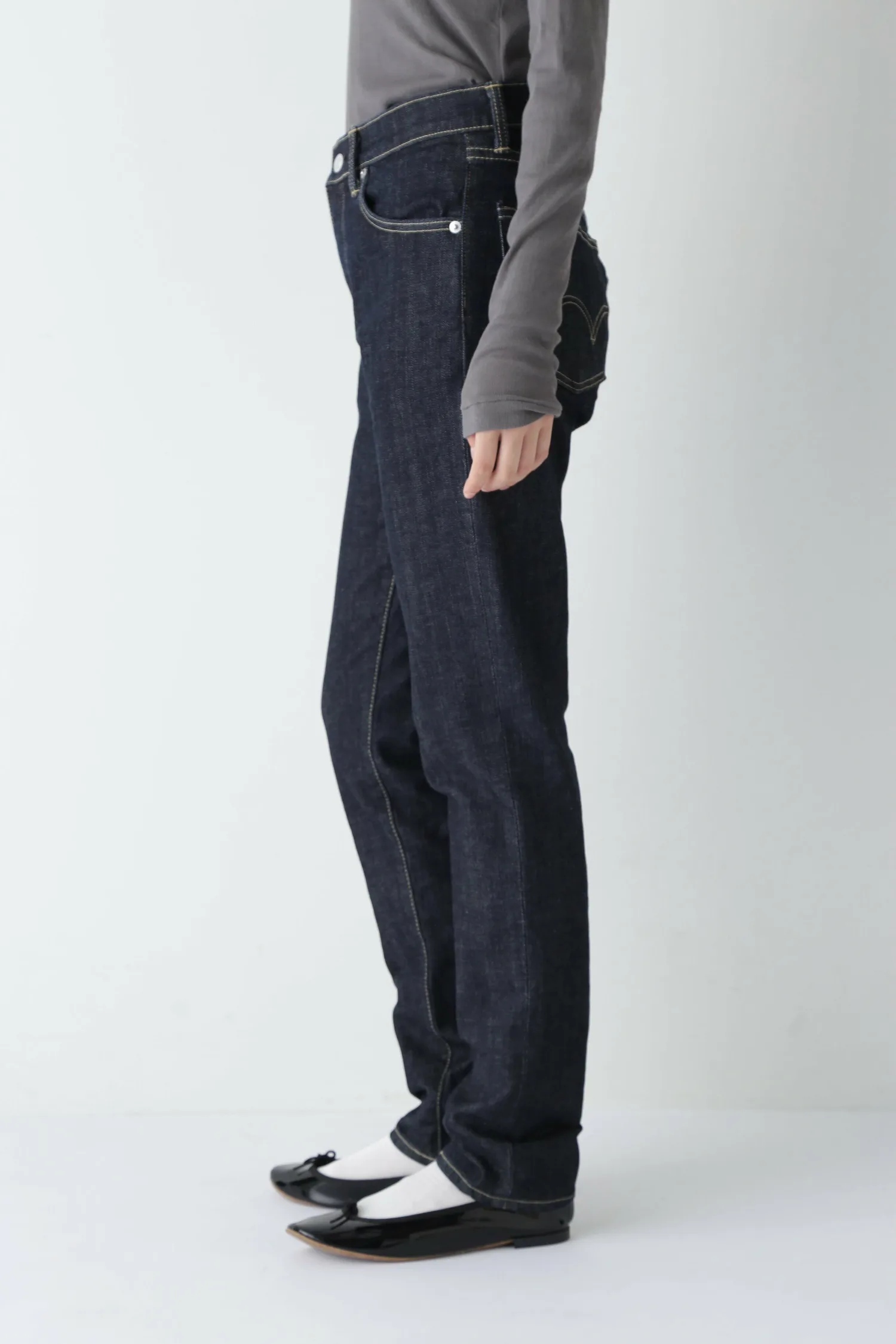 Это изделие создано в сотрудничестве с EDWIN 503. Джинсы 503 были выпущены в 1997 году. Эти джинсы созданы специально для японского рынка, с акцентом на лаконичный индиговый цвет и прямой силуэт. Полоски на подкладке карманов и дизайн размерной карты выполнены на заказ. Кроме того, размеры S (26) и SS (25) доступны эксклюзивно в humanwoman.