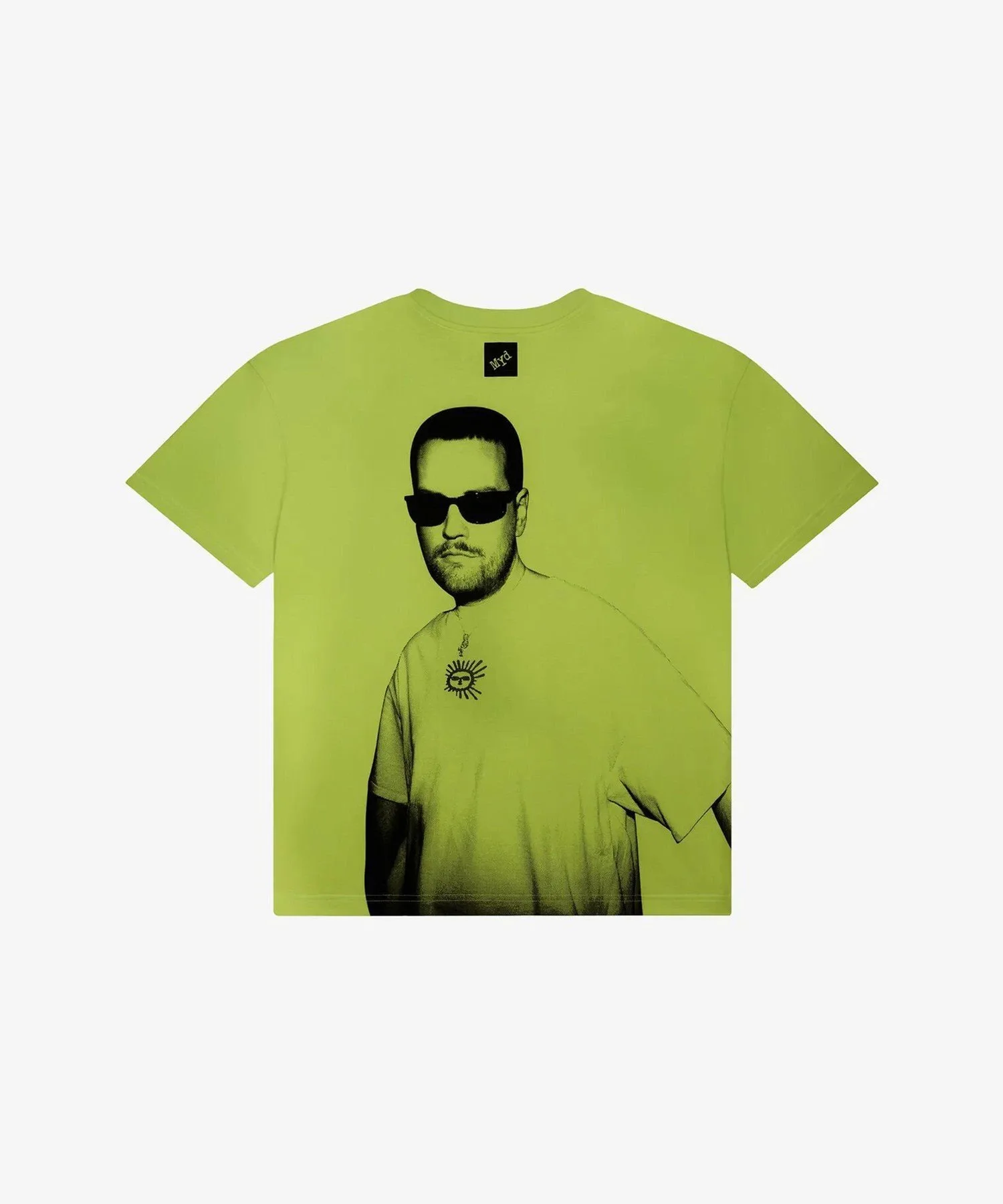 Неоново-желтая свободная футболка унисекс с портретным принтом Myd.