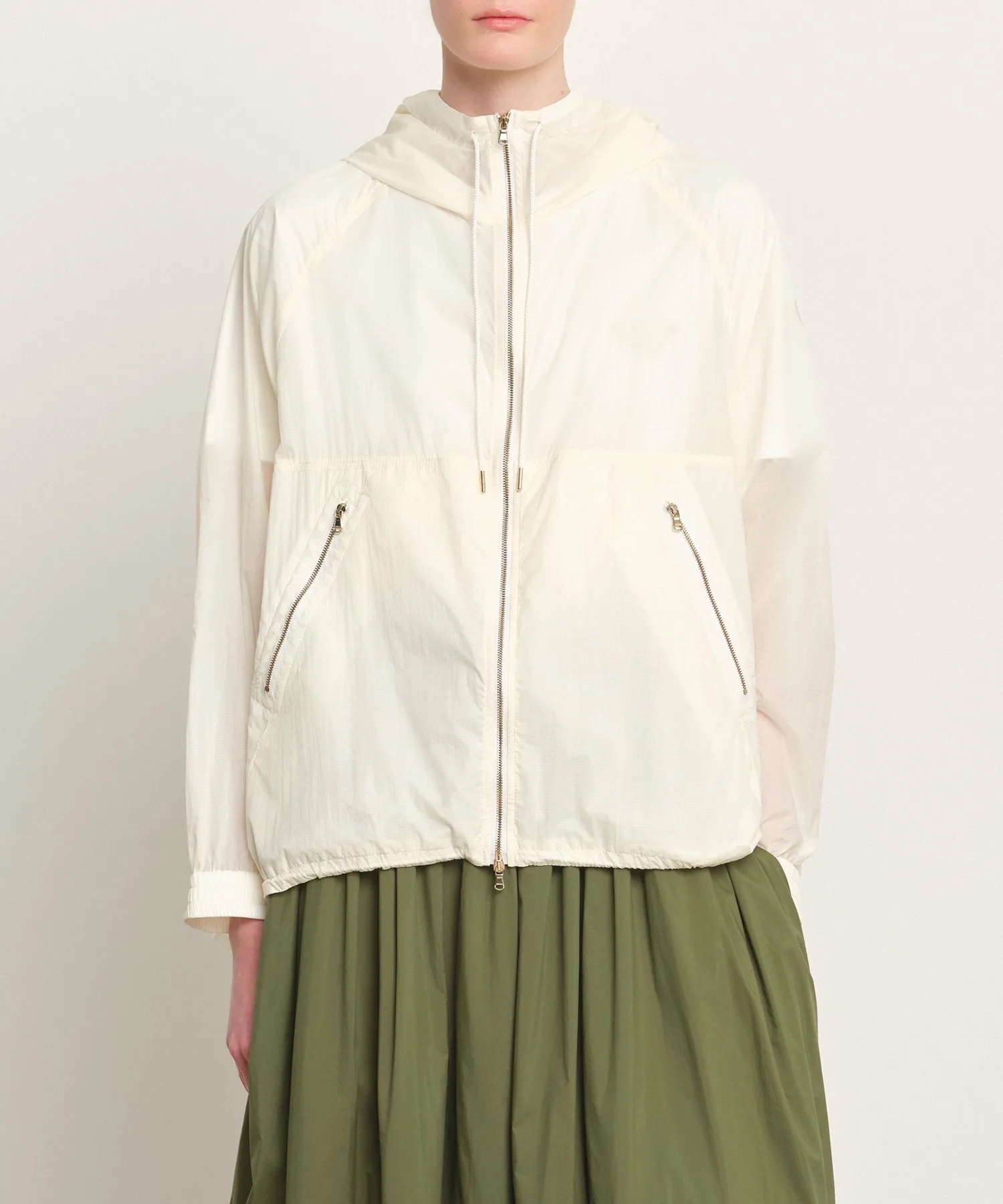 Куртка с капюшоном, А-образным силуэтом и красивой драпировкой на спине.