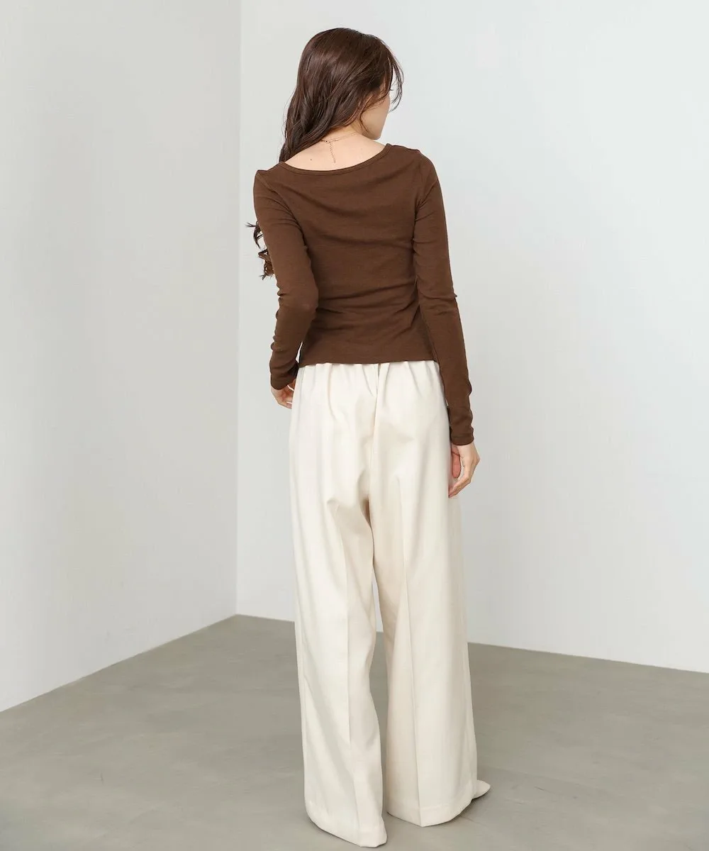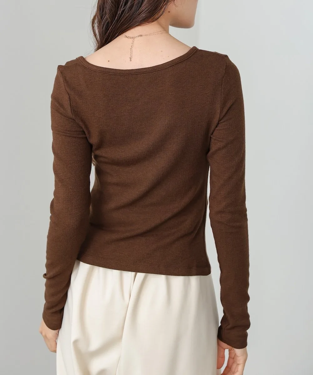 POINTТоп с необычным дизайном выреза горловины, привлекающим внимание своей изысканной линией декольте. Простой, но в то же время уникальный вырез создает утонченное впечатление, если носить его отдельно. Силуэт не слишком подчеркивает линии тела, что делает его универсальным предметом одежды, который легко носить каждый день и который создает утонченный образ.