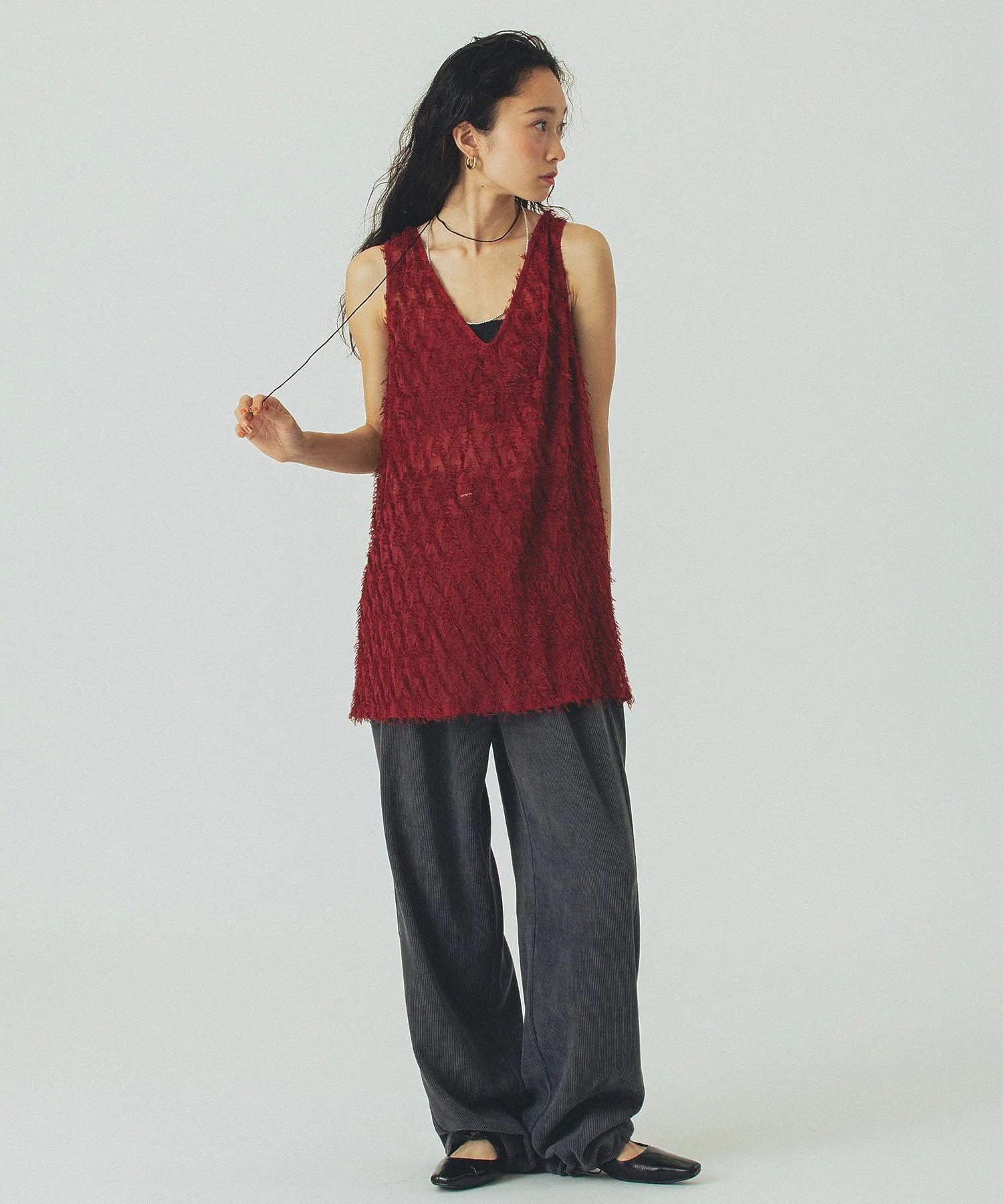 Блузка-майка с двумя вариантами выреза, выполненная из выразительного жаккардового материала.