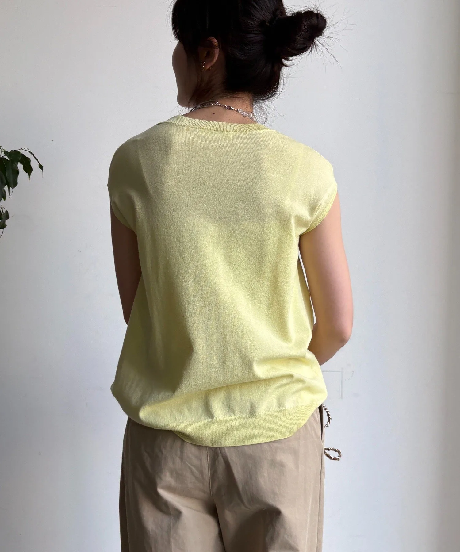 На первый взгляд, этот вязаный пуловер может показаться простым, но его двухсторонний дизайн позволяет носить его на плечах, значительно расширяя возможности сочетания с другой одеждой.
