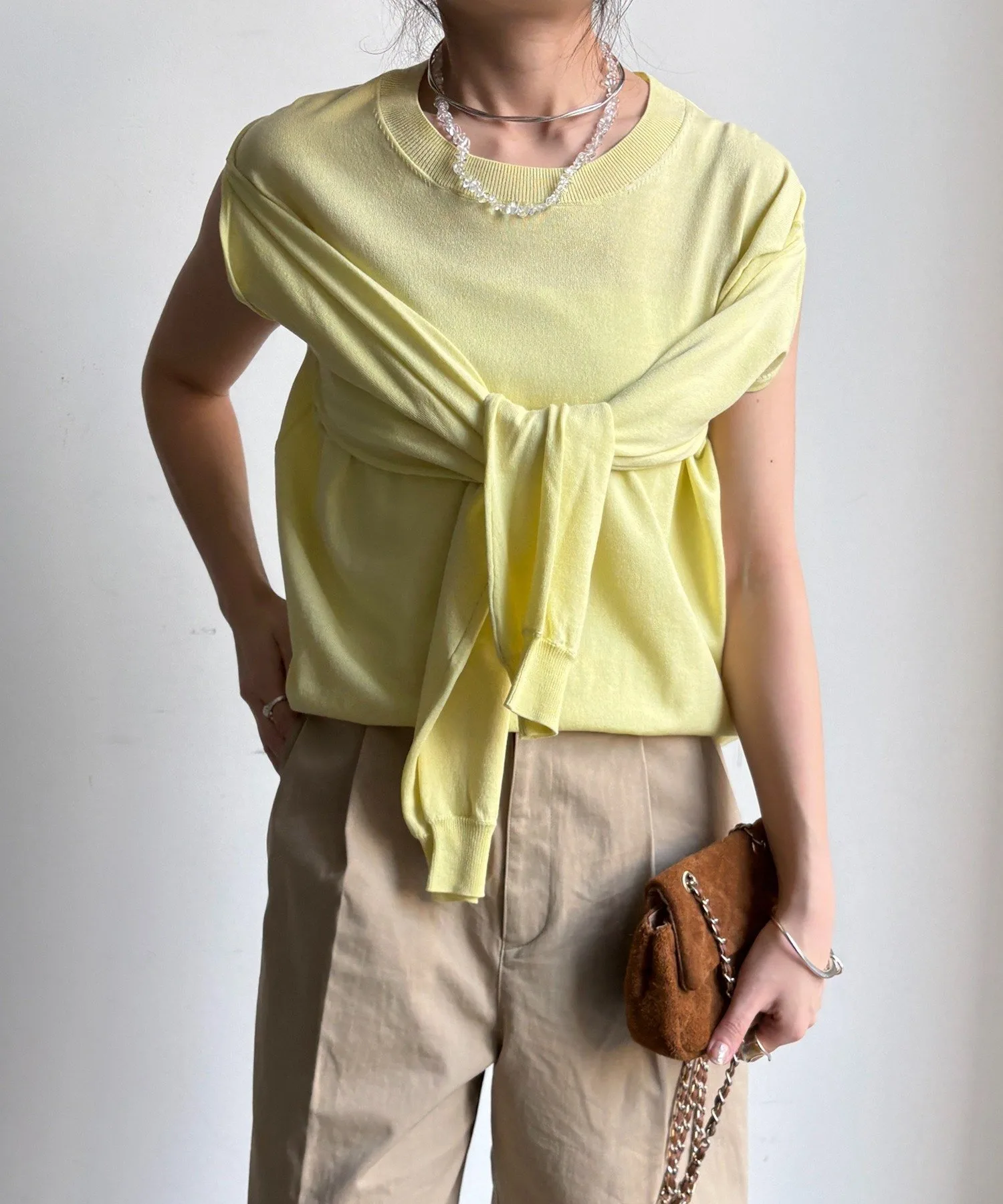 Образ можно изменить, просто изменив положение и баланс узла, и даже в сочетании с простыми брюками/юбкой он может создать утонченный образ.