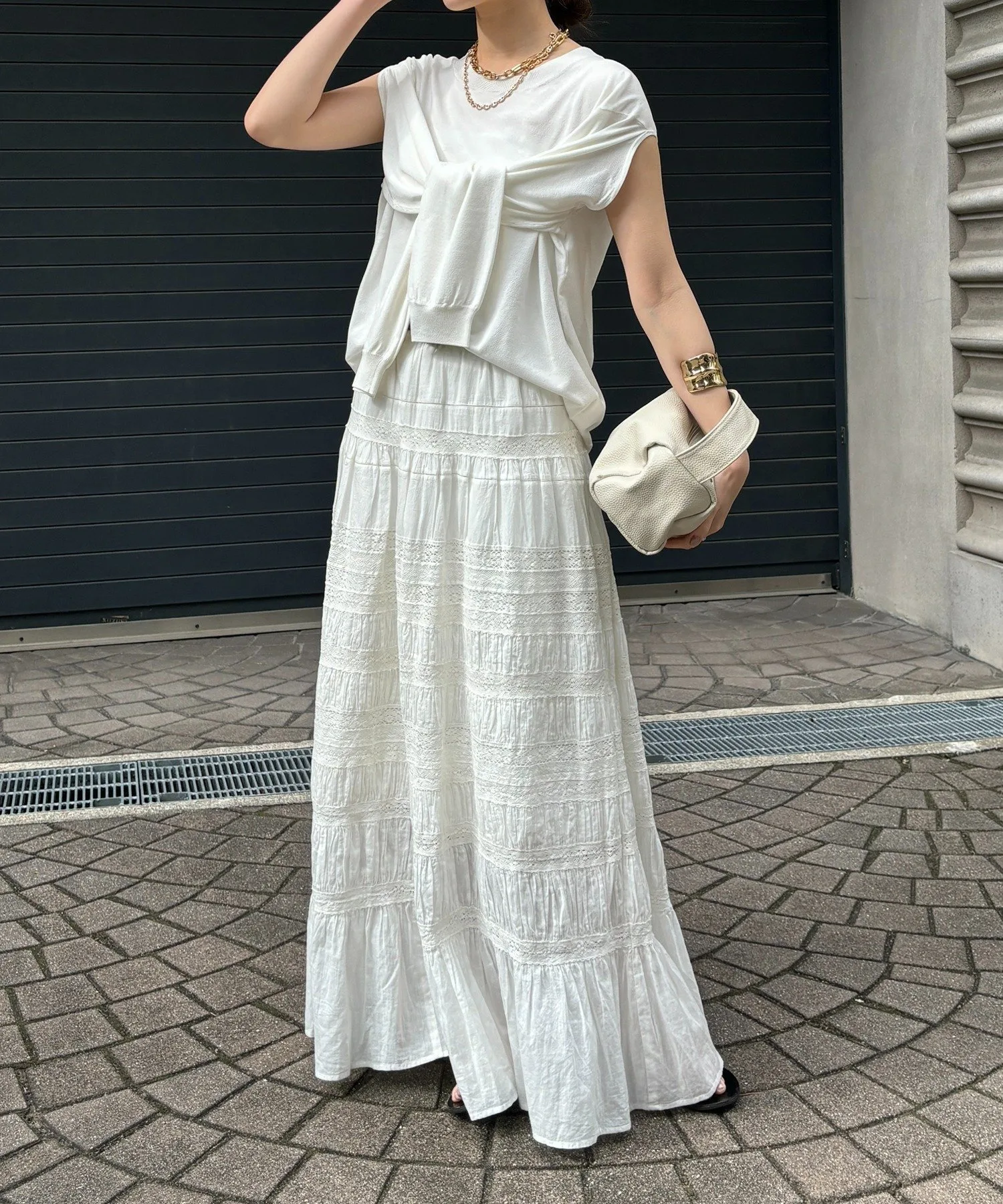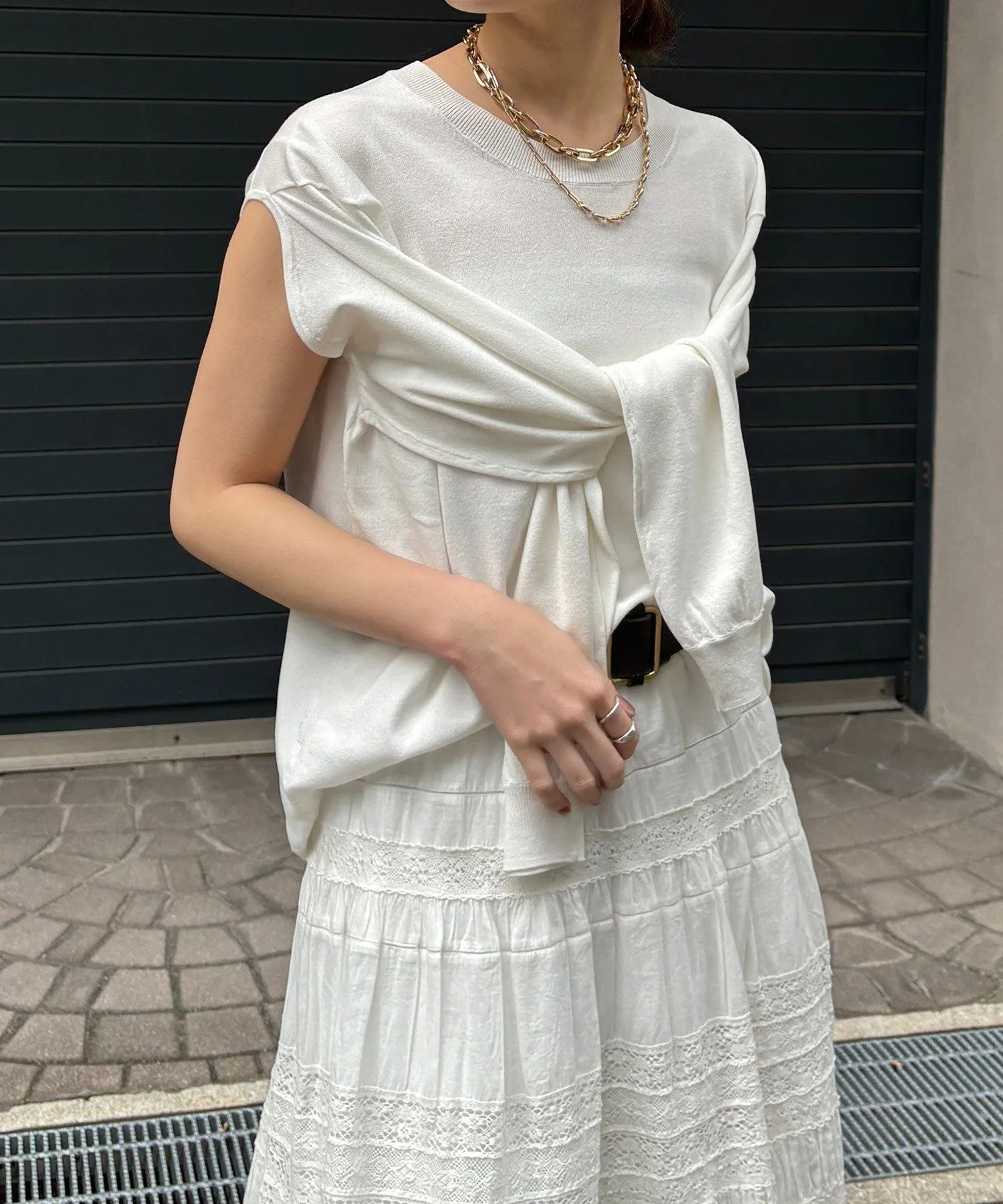 Воспользуйтесь прикрепленным разрезом и носите его на плечах, чтобы создать изысканный многослойный образ.