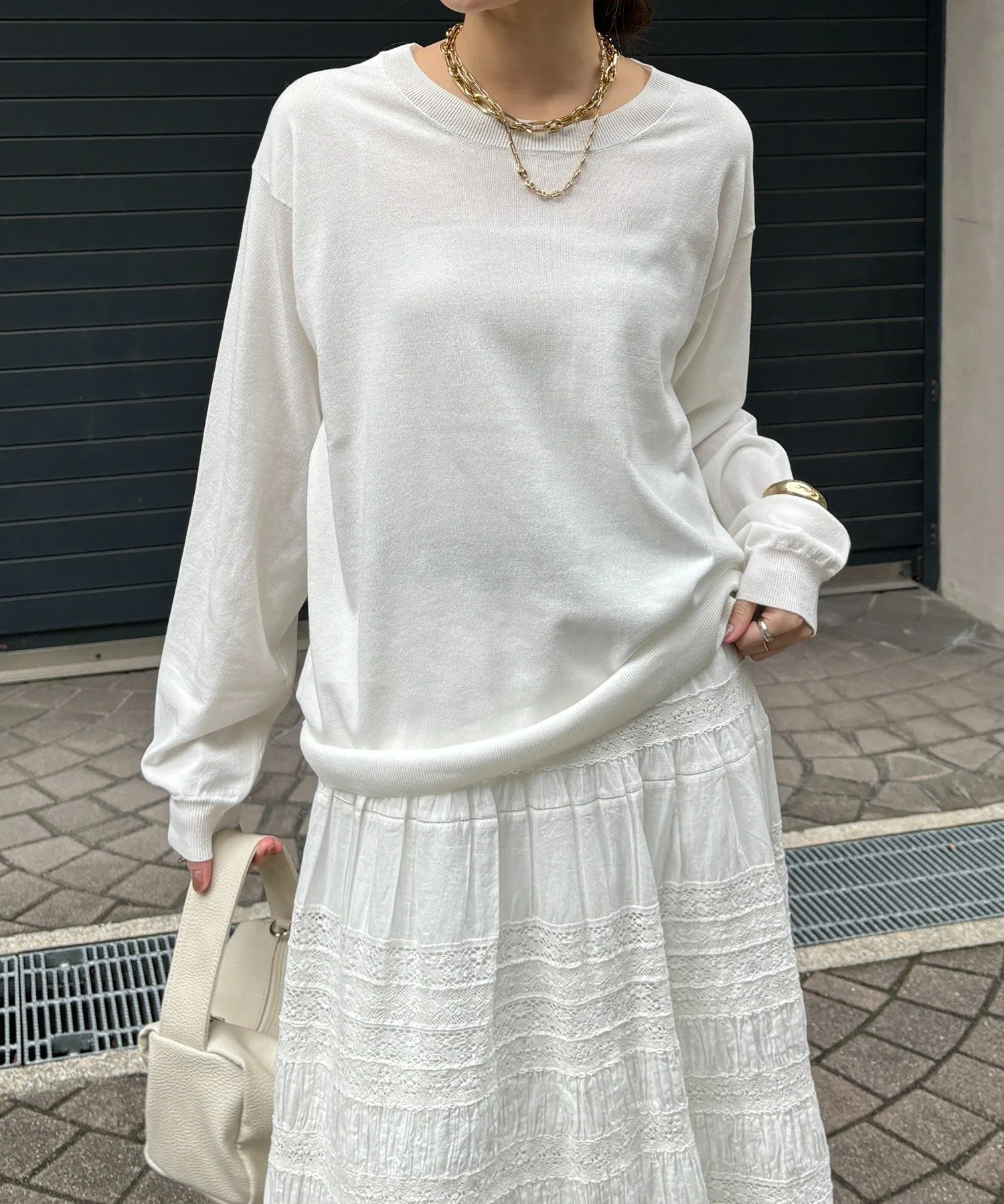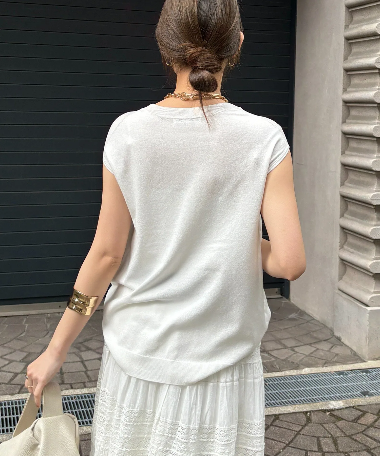 На первый взгляд, этот вязаный пуловер может показаться простым, но его двухсторонний дизайн позволяет носить его на плечах, значительно расширяя возможности сочетания с другой одеждой.