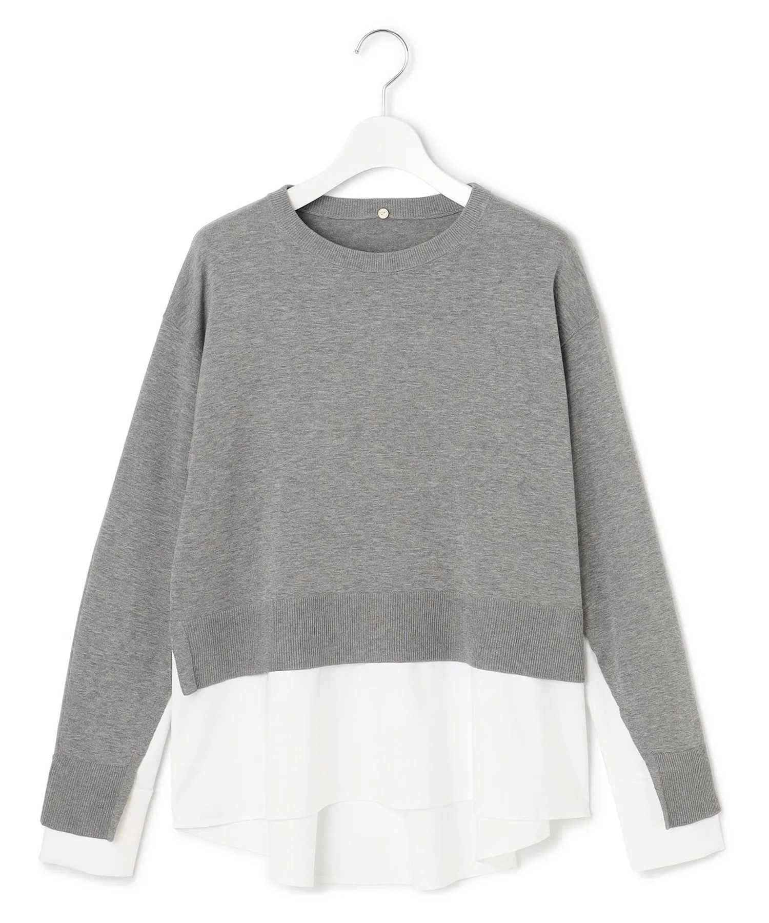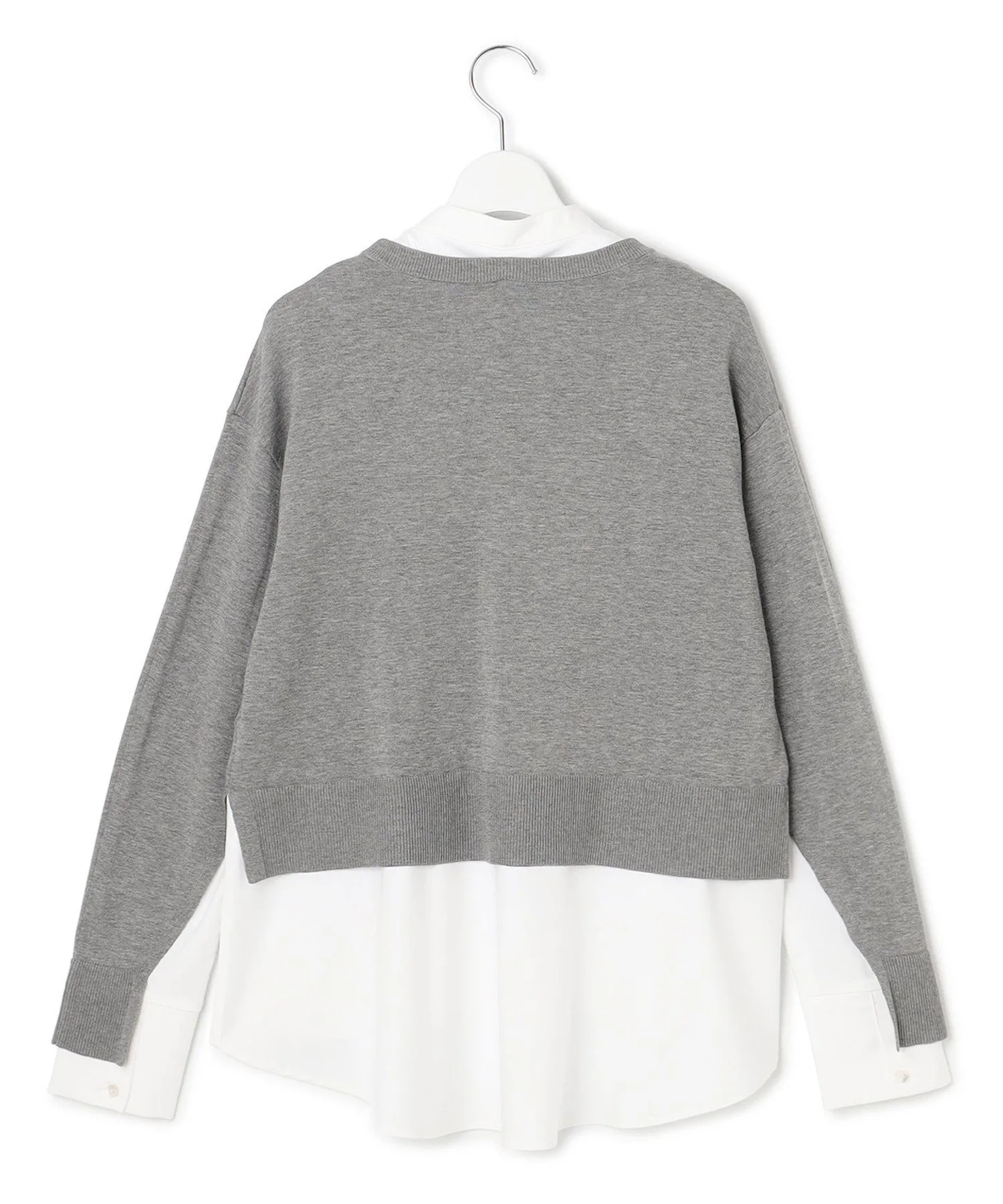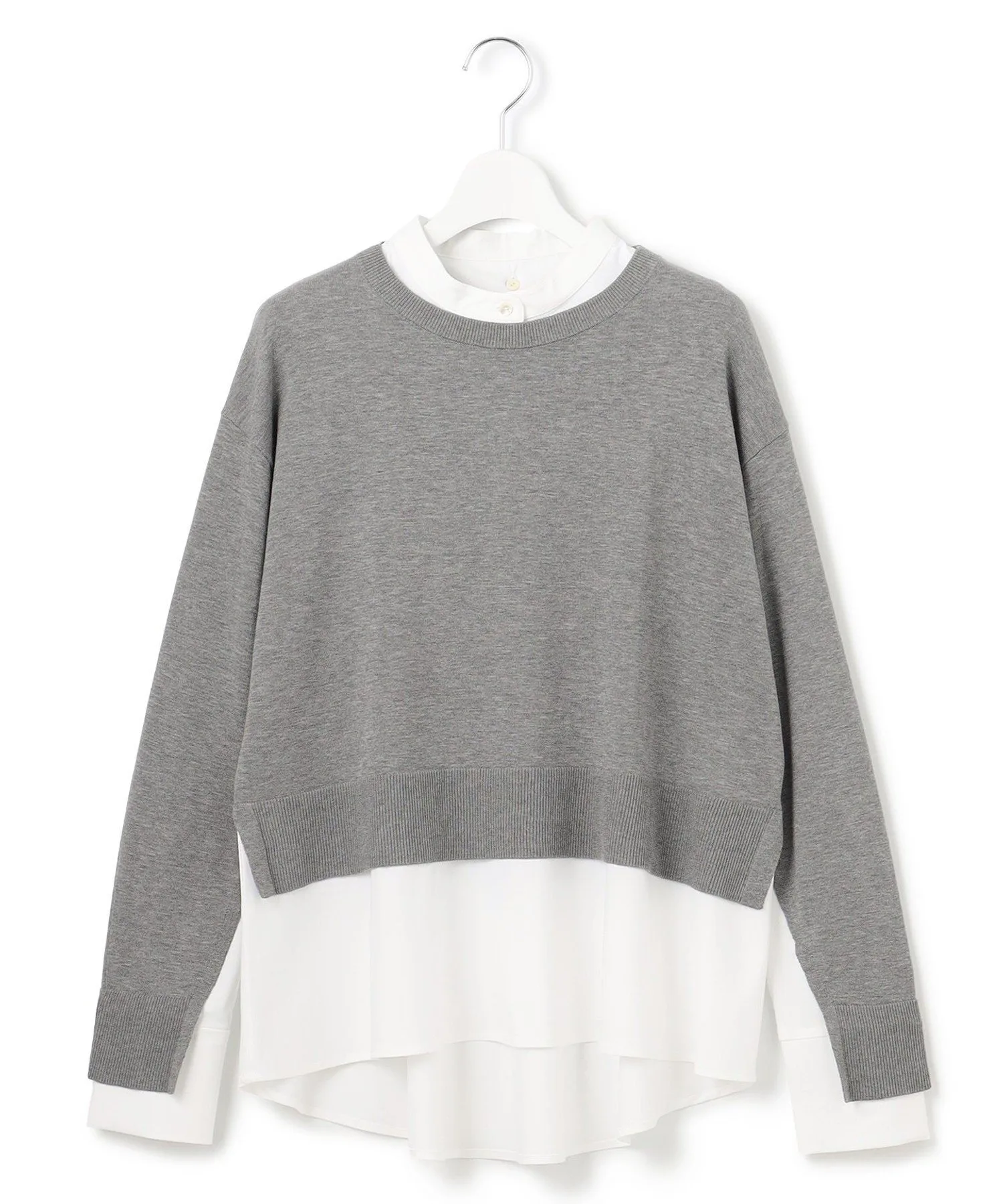 Вязаный пуловер с многослойным дизайном и съемным воротником. Этот модный короткий свитер имеет свободные полы, создающие эффект многослойности. V-образные разрезы под рукавами открывают рукава рубашки, создавая шикарный вид. Он создает изысканный образ, который выглядит так, будто на вас надето всего одно платье, что позволяет легко подобрать подходящий вариант даже в спешке по утрам. Доступен в трех цветах: спокойный серый (#004), изысканный черный (#005) и мягкий бежевый (#033).