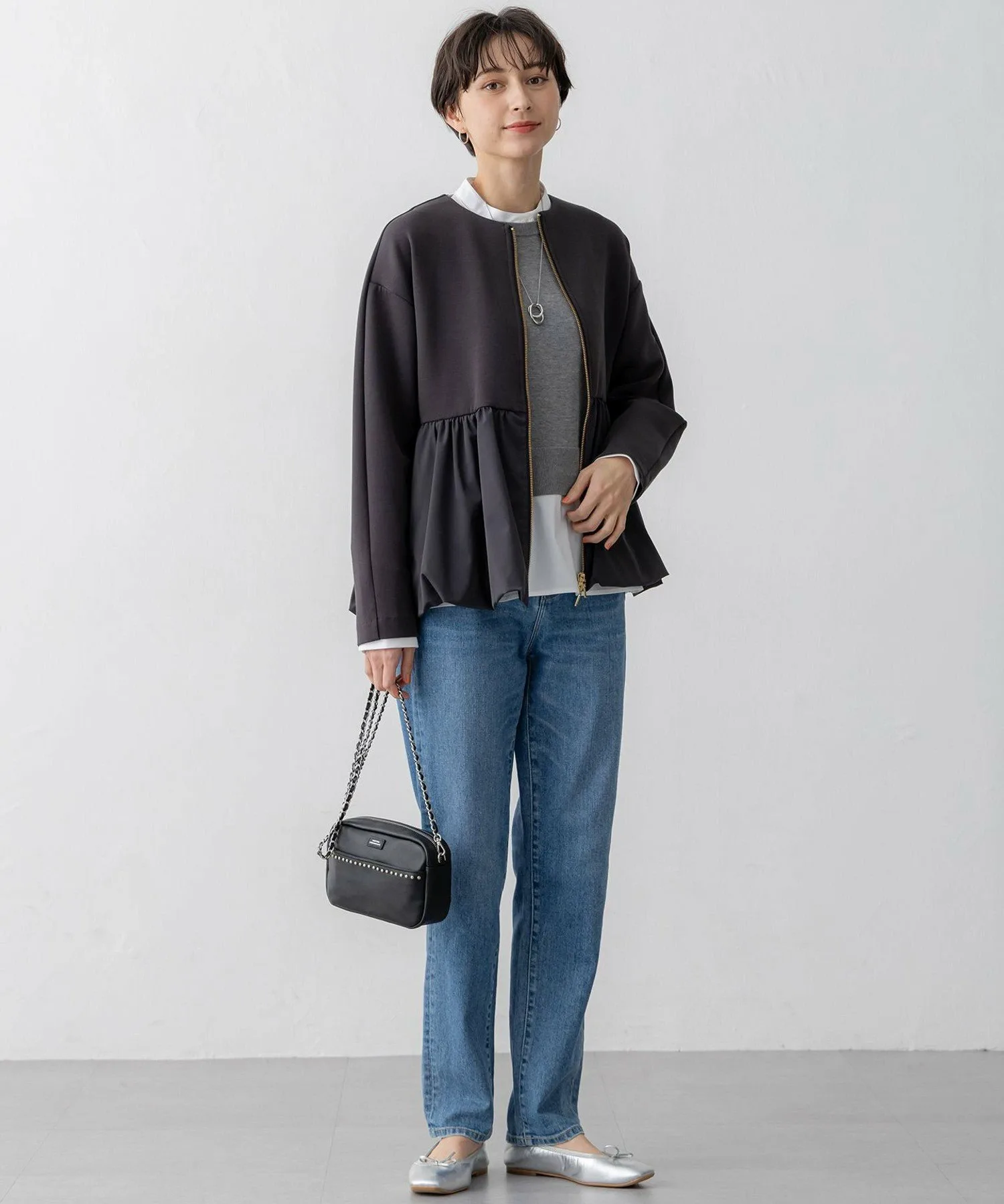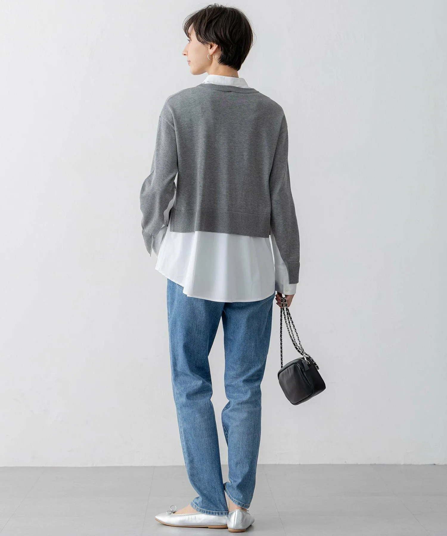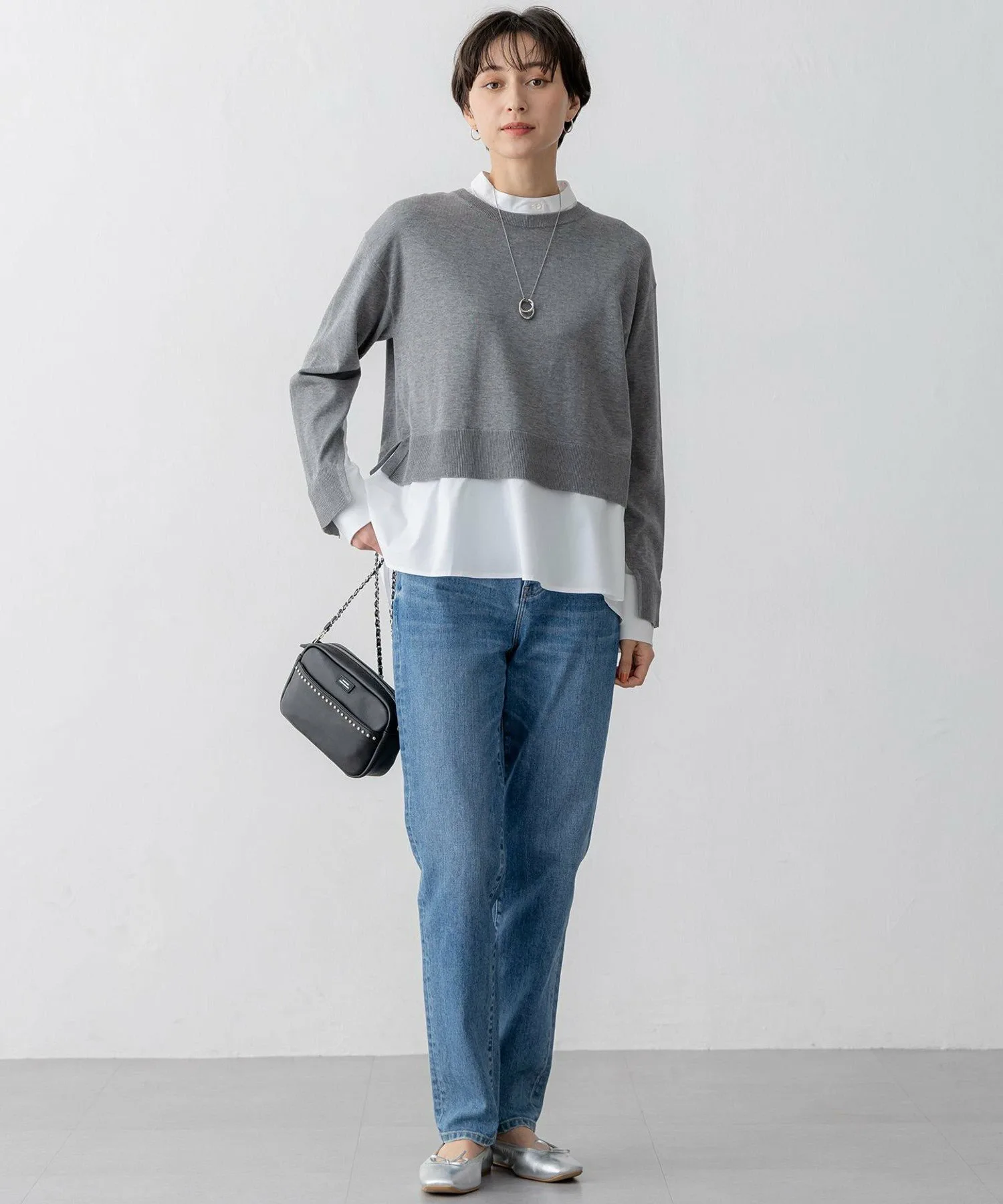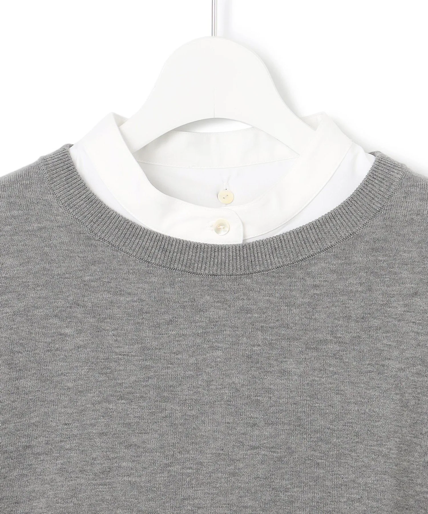Вязаный пуловер с многослойным дизайном и съемным воротником. Этот модный короткий свитер имеет свободные полы, создающие эффект многослойности. V-образные разрезы под рукавами открывают рукава рубашки, создавая шикарный вид. Он создает изысканный образ, который выглядит так, будто на вас надето всего одно платье, что позволяет легко подобрать подходящий вариант даже в спешке по утрам. Доступен в трех цветах: спокойный серый (#004), изысканный черный (#005) и мягкий бежевый (#033).