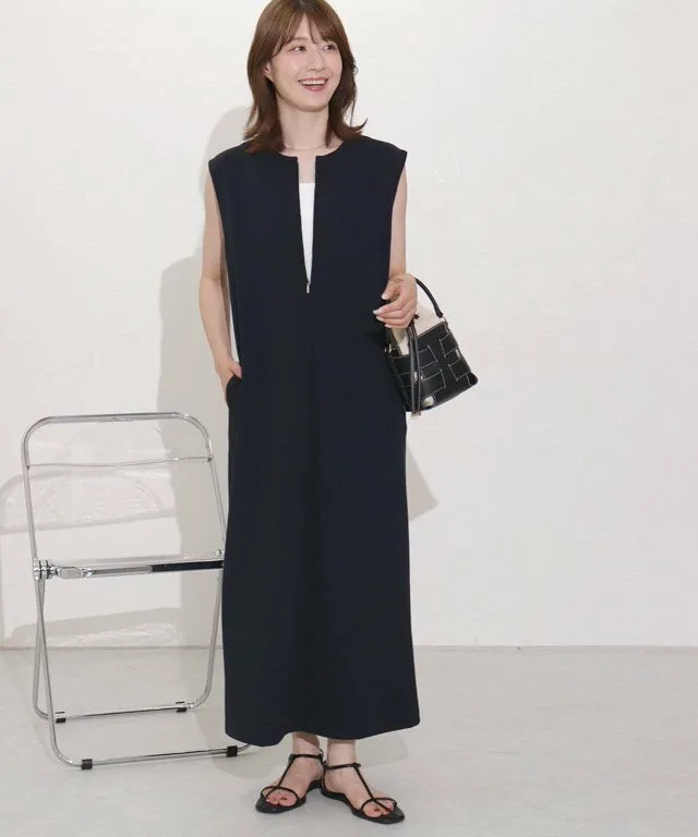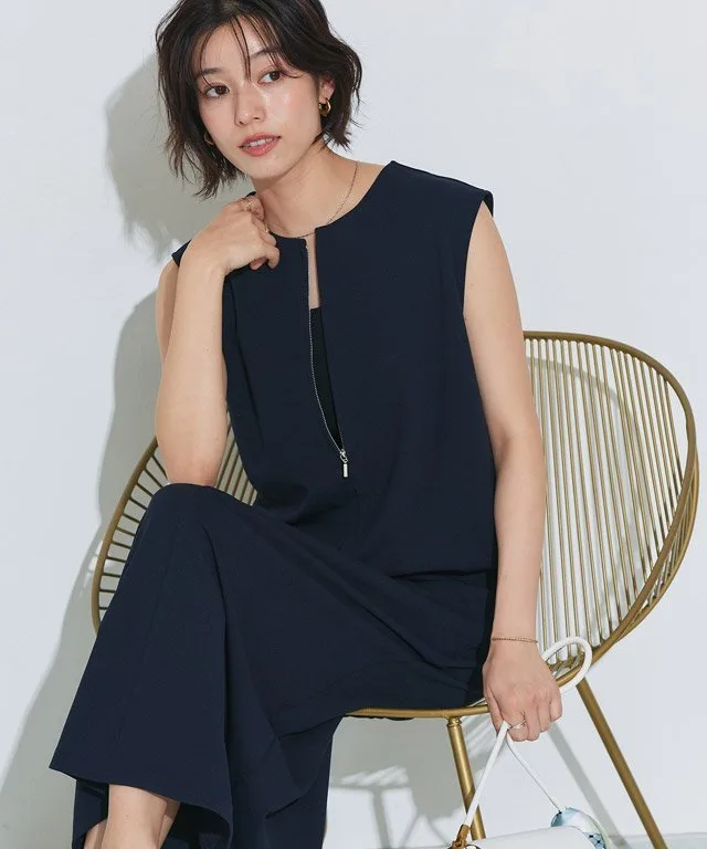 Прямой силуэт I-образной формы и умеренно открытый вырез создают расслабленный, чистый баланс. Передняя молния имеет двустороннюю конструкцию, которую можно открывать или закрывать, меняя образ; полностью застегнуть для сдержанного вида или оставить слегка расстегнутой для многослойности с внутренним слоем. ◎