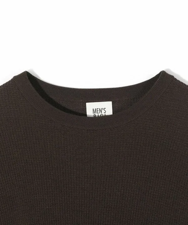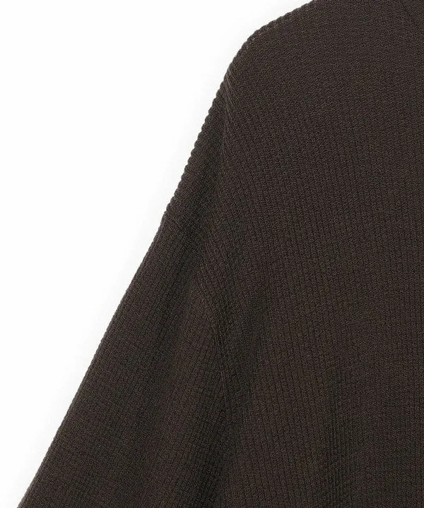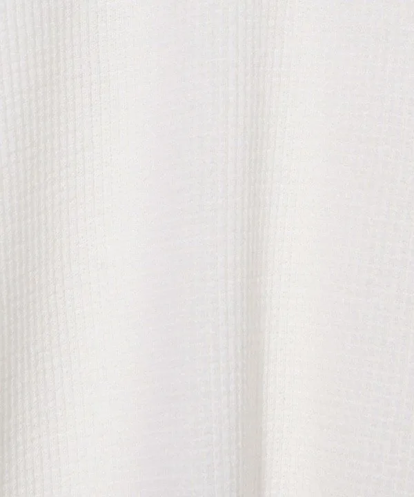 Простой круглый вырез горловины, подчеркивающий текстурированный трикотажный узор и качество материала.
