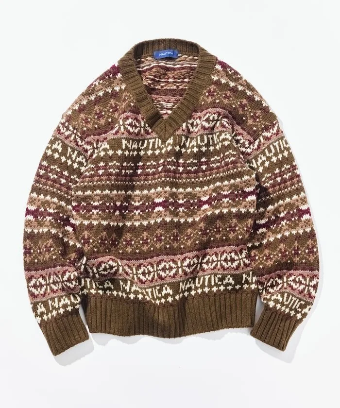 ●Вязаный свитер с оригинальным узором Fair Isle, сочетающим в себе логотип NAUTICA