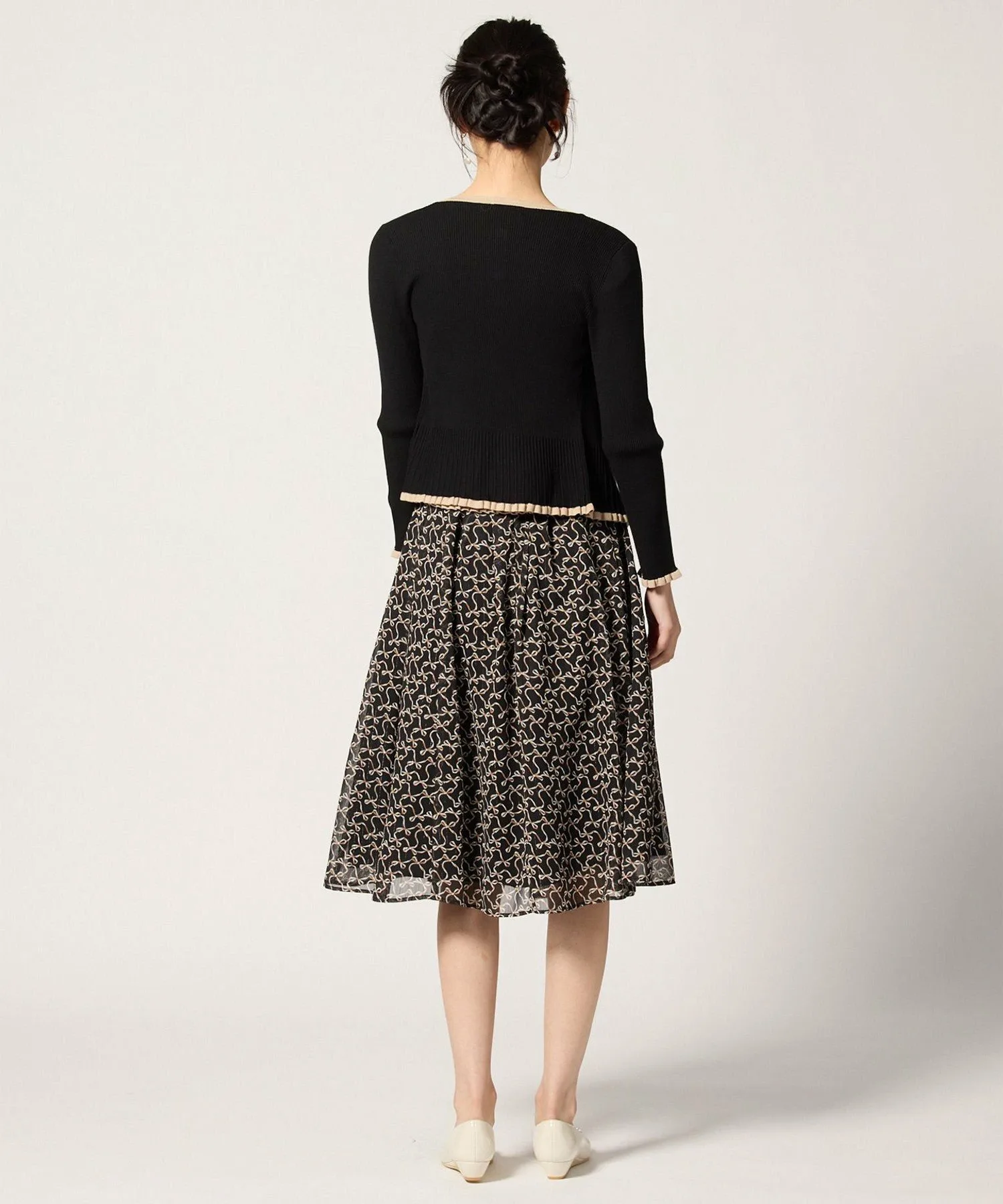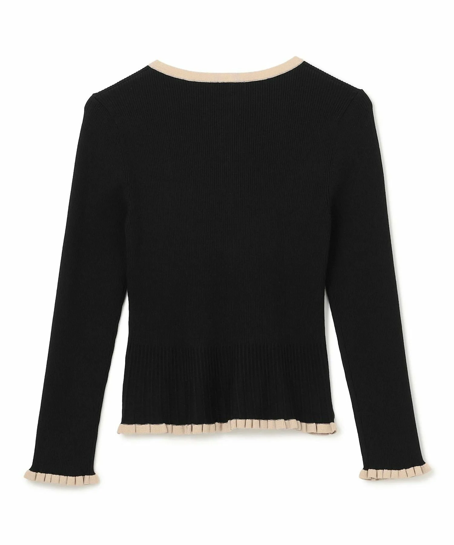 Элегантная ребристая вязка расположена произвольно к низу, создавая эффект стройности в области талии.