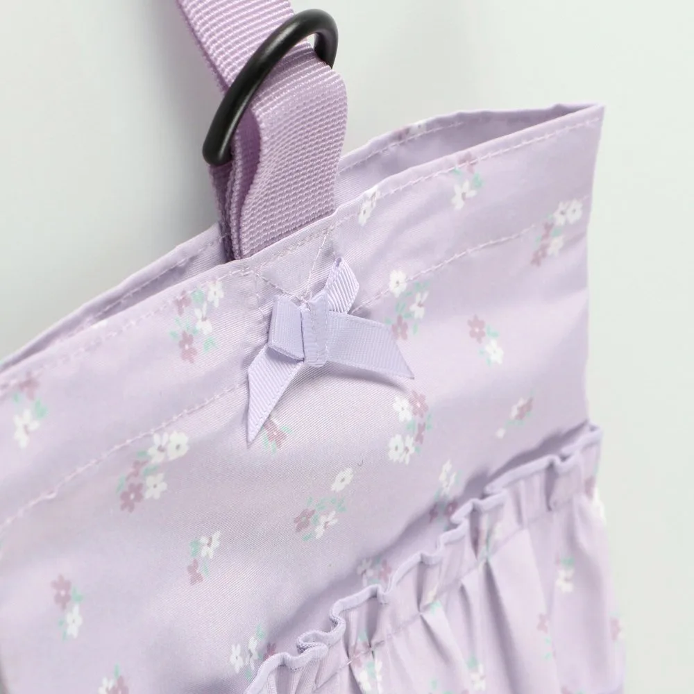 Она имеет милый дизайн с небольшим цветочным узором, украшенным оборками и лентами, которые так нравятся девочкам.