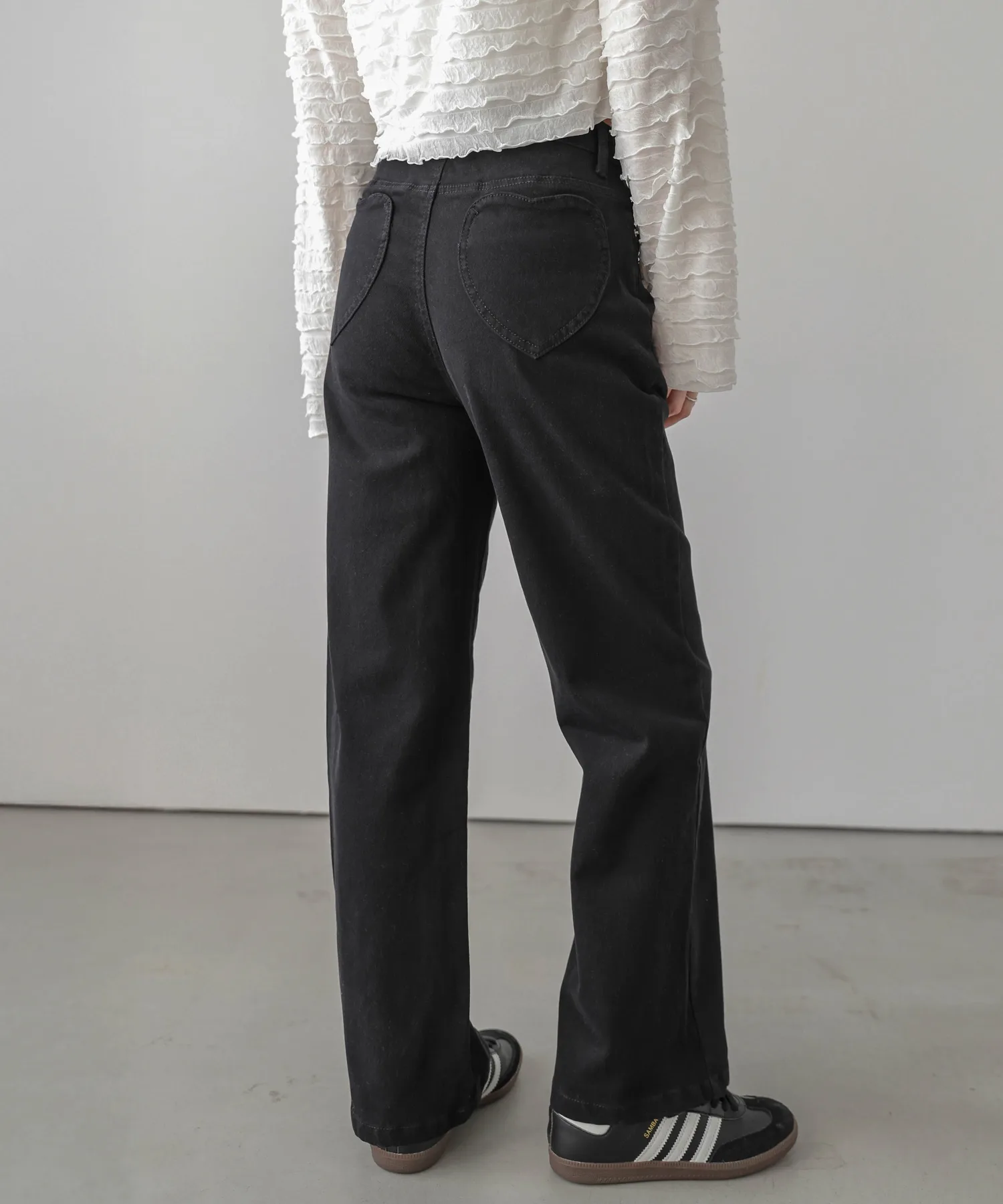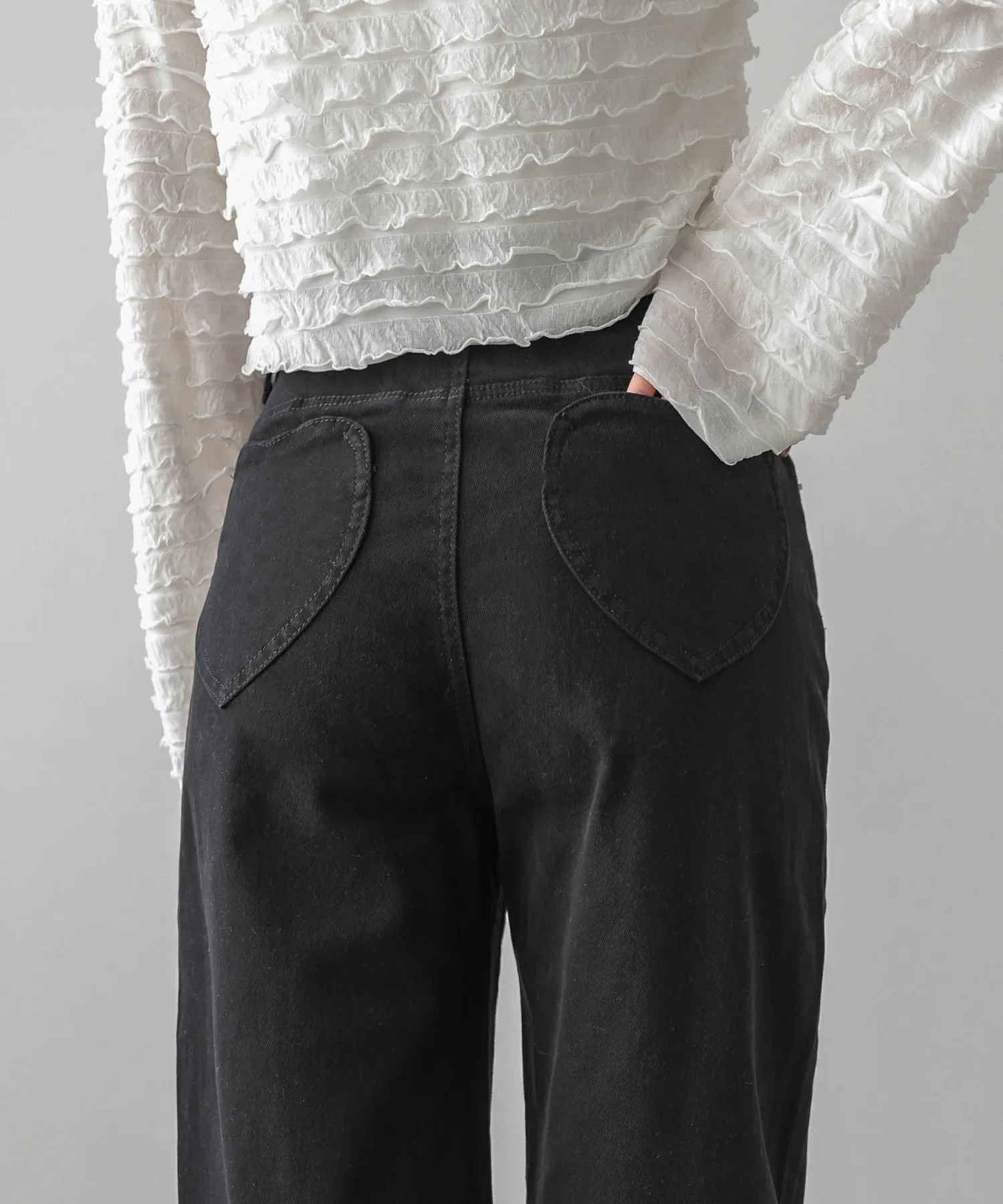 Задние карманы в форме сердца добавляют стильный акцент вашему образу◎