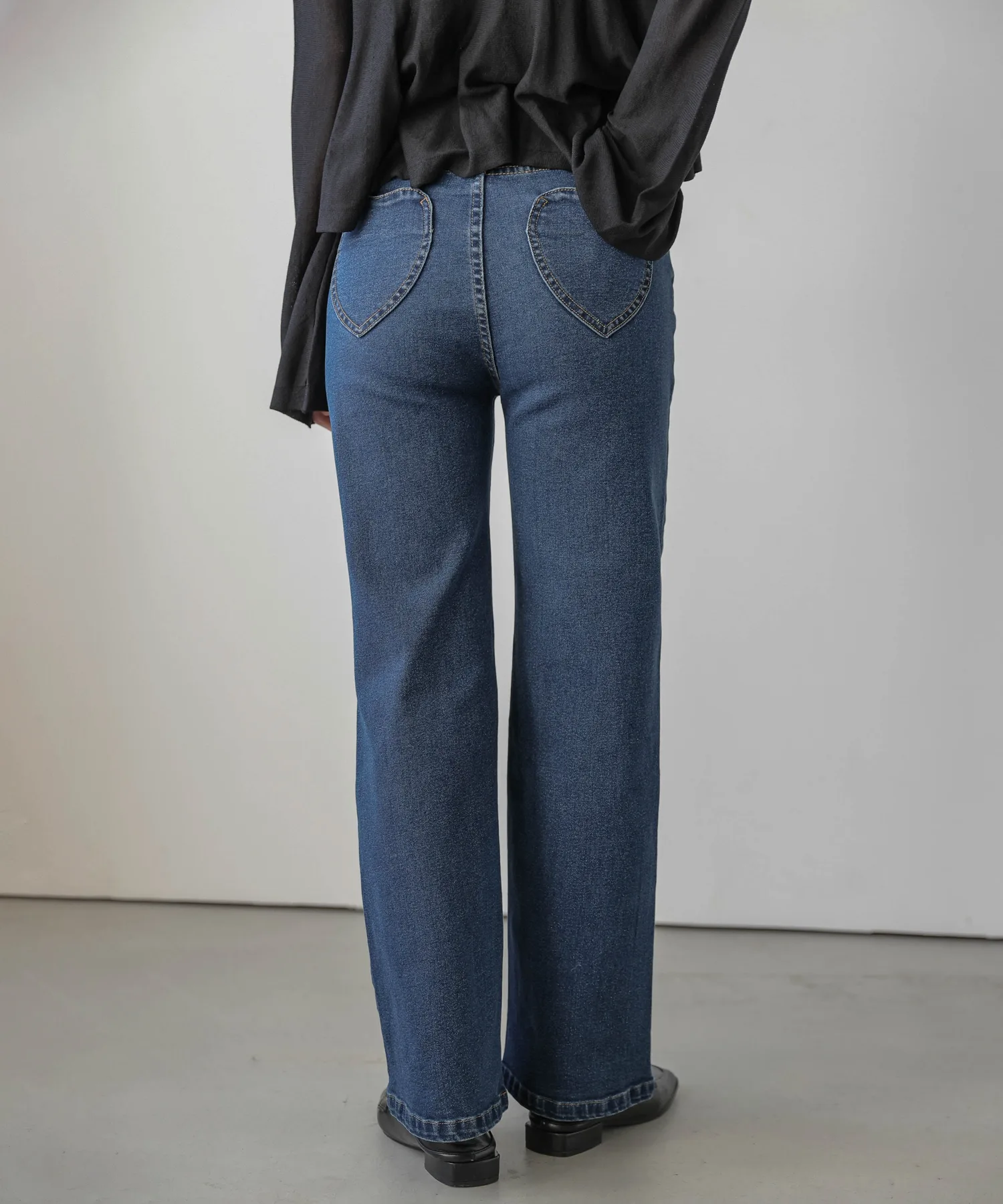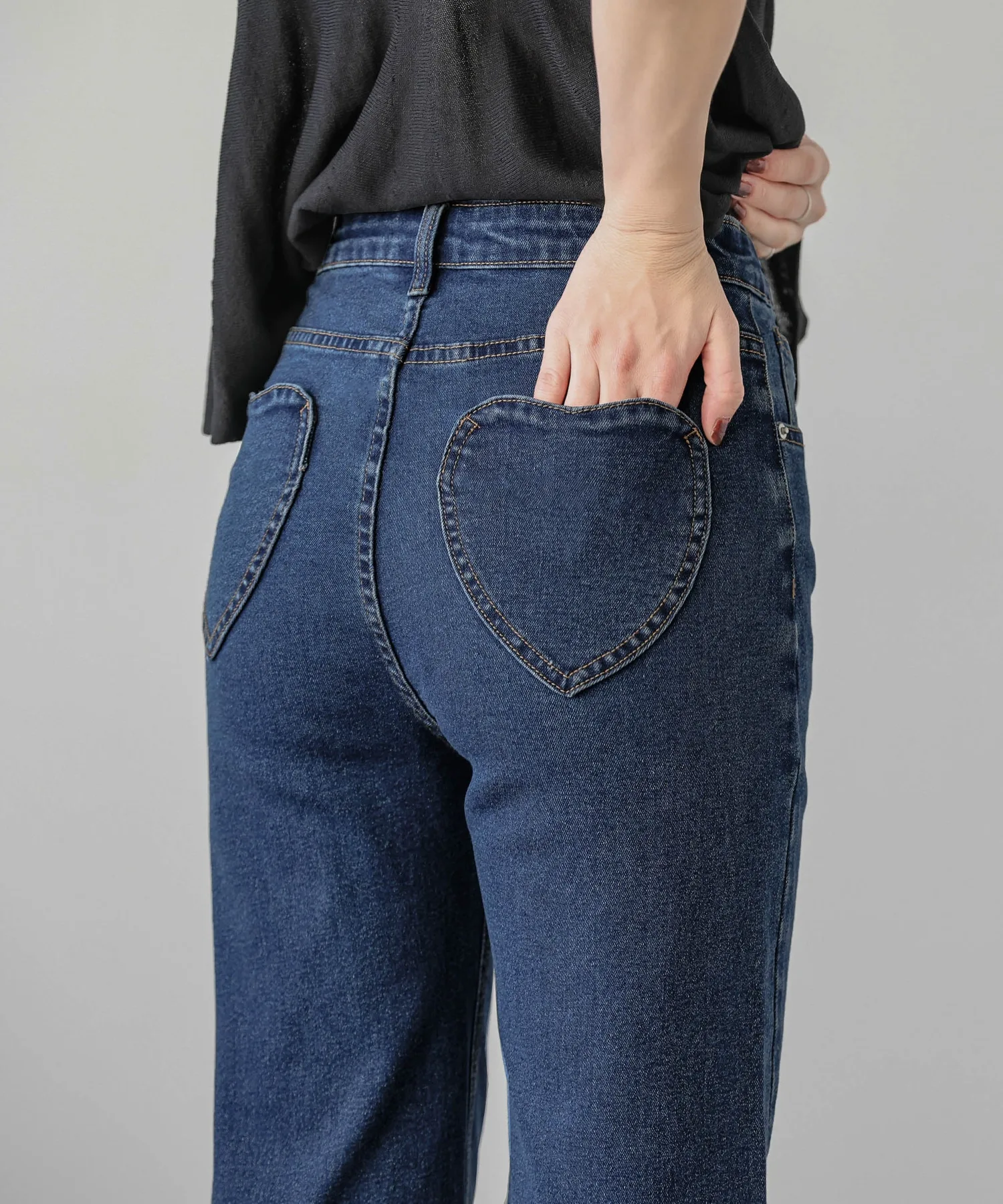 Задние карманы в форме сердца добавляют стильный акцент вашему образу◎