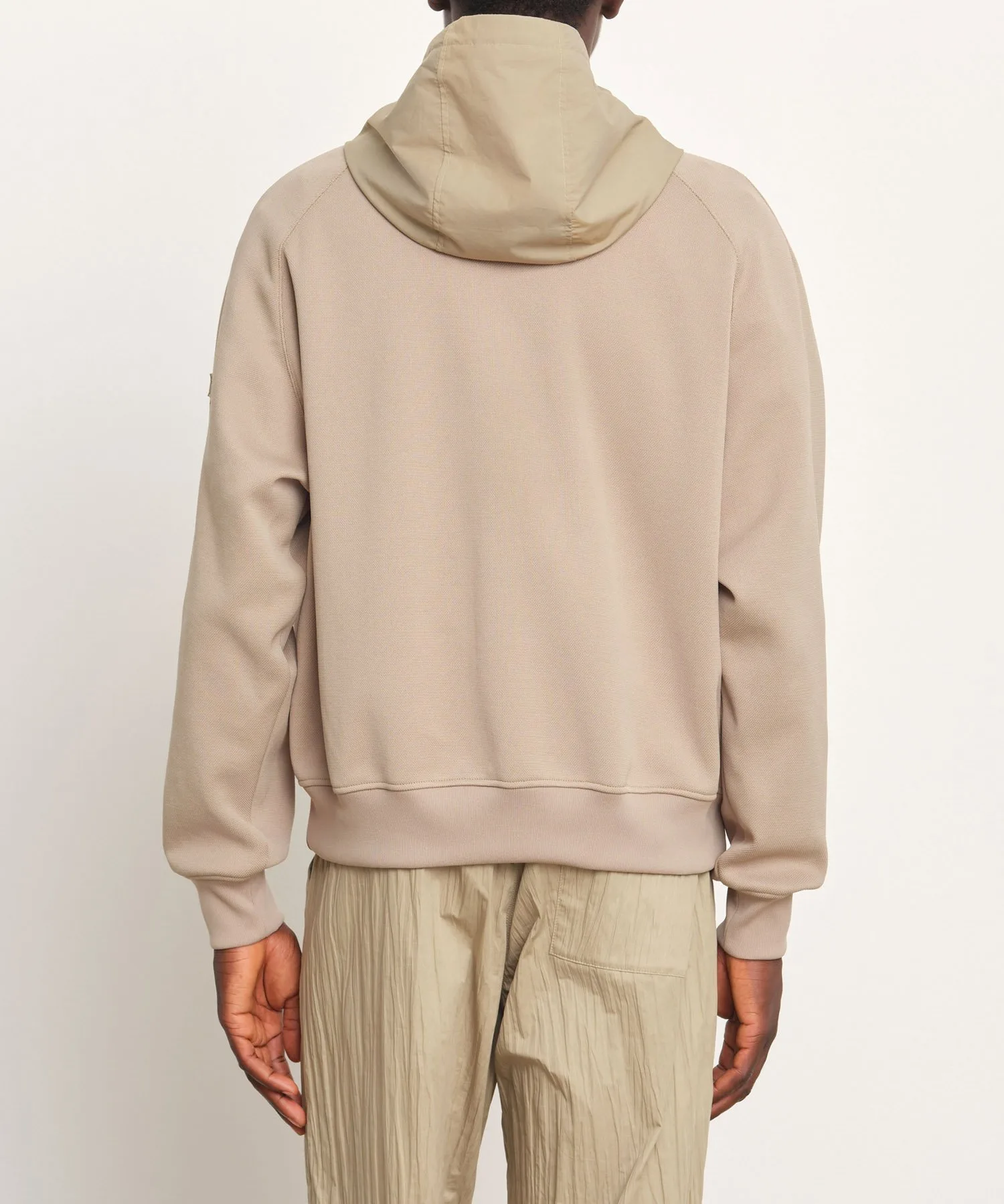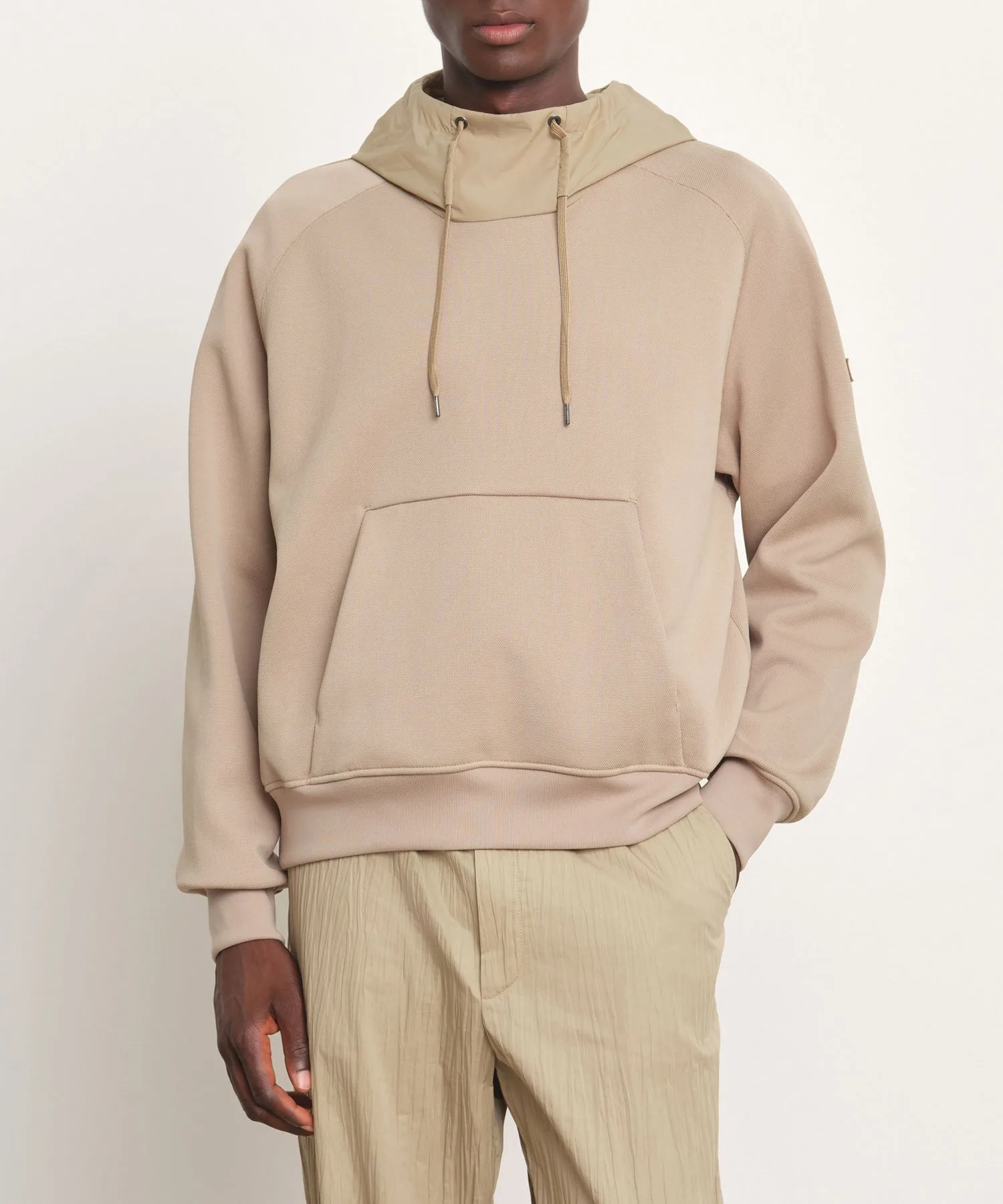 Эта толстовка выполнена из разных тканей для капюшона и основной части, что создает уникальный вид.
