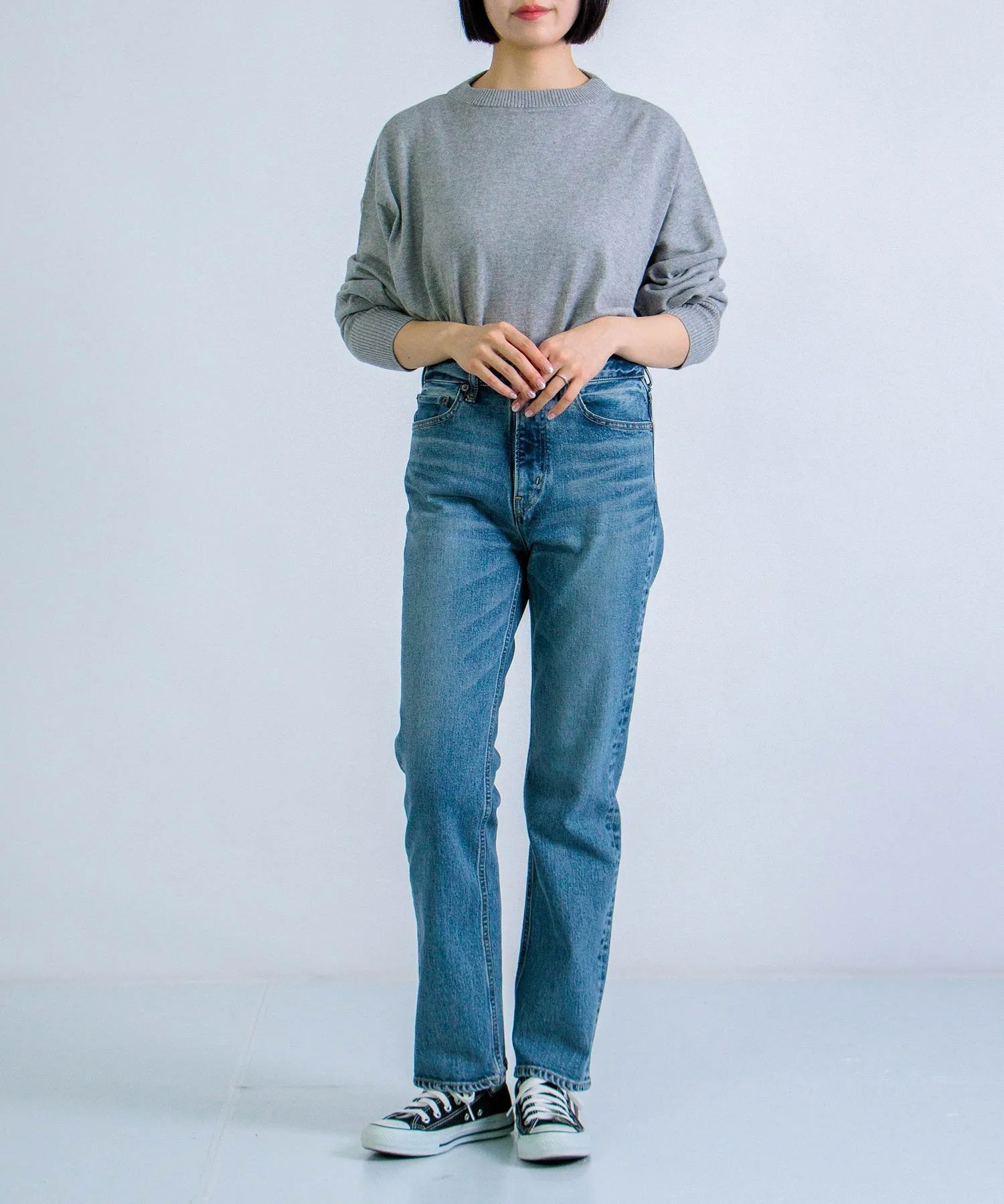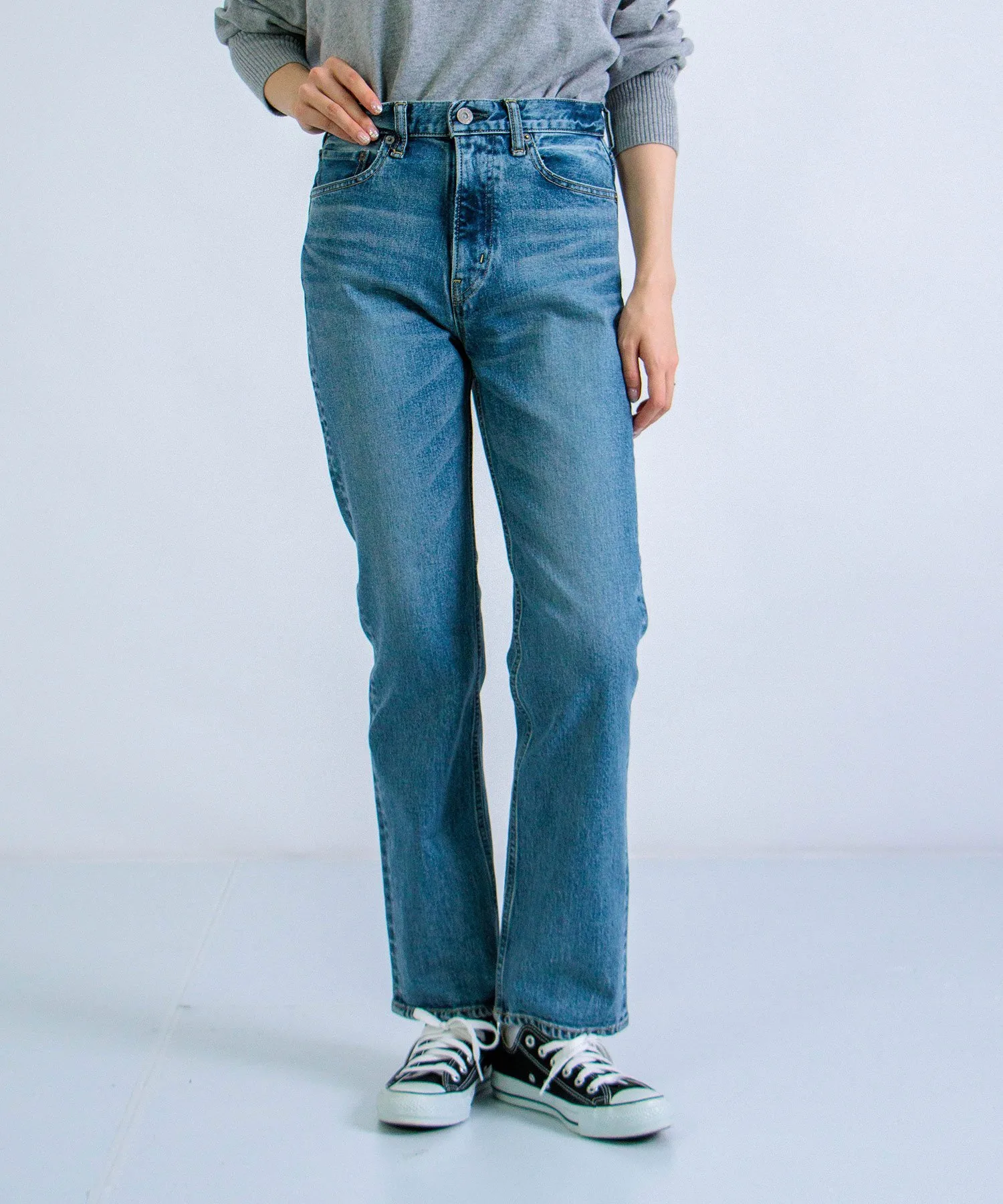 ◇ Отзыв о ношенииH160/Размер MДлина доходит чуть выше пятки, талия облегающая. Они также эластичные, поэтому даже при стройной фигуре от талии до колен они не будут слишком тесными. ◎Эти расклешенные брюки можно сочетать с обработанным денимом, не создавая слишком мужского эффекта.