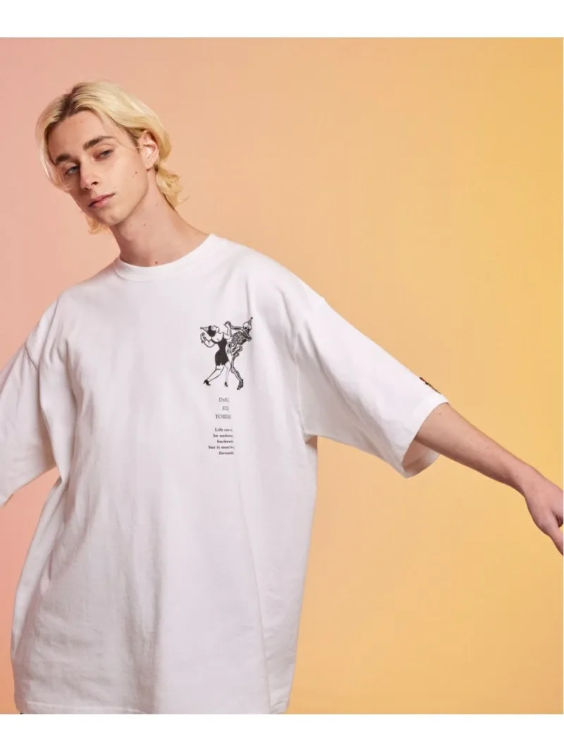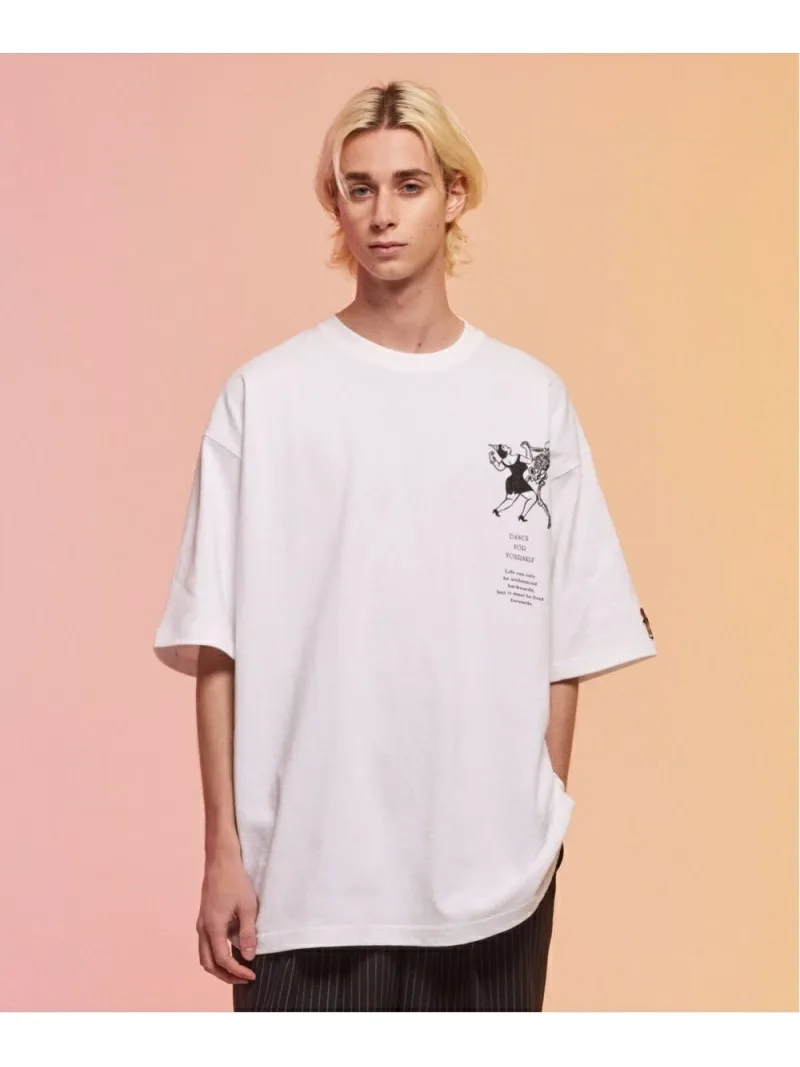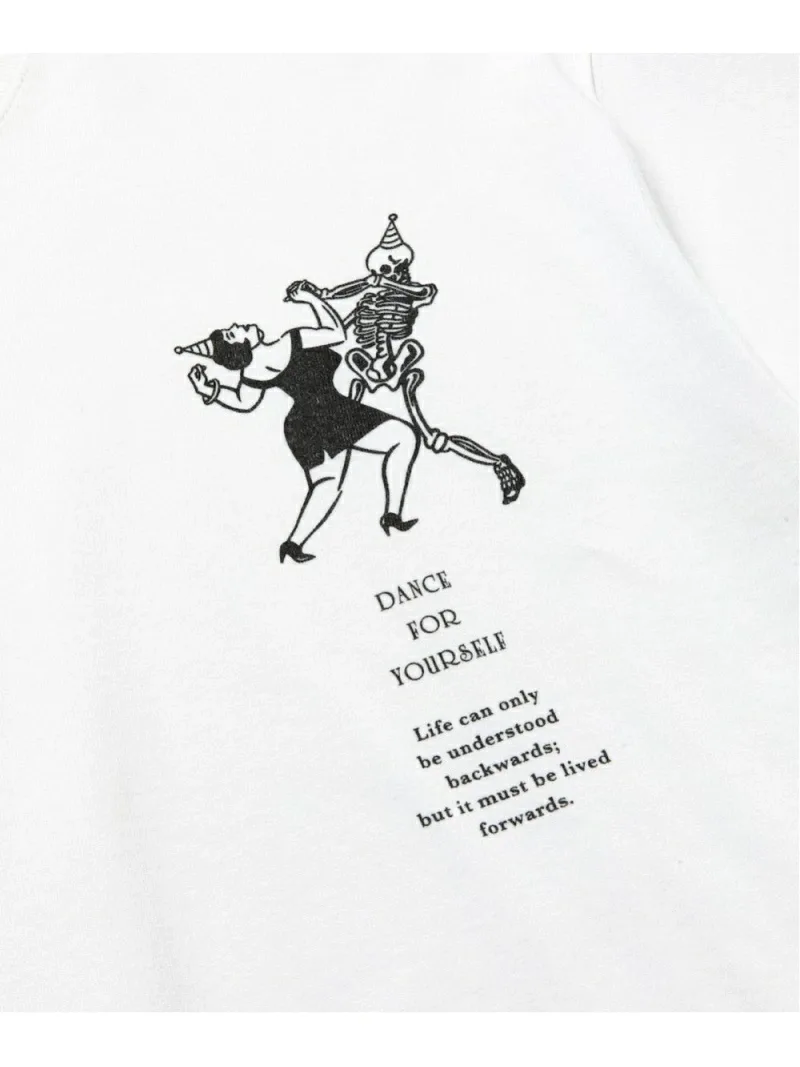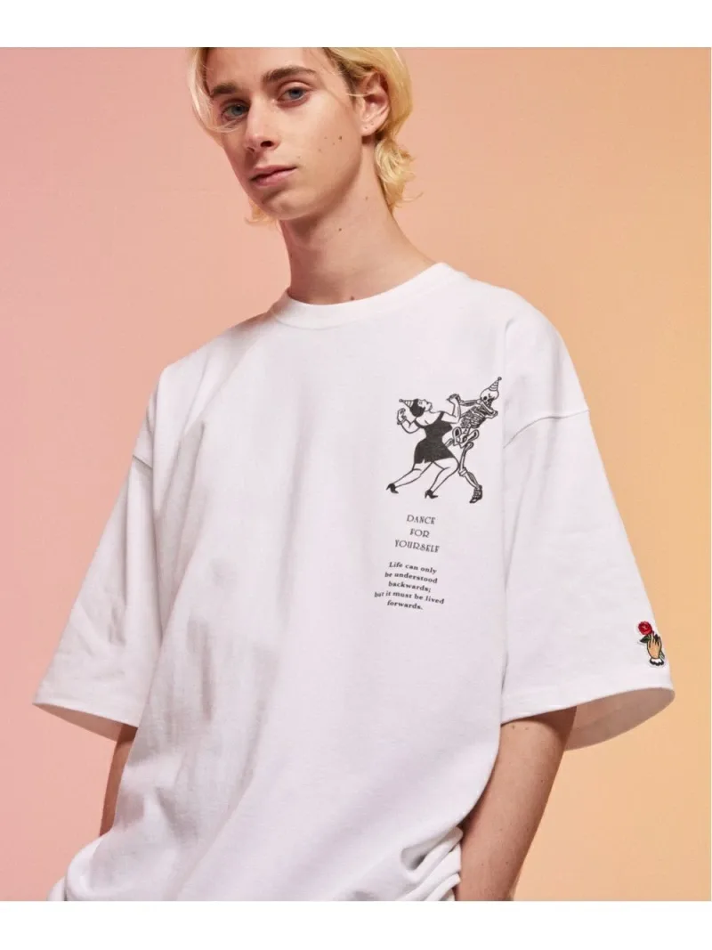 Эта футболка, сшитая по индивидуальному заказу, украшена графическим изображением и надписью на груди: «Танцуй для себя». На левом рукаве вышита нашивка. Каждый принт тщательно наносится методом шелкографии на фабрике в Японии. Силуэт широкий, с достаточной шириной в области груди и плеч, что обеспечивает комфортную посадку как для мужчин, так и для женщин.